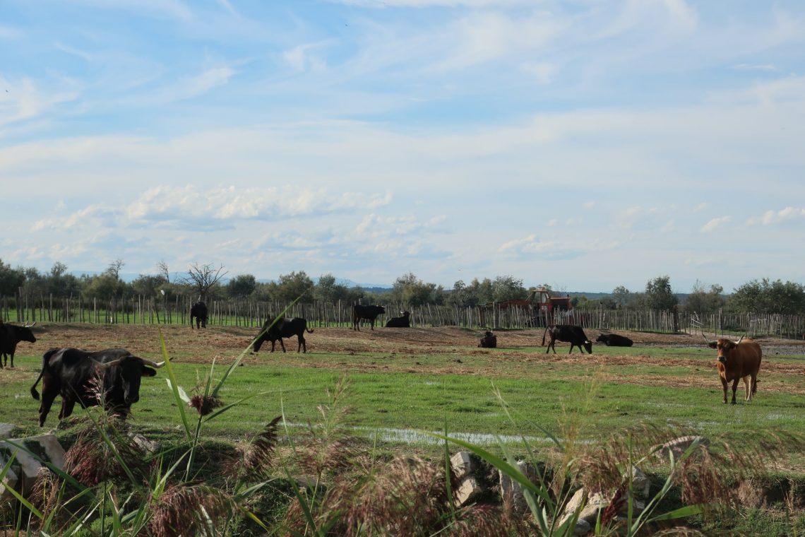Am frühen Abend fahren wir durch die landschaftlich schöne Camargue Richtung Avignon. Die D179 nach St Gilles ist besonders empfehlenswert: Man entdeckt Weingüter mit den prallen, reifen, tiefblauen Trauben. Es weiden Stiere – die hier in der Gegend gezüchtet werden. Weiße Pferde sind ebenfalls häufig auf den umliegenden Koppeln zu finden. Nur die Flamingos in freier Wildbahn bleiben ein Geheimnis. Vielleicht das nächste Mal…