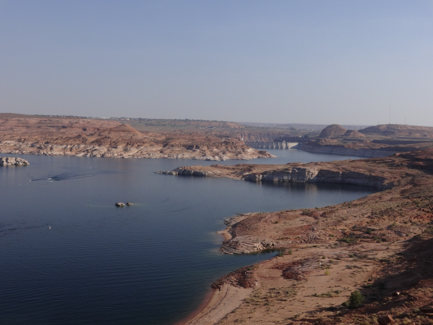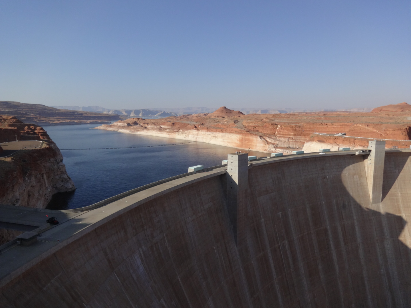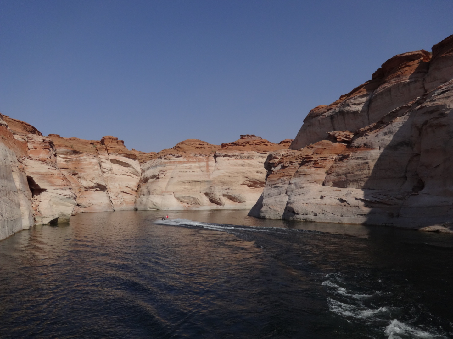 Später machen wir noch eine Bootstour auf dem Lake Powell, die in einen Teil des Antelope Canyon hinein fährt. Die Vorstellung, daß fast das ganze Seeufer so verästelt ist, beeindruckt ziemlich. Auch der Staudamm Glen Canyon am Ende des Sees gehört nicht zu den kleinsten.