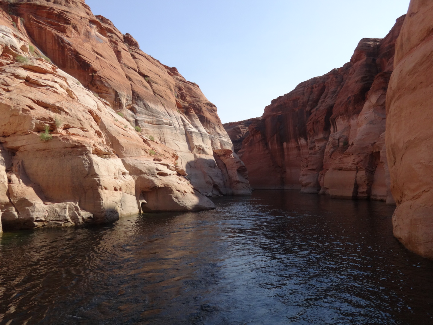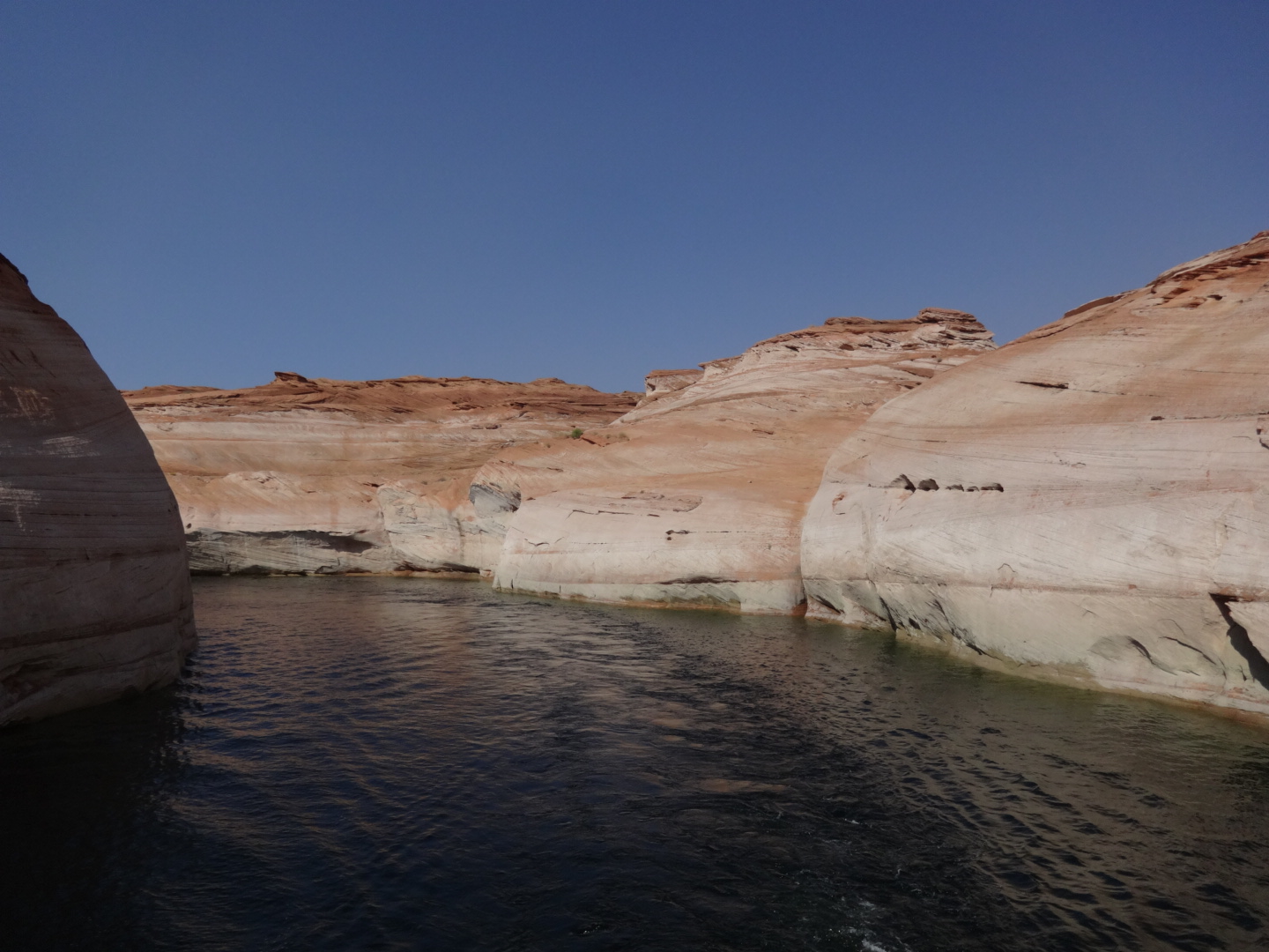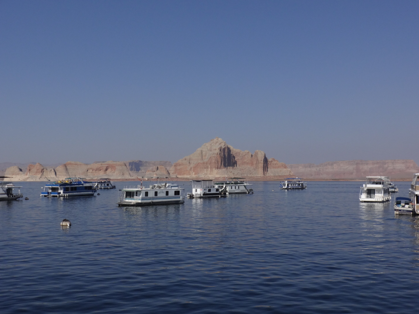 Später machen wir noch eine Bootstour auf dem Lake Powell, die in einen Teil des Antelope Canyon hinein fährt. Die Vorstellung, daß fast das ganze Seeufer so verästelt ist, beeindruckt ziemlich. Auch der Staudamm Glen Canyon am Ende des Sees gehört nicht zu den kleinsten.