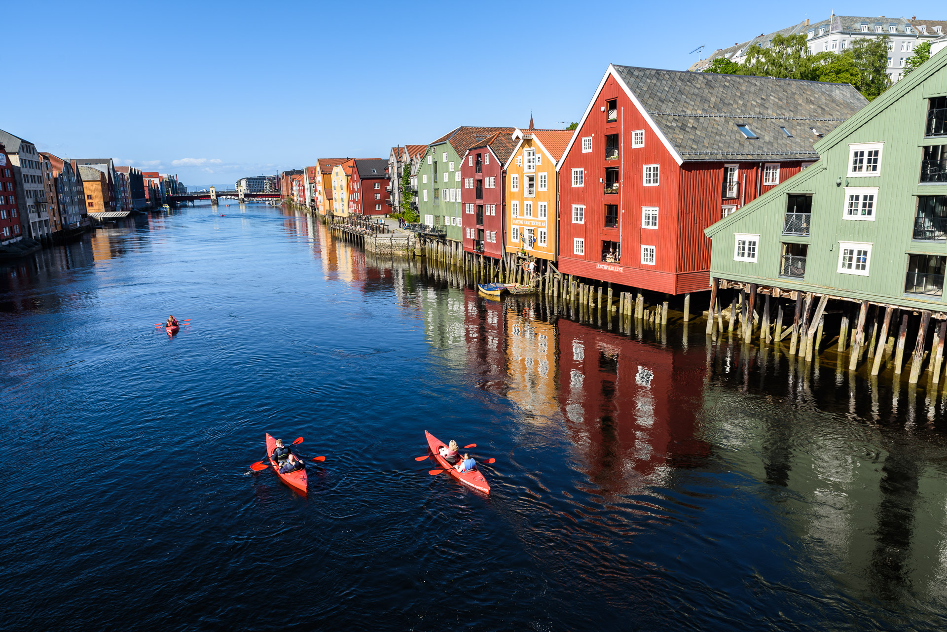 Trondheim am Morgen. Noch ist es ruhig in der Stadt. Wir sind unterwegs zum Hurtigruten Kai. Die Nordkapp liegt gerade im Hafen auf dem Weg Richtung Süden. Anschließend noch einen Abstecher durch den schönen Stadtteil Bakklandet und einen Kaffee und Zimtschnecke auf die Hand mitnehmen. Wir verlassen Trondheim und fahren in Richtung Kristiansund. Mit einem kleinen Abstecher zum Leuchtturm Agdenes. Das kleine weiße Türmchen steht am der Einfahrt zum Trondheim Fjord. Knapp verpassen wir die Hurtigrute im Bild hinter dem Leuchtturm. Heißt ja nicht umsonst "hurtig". Abends fahren wir noch einen Teil des berühmten Atlanterhavsvegen bei Kristiansund. Einige Brücken verbinden . . .