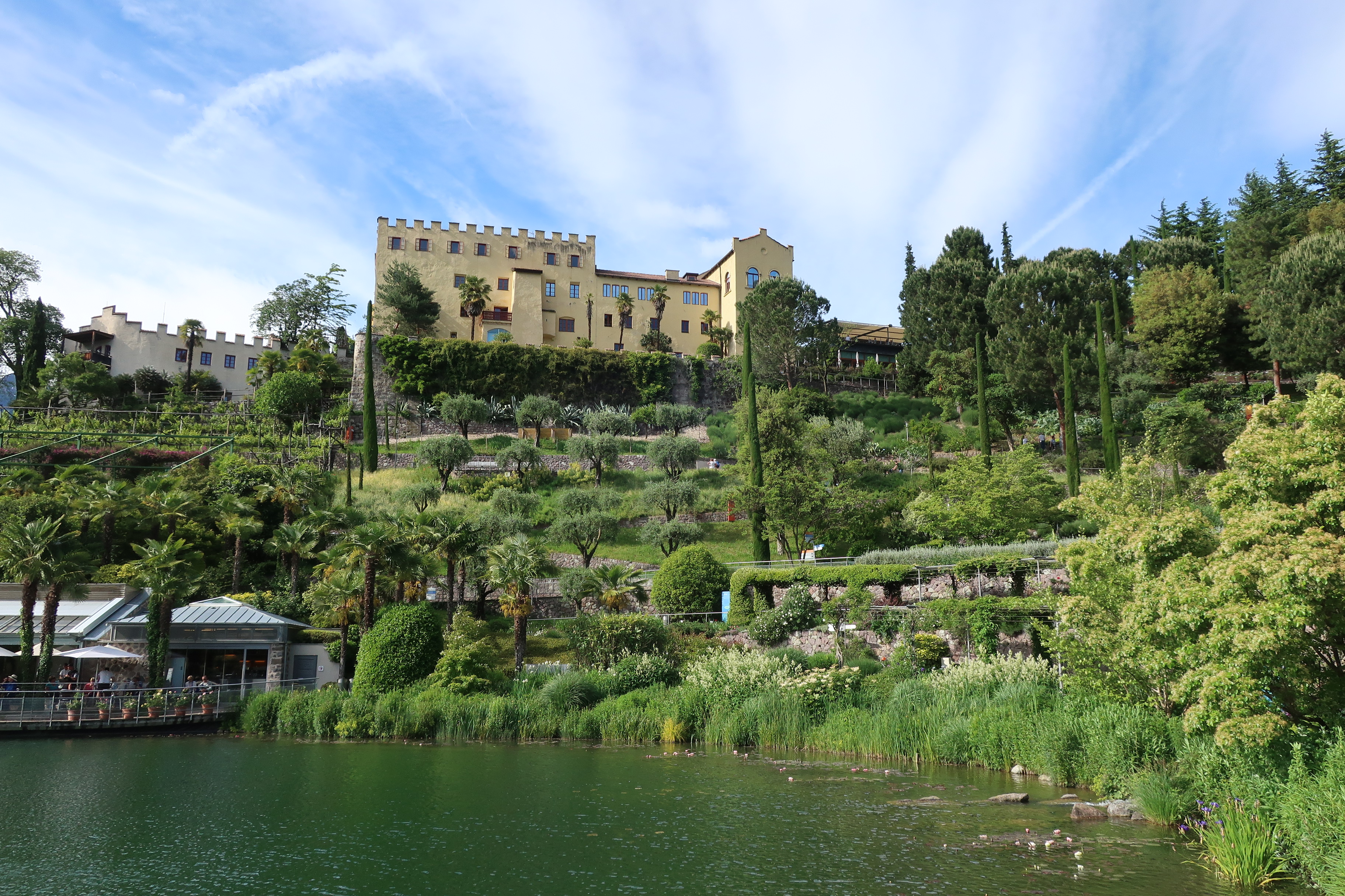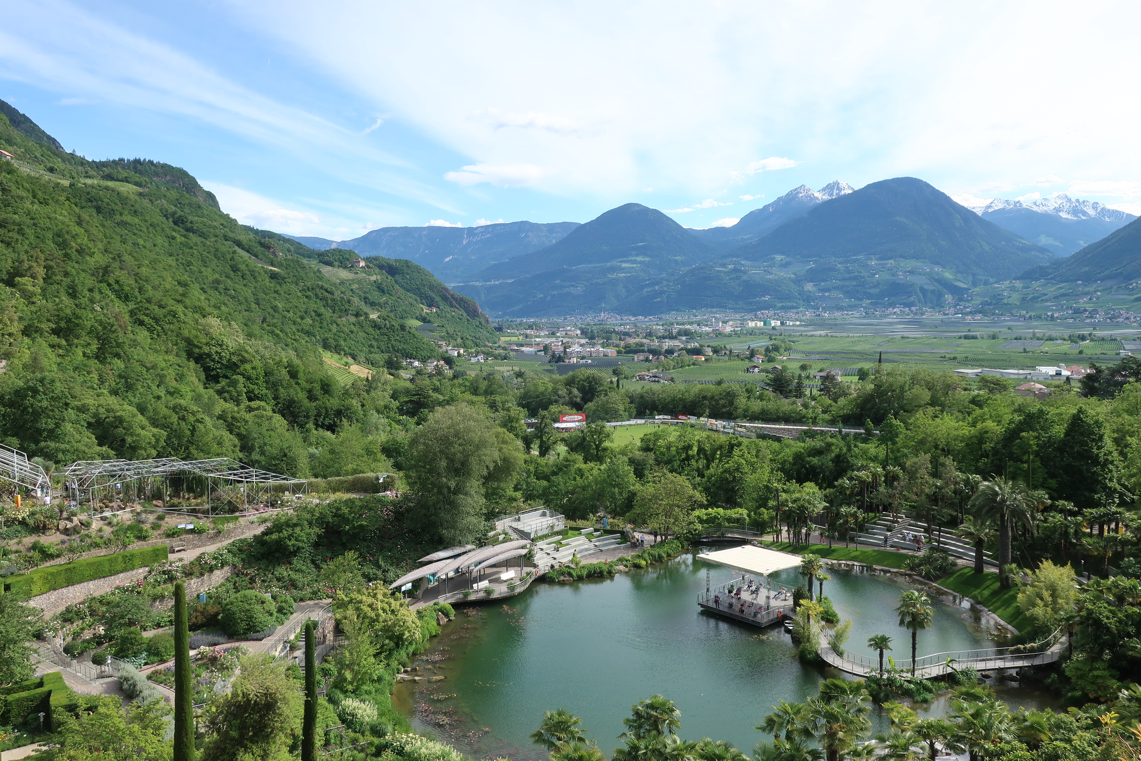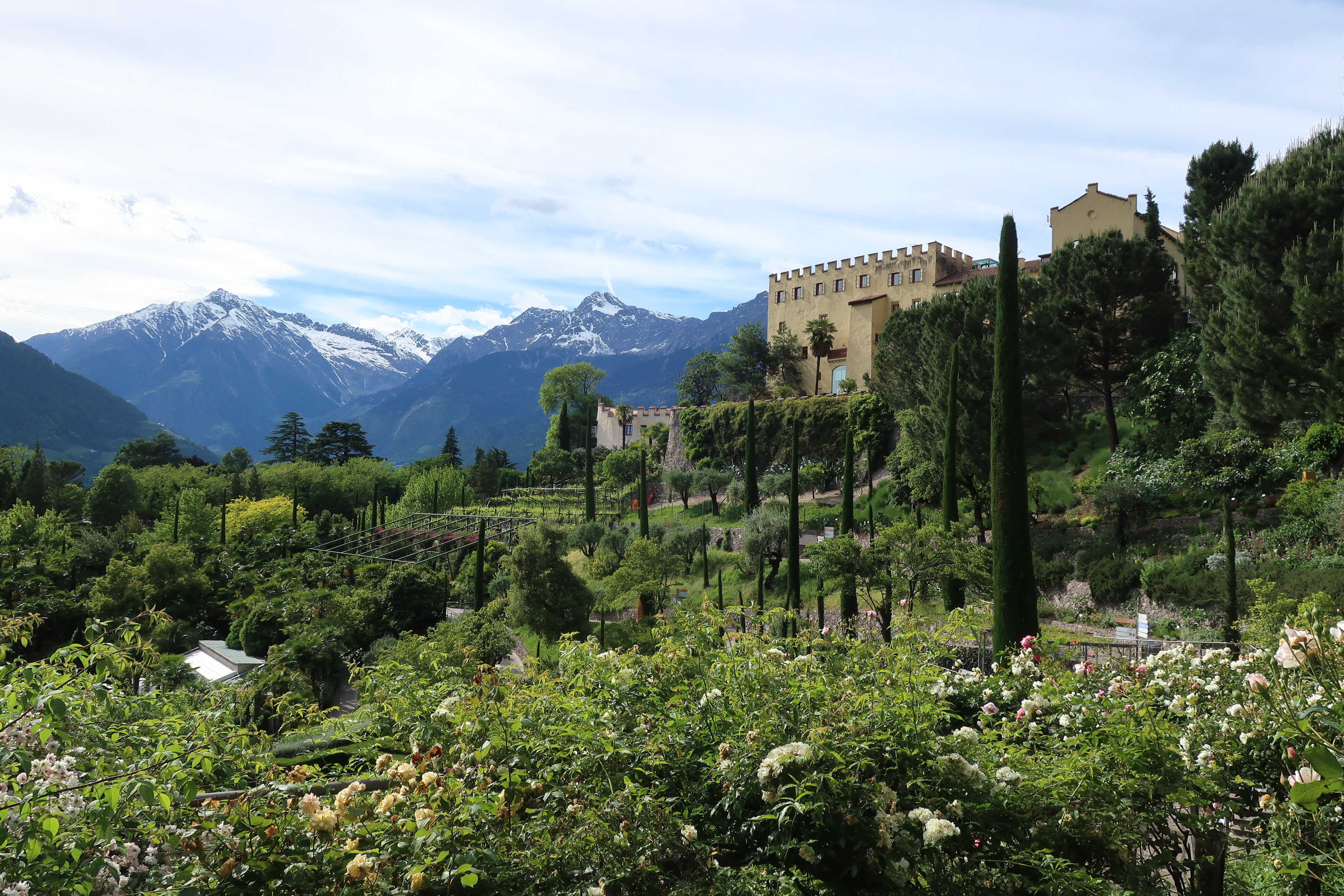 Weiter geht’s nach Meran. Die Stadt selbst lassen wir dieses Mal links liegen, aber die Gärten von Trautmannsdorf wollen wir uns wieder Mal ansehen. Nach den englischen Gärten und den japanischen sind wir ja schon etwas verwöhnt. Aber diese können da absolut mithalten. Man kann ewig durch die Anlage schlendern und findet immer wieder etwas Neues. So z.B. den Garten der Verliebten. Wir laufen hinunter zum See, hoch zum luftigem Aussichtspunkt, zur Voliere mit den Papageien und suchen im Irrgarten nach dem versteckten Baum. Knapp zweieinhalb Stunden später, der Garten leert sich schon sichtbar, machen wir uns auch auf Richtung Ausgang.