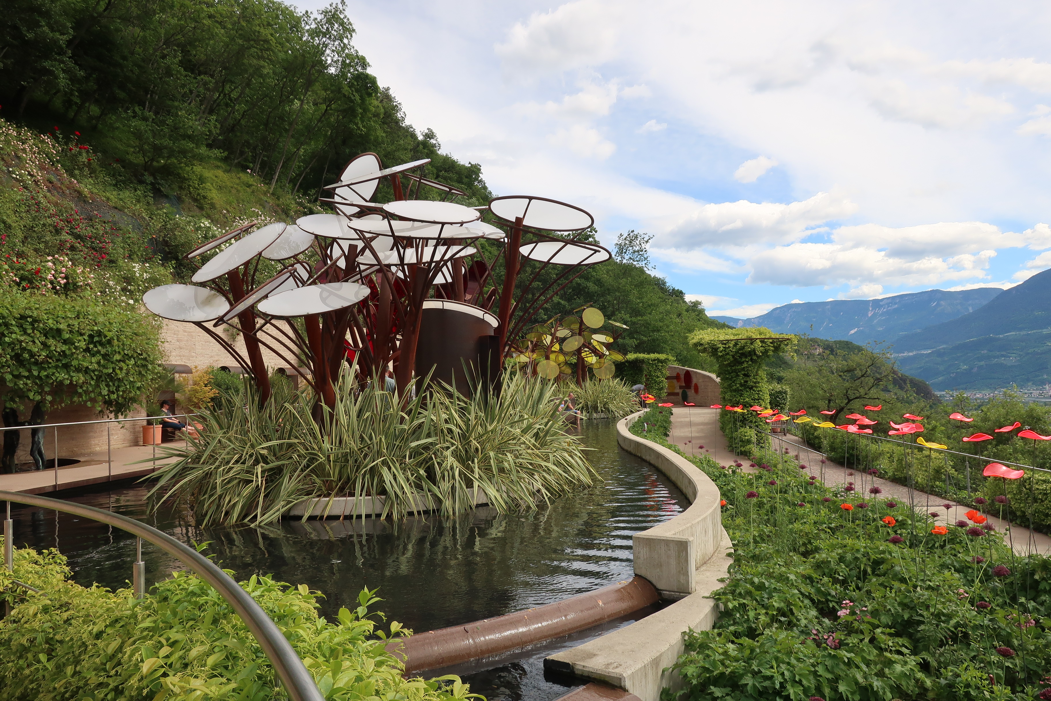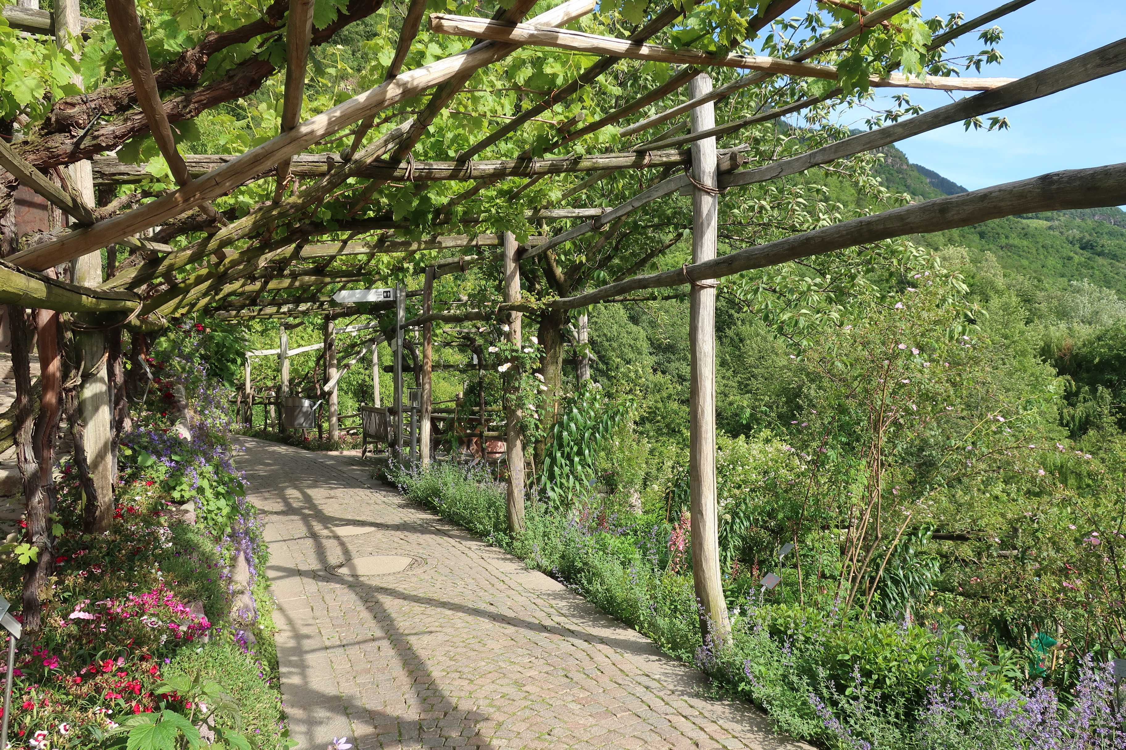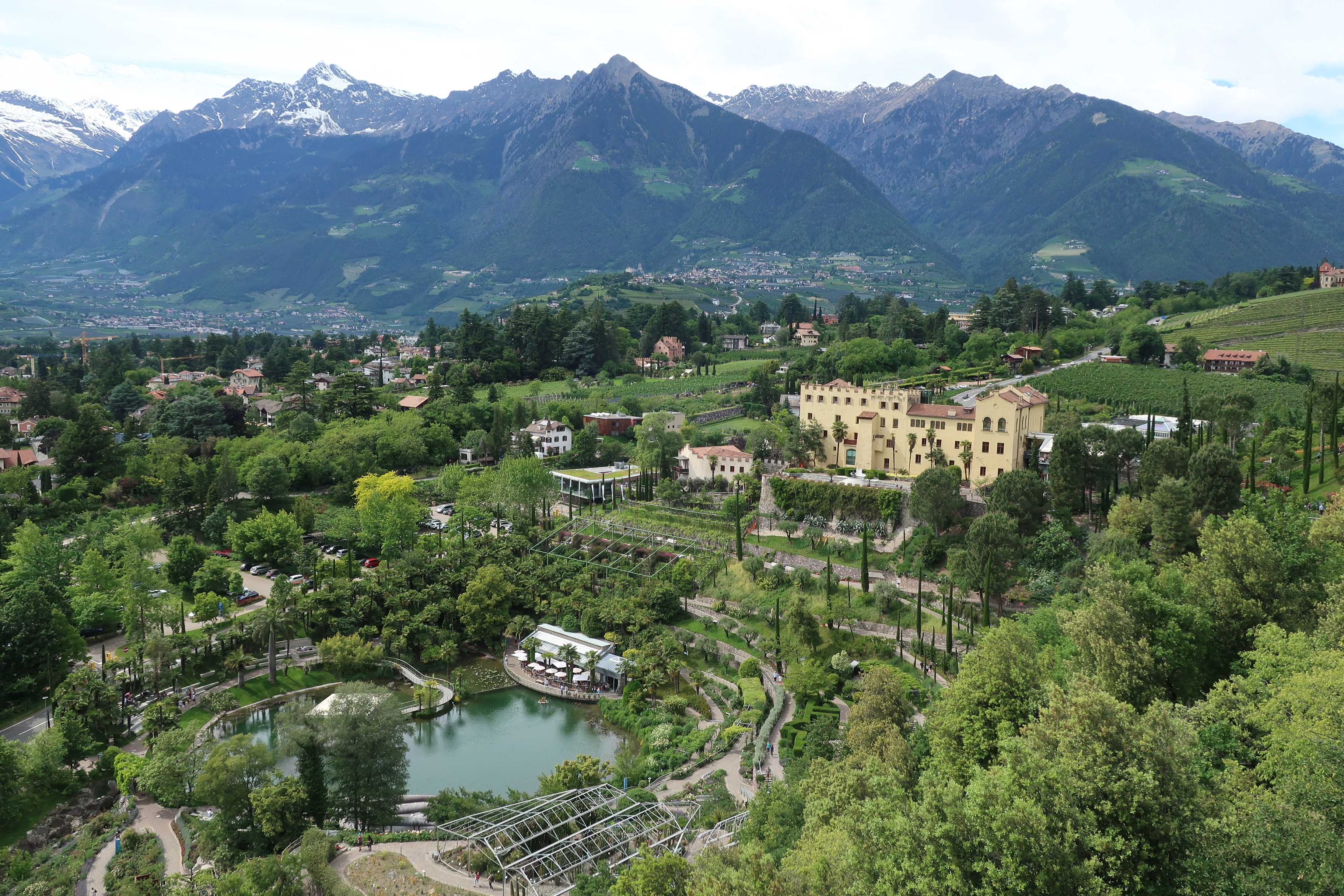 Weiter geht’s nach Meran. Die Stadt selbst lassen wir dieses Mal links liegen, aber die Gärten von Trautmannsdorf wollen wir uns wieder Mal ansehen. Nach den englischen Gärten und den japanischen sind wir ja schon etwas verwöhnt. Aber diese können da absolut mithalten. Man kann ewig durch die Anlage schlendern und findet immer wieder etwas Neues. So z.B. den Garten der Verliebten. Wir laufen hinunter zum See, hoch zum luftigem Aussichtspunkt, zur Voliere mit den Papageien und suchen im Irrgarten nach dem versteckten Baum. Knapp zweieinhalb Stunden später, der Garten leert sich schon sichtbar, machen wir uns auch auf Richtung Ausgang.