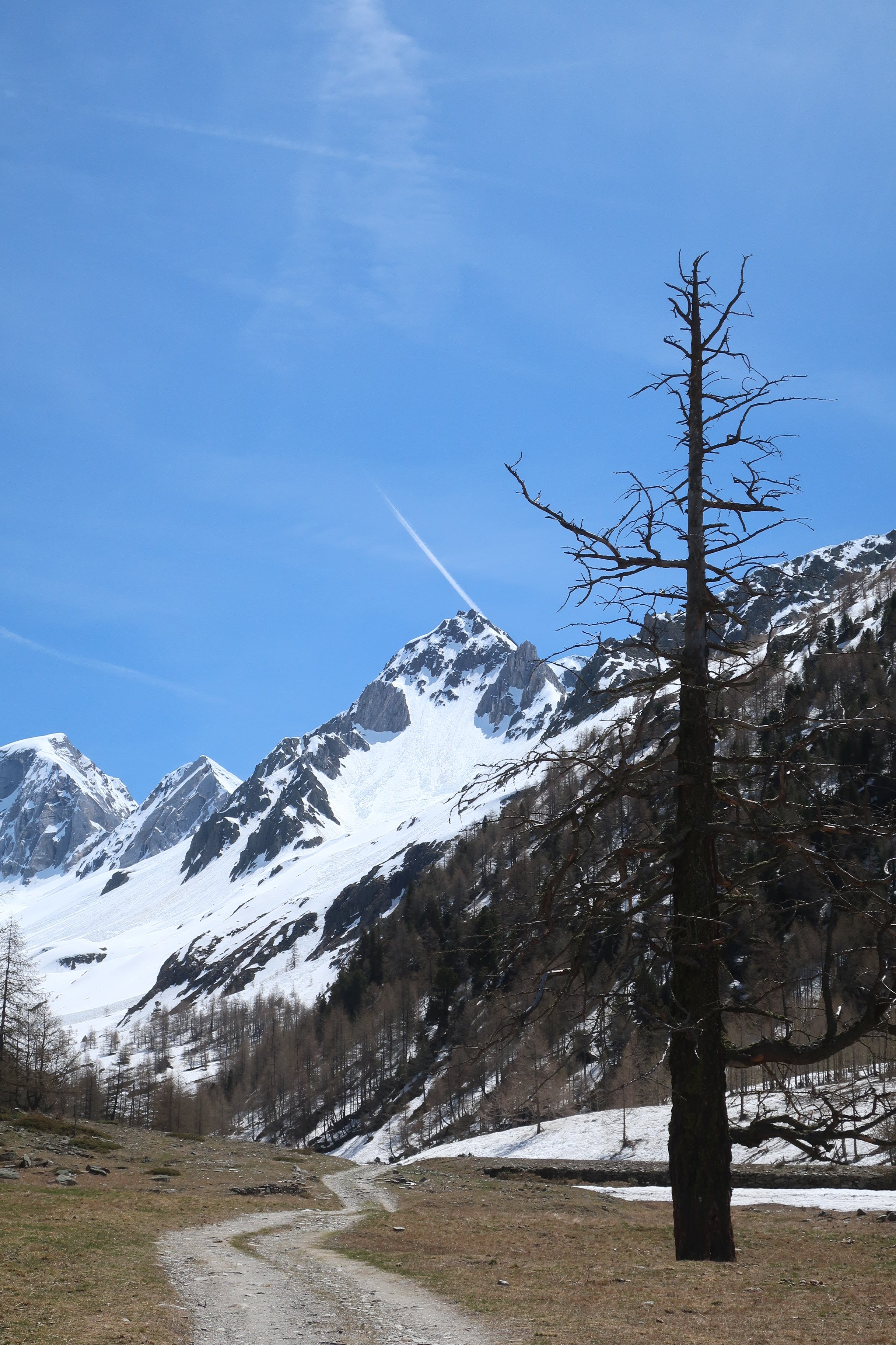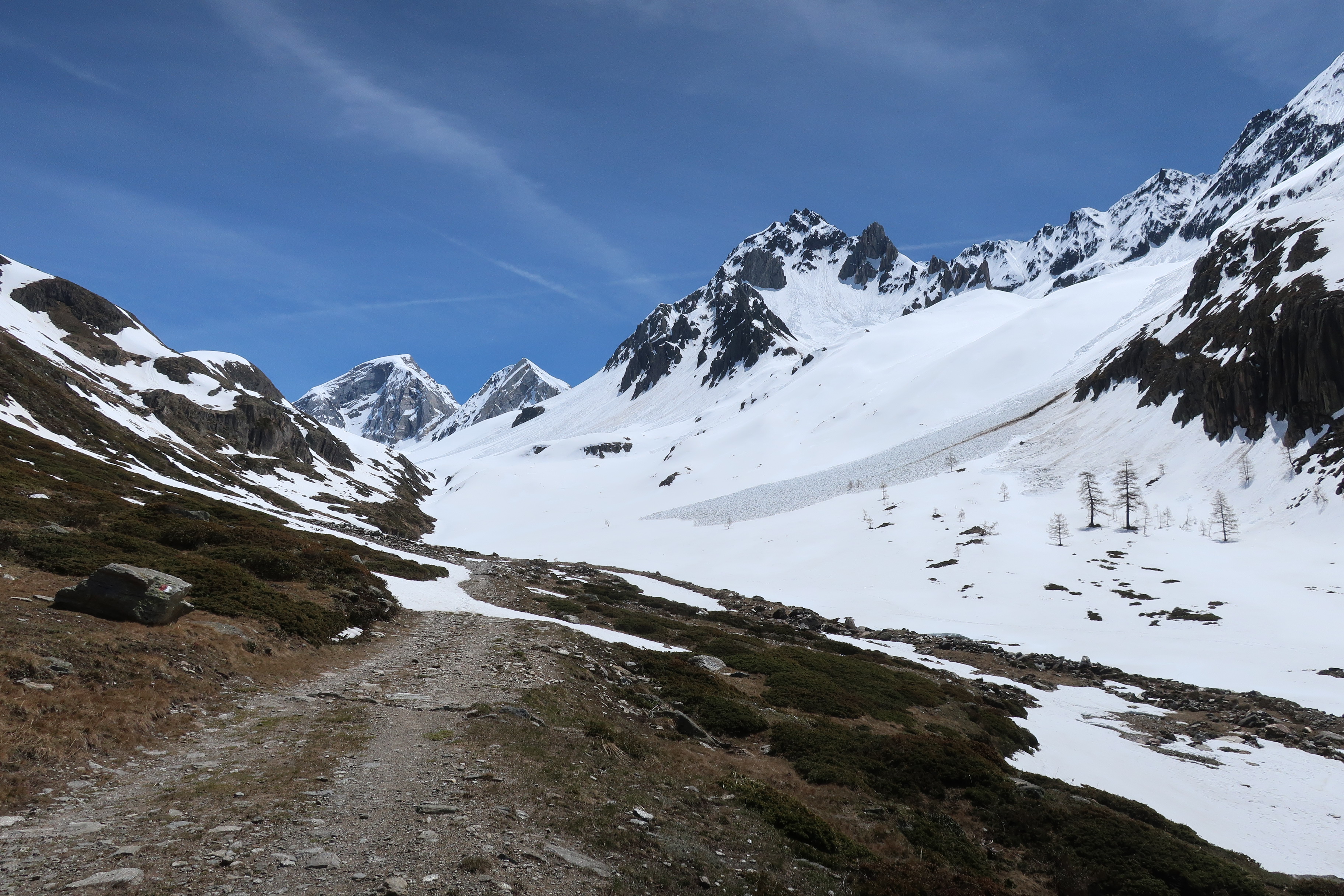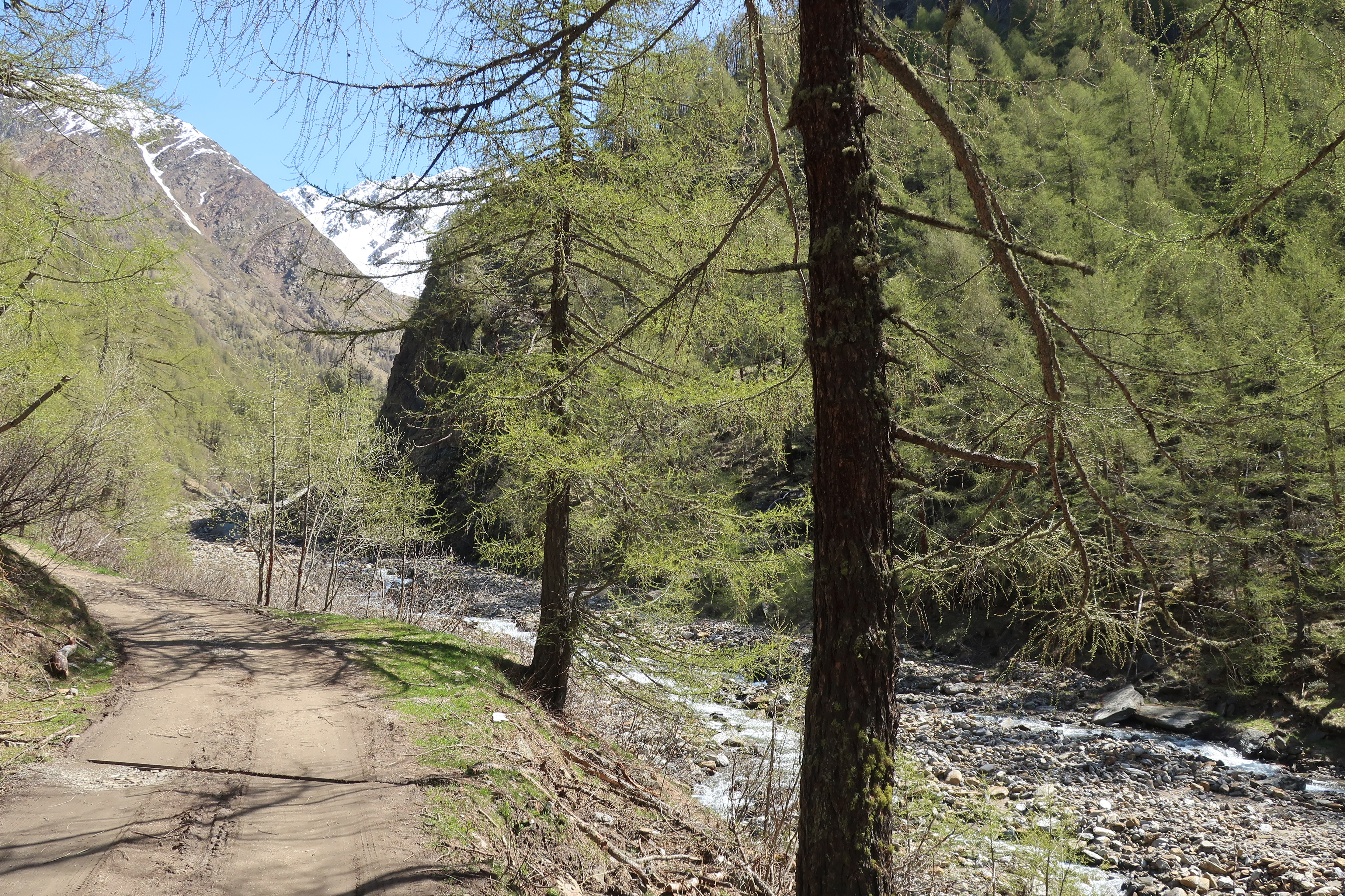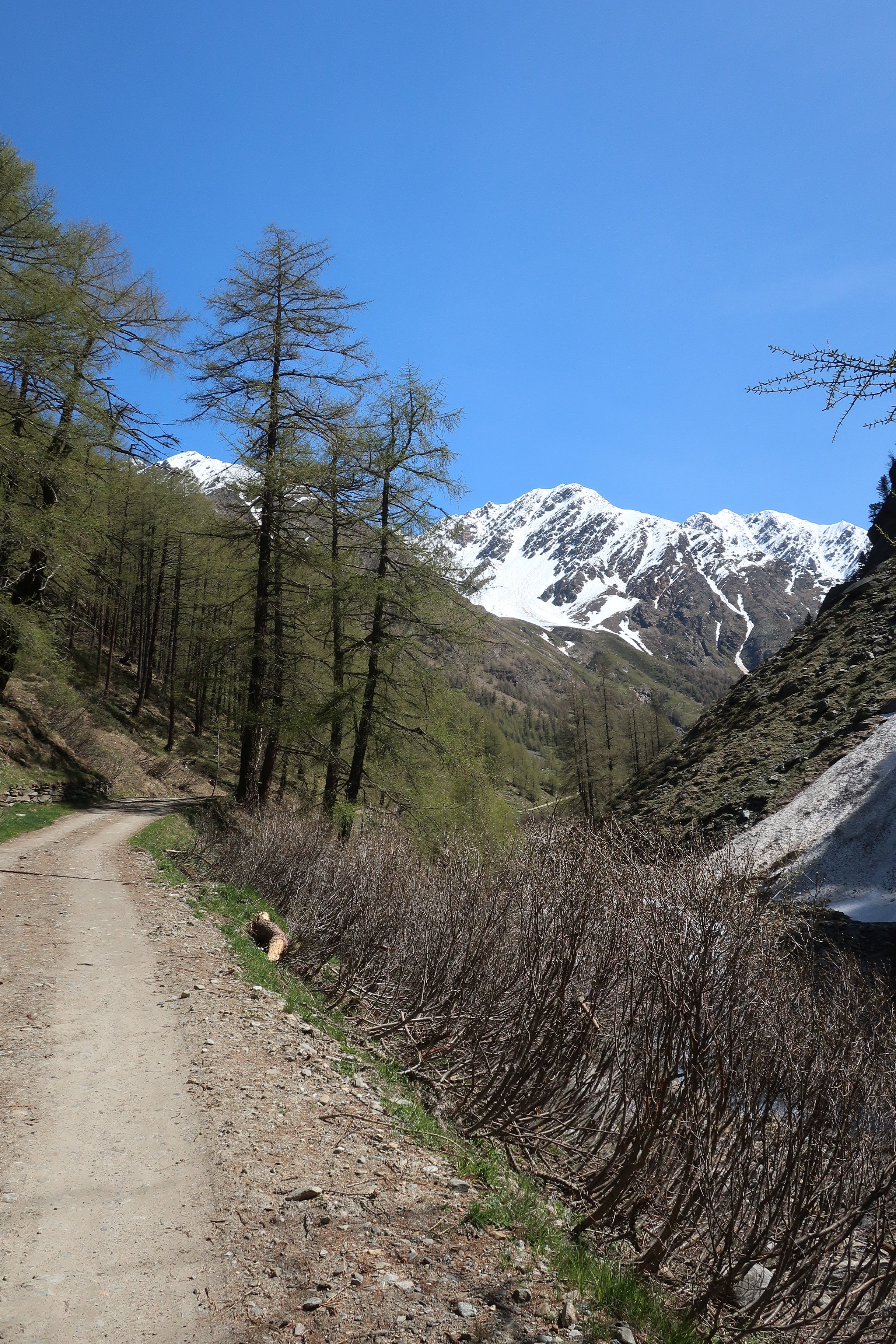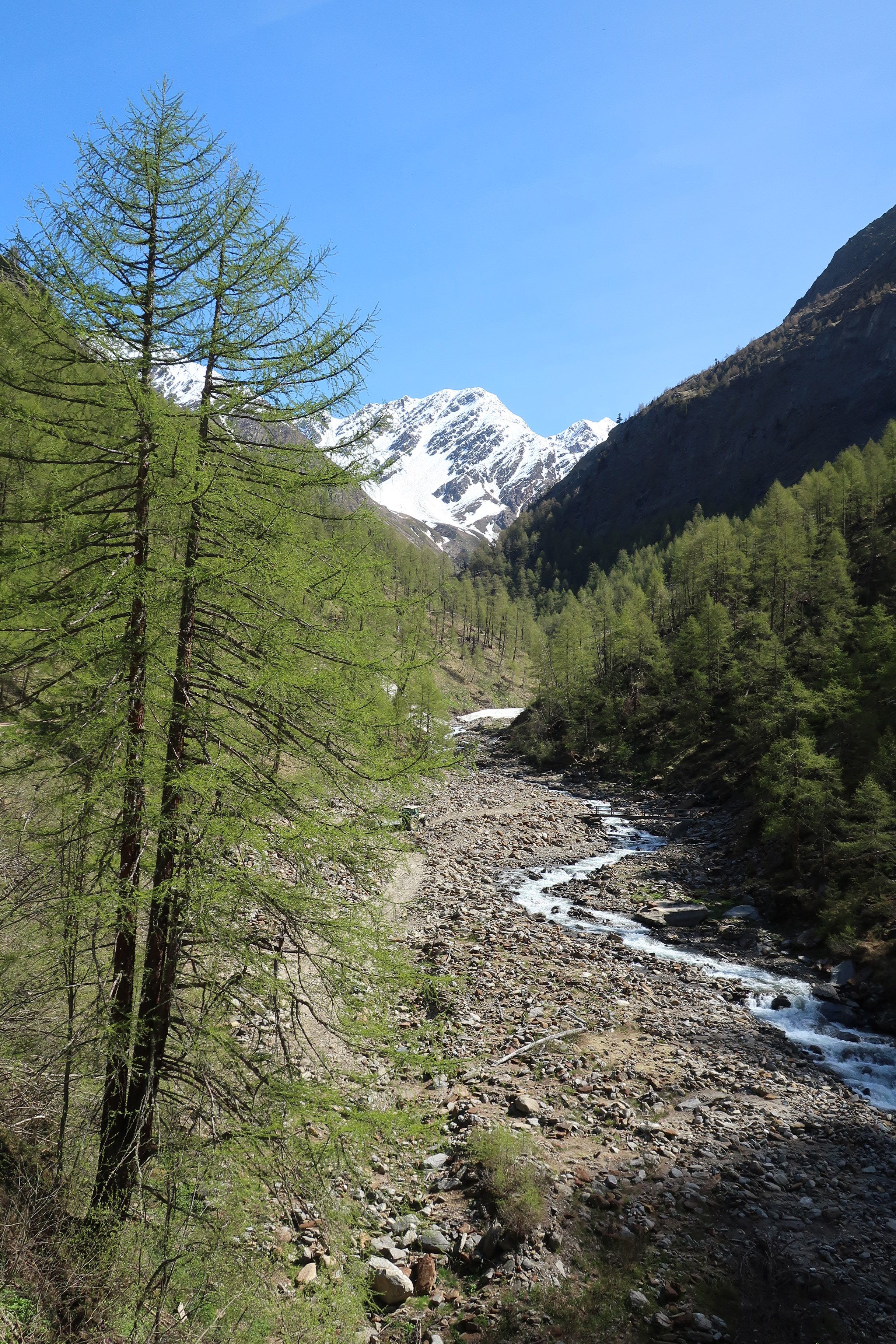 Das Tal weiter oben sieht super schön aus. Es liegt noch einiges Schnee auf den Gipfeln. Der Schnee glänzt in der Sonne. Ganz weiß. Noch recht frisch. Es soll Anfang der Woche noch geschneit haben, was für diese Jahreszeit eher untypisch ist.