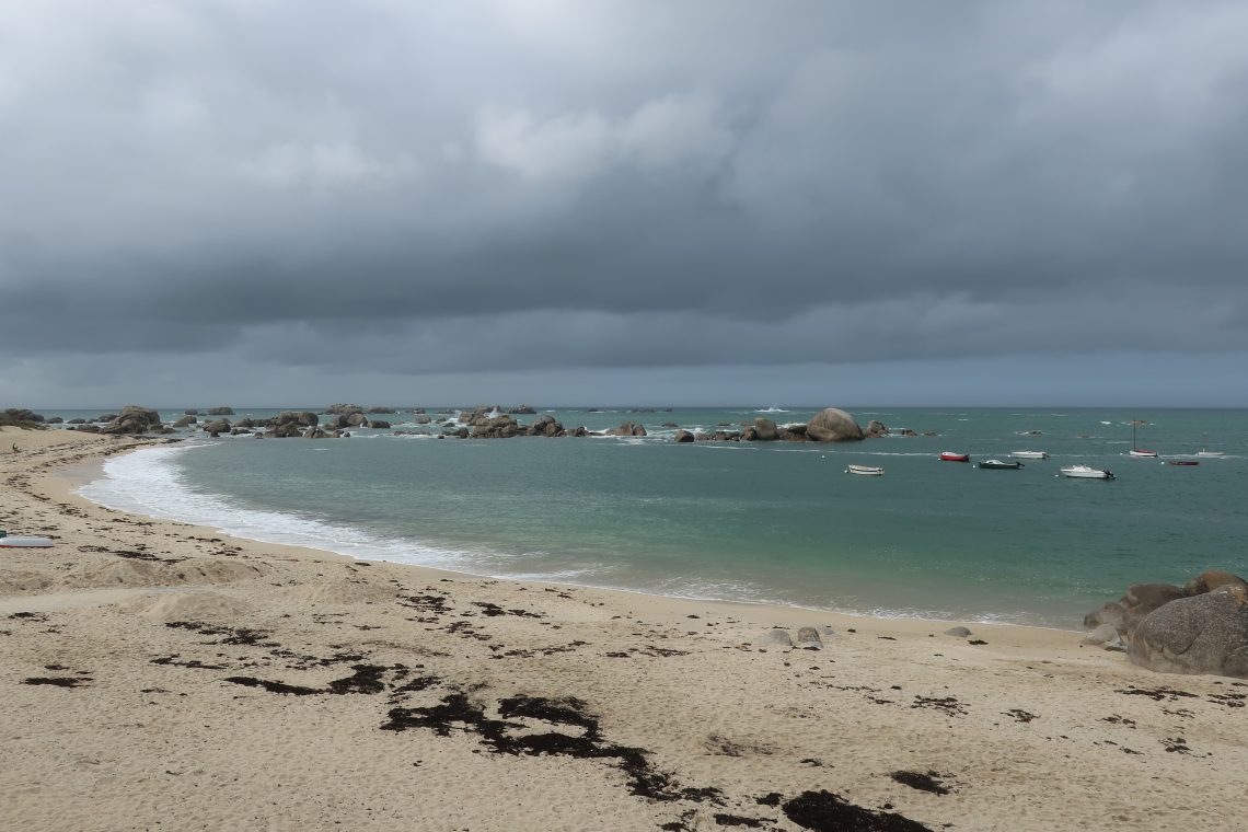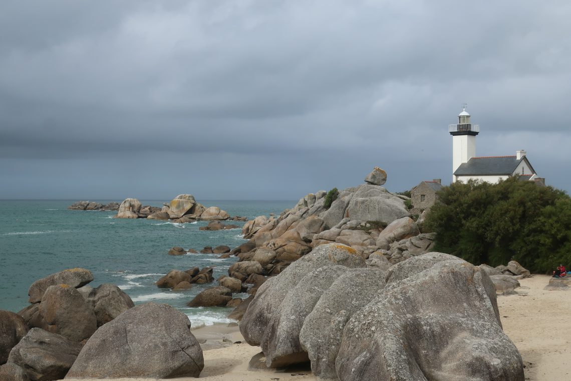 Nachmittags fahren wir zur Nordküste. Der Phare du Pontusval liegt schön an einer Sandbucht. Das Wetter ist heute eher durchwachsen, mal Nieselregen, dann wieder Sonne.