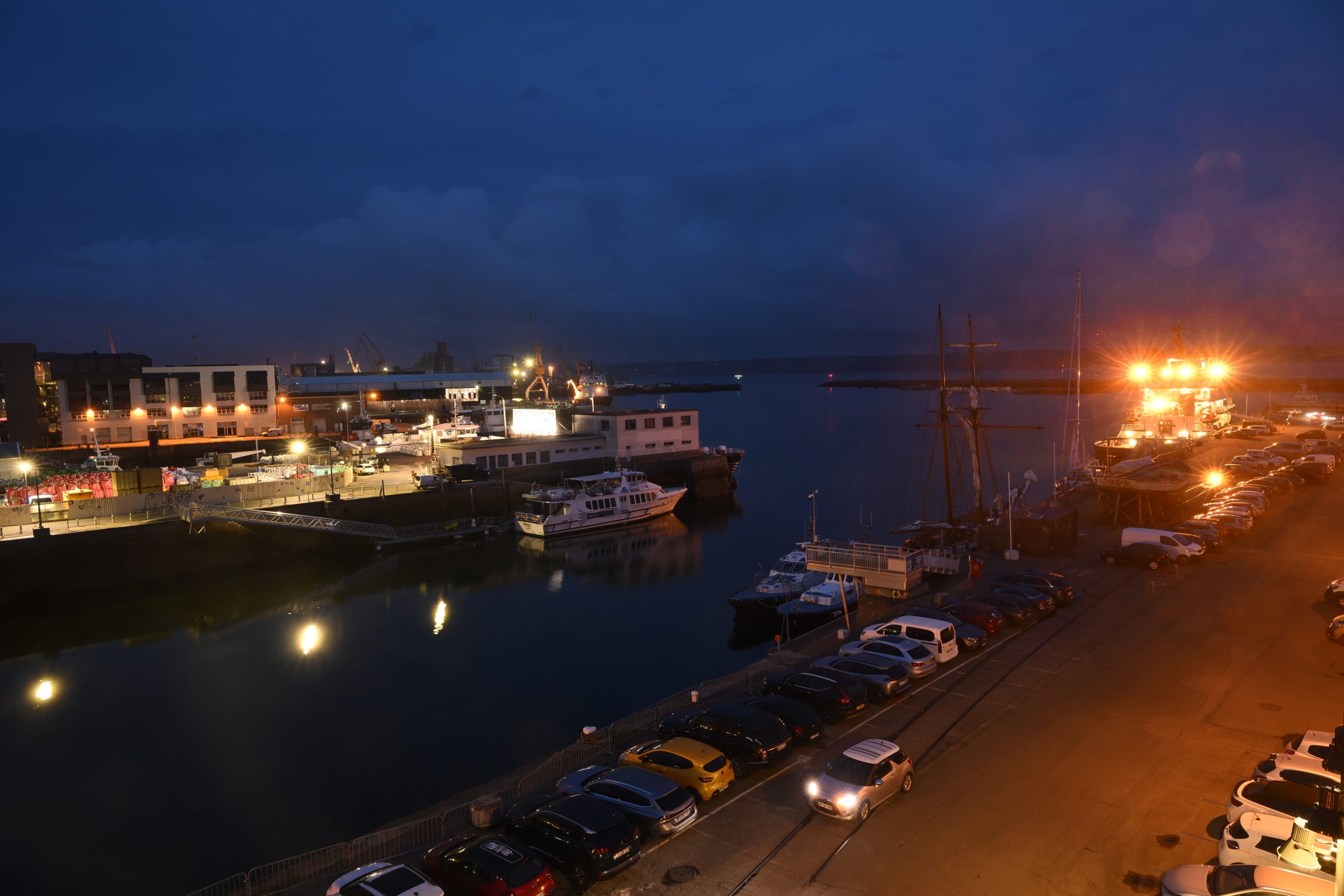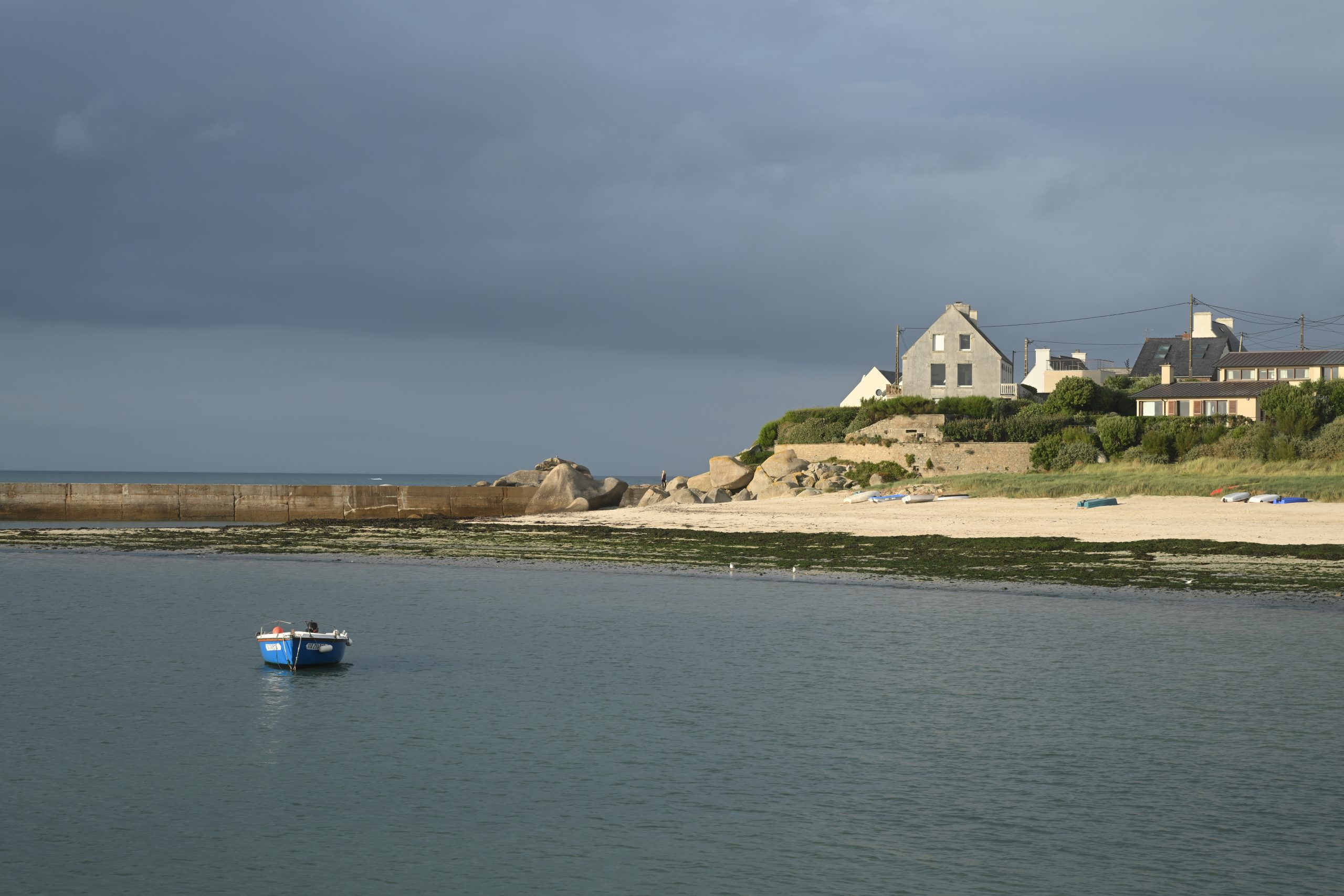 Zum Abschluss fahren wir noch nach Porsguen. Ein kleiner Ort an der nördlichen Küste der Bretagne. Der Hafen zeigt sich kurz im letzten Licht der Sonne für heute. Danach setzt Nieselregen ein und wir fahren wieder zurück in unser Apartment in Brest. Dort genießen wir nochmals den Abend auf dem Balkon mit Blick auf den Hafen.