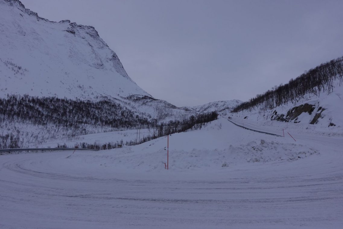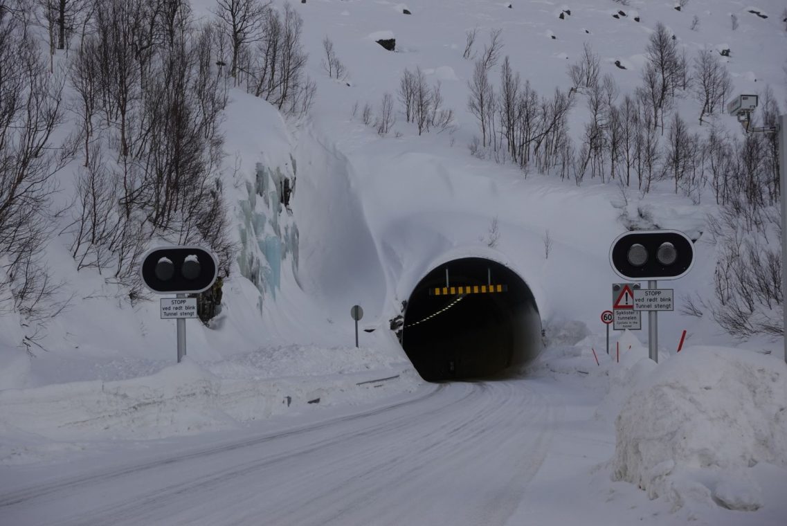 Den Pass hoch treffen wir auf eine schöne glitzernde Schneelandschaft. Noch ist es ruhig und einsam, doch schon am Aussichtspunkt auf der anderen Tunnelseite soll sich dies ändern.