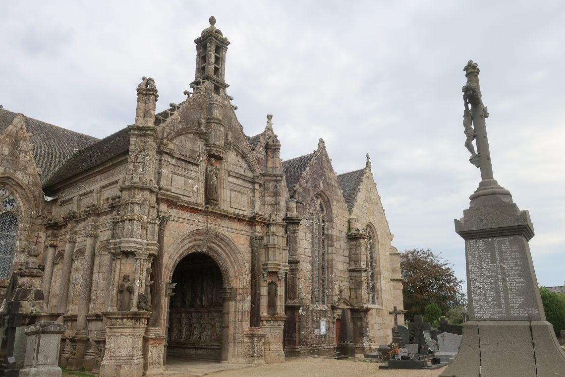 Auf dem Weg zum Schloss Kerjean stoppen wir in Bodilis für eine Kirche. Als über uns zwei Militär Jets Flugübungen machen, kurz darauf eine dritte Maschine startet und die ersten beiden mit ausgeklappten Rädern zur Landung ansetzen, schauen wir uns die Karte genauer an – und entdecken eine große Air Base – direkt neben dem Ort.