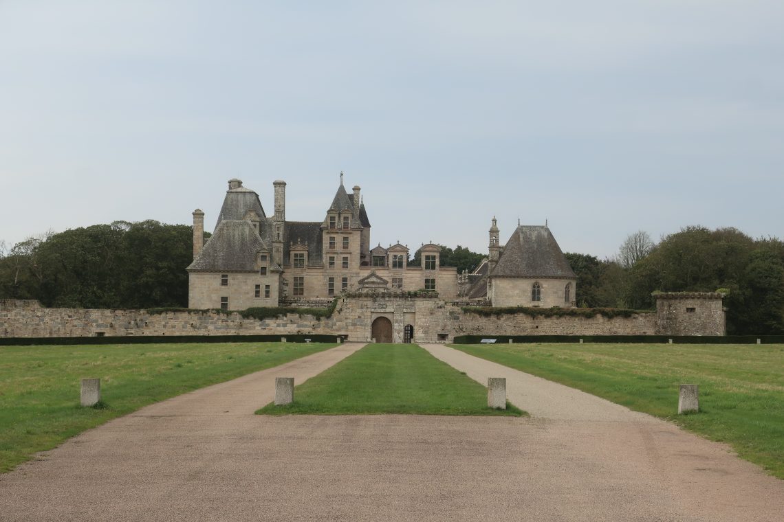 Das Schloss Kerjean ist noch geschlossen (nur nachmittags geöffnet). Es wirkt schon ein wenig wie im “Winterschlaf”. Das trübe Wetter trägt sein übriges bei.