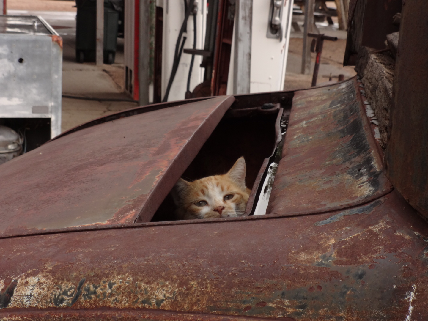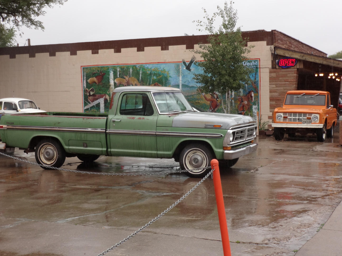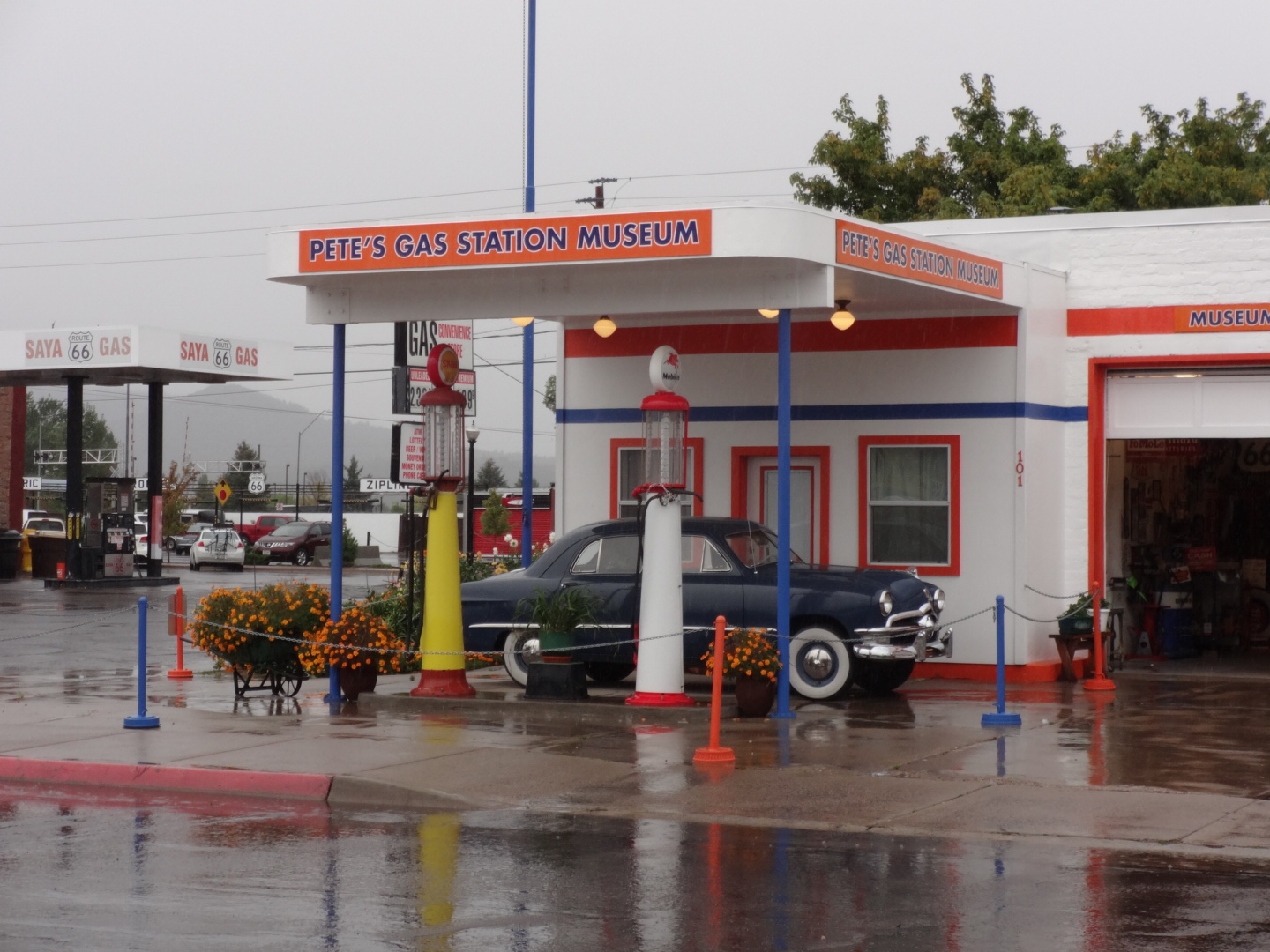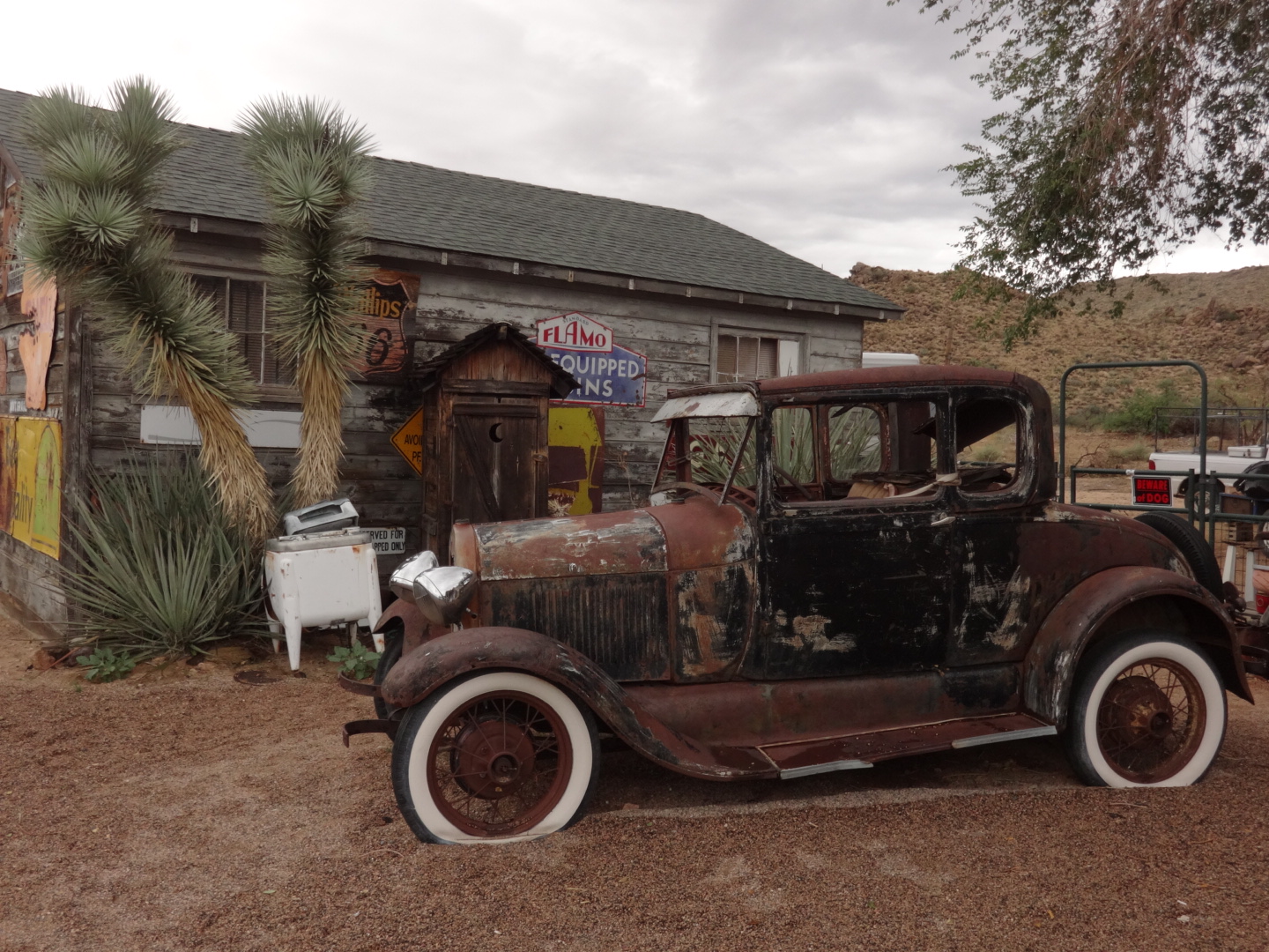 Im nächsten Örtchen Seligman treffen wir auf einige Reisebusse und ein paar auf Kitsch und alt gemachte Läden und Restaurants. Trotz Regen ganz spaßig anzusehen. Ein wenig wie ein großes Freilichtmuseum.