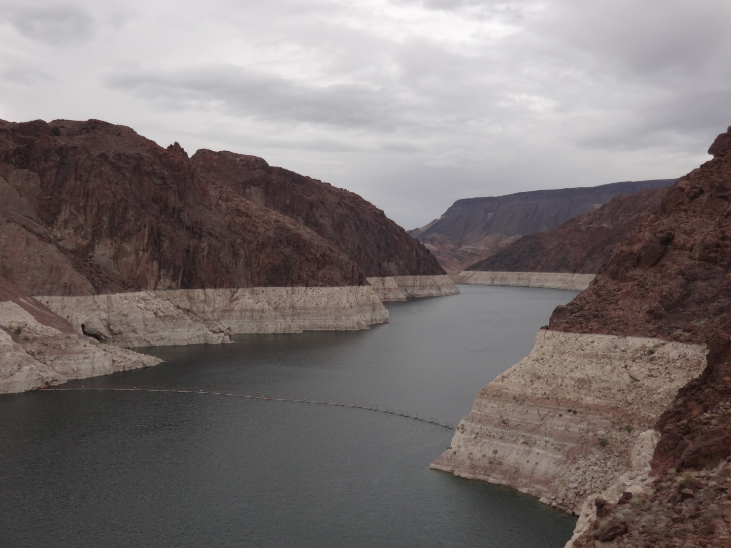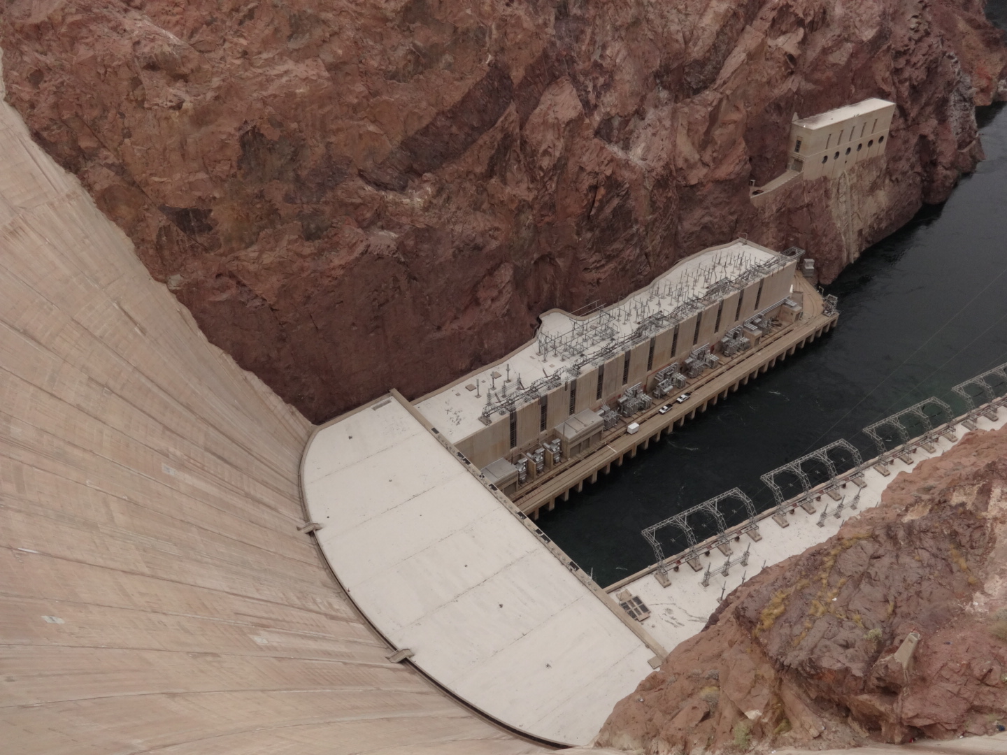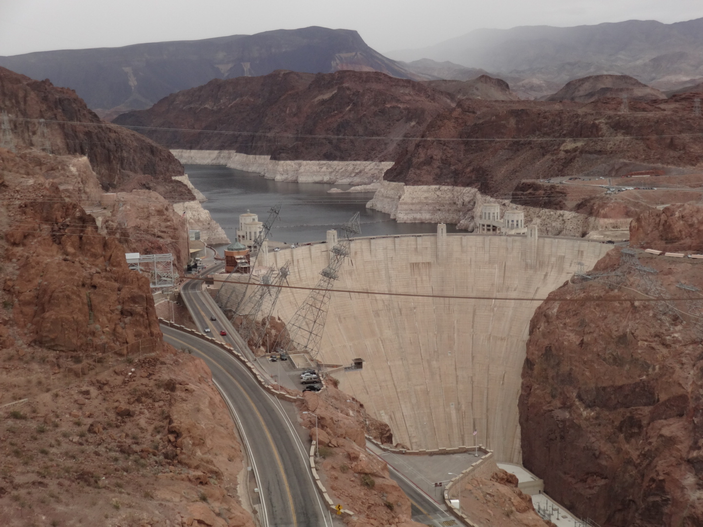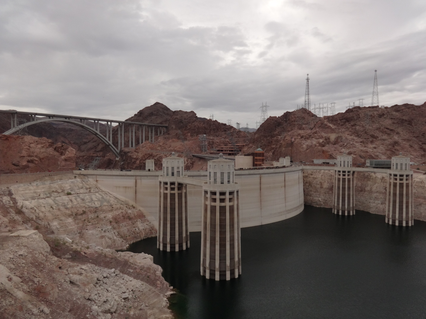 Kurz vor Las Vegas biegen wir noch zum Hoover Dam ab. Zuerst auf die Brücke hoch und auf die Staumauer schauen. Dann noch über die Staumauerlaufen und hinunter gucken. Wow. Die Staumauer ist echt hoch. Immer wieder faszinierend, wie so was gebaut werden kann. Das Visitor Center hat leider schon zu.