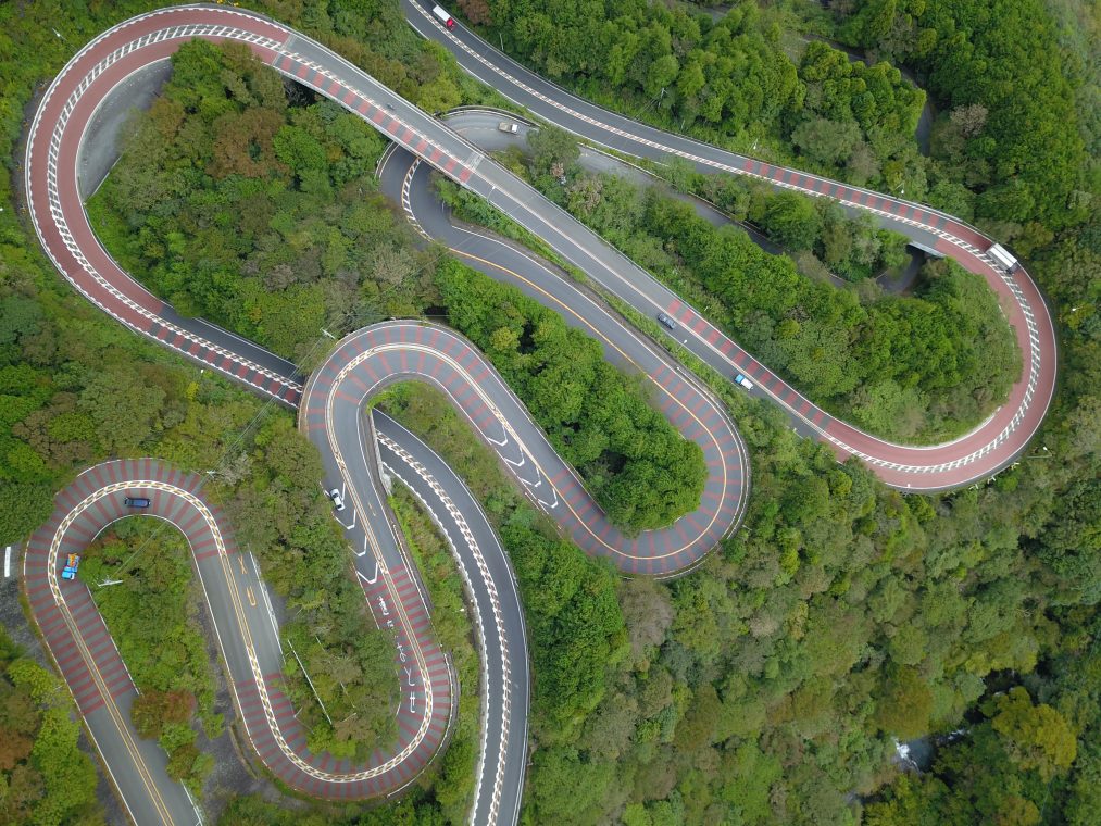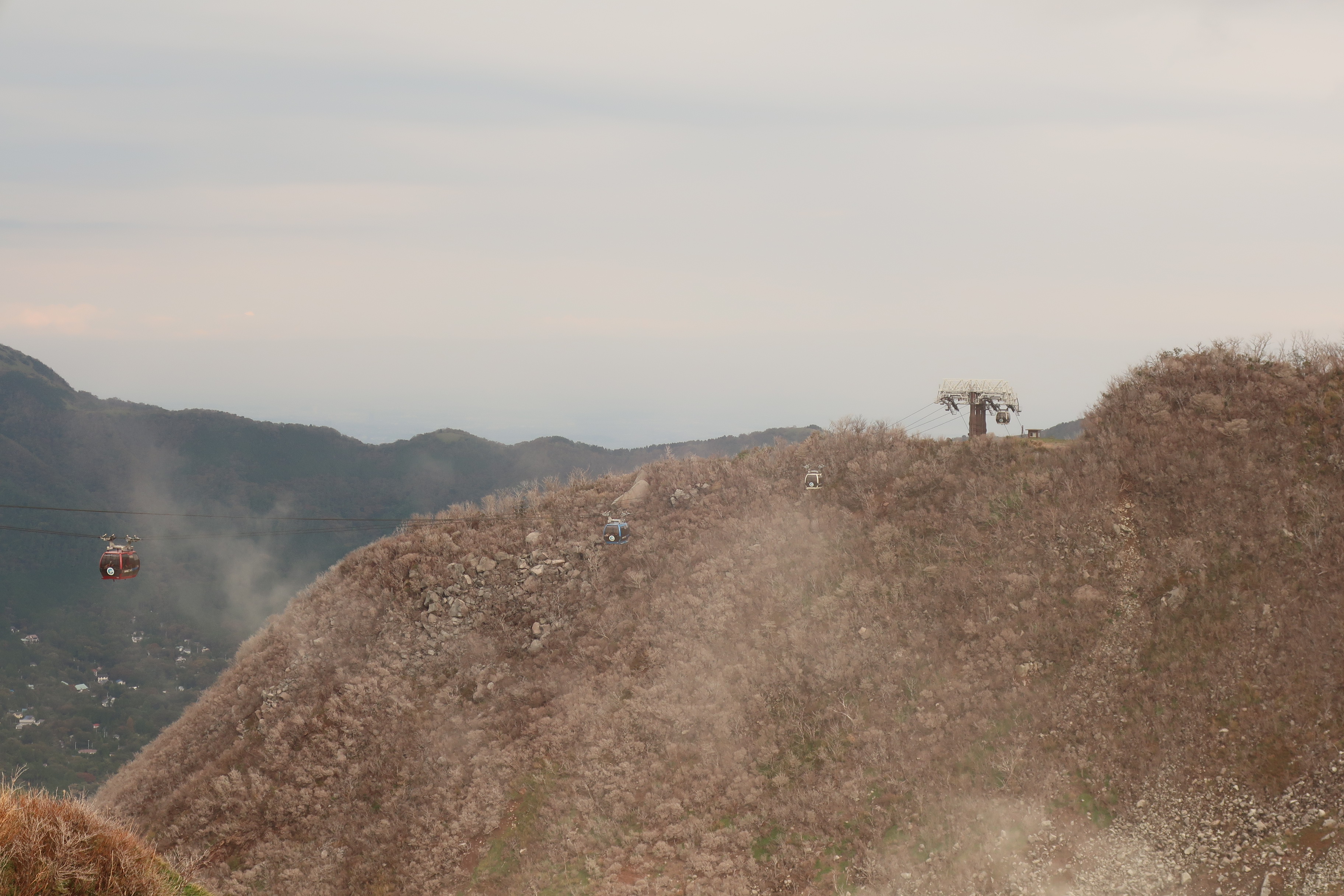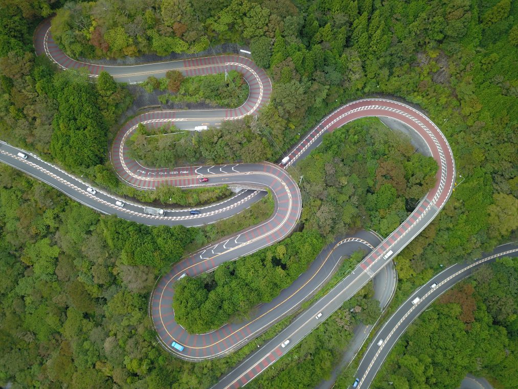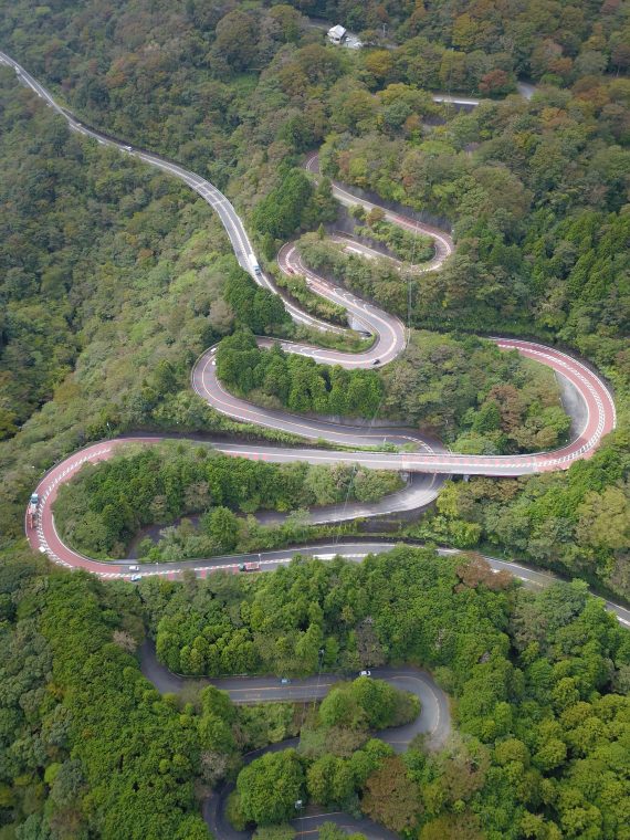 Die Wolken ziehen weiter zu. Also entschließen wir uns die Gegend um den Mount Hakone zu erkunden. Auf den Passstraßen rund um den Berg schauen wir uns die sich den Berg hinauf schlängelnden Straßen von oben an.