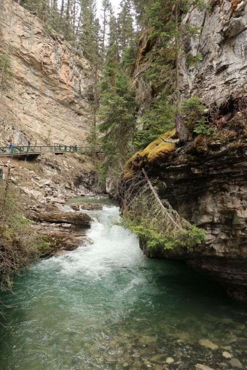 Der Johnston Canyon ist ein beliebtes Ziel zwischen Banff und Lake Louise. Die einfache Wanderung führt entlang des Wasserfalls leicht bergan. Der Weg ist gut ausgebaut und befestigt. Es gibt zwei Aussichtspunkte, die gut besucht sind.