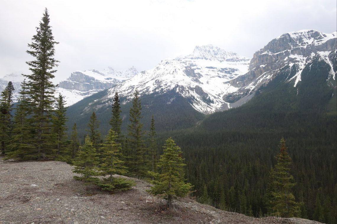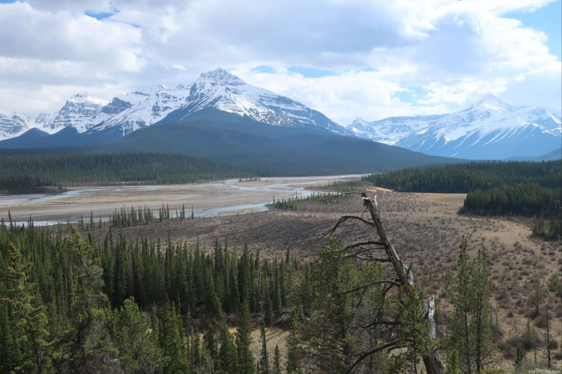 Am Rückweg haben wir Glück und es kommt immer mehr die Sonne durch. Wir halten am Howard Pass View Point. Von hier überblickt man wunderbar das Tal des Saskatchewan River.