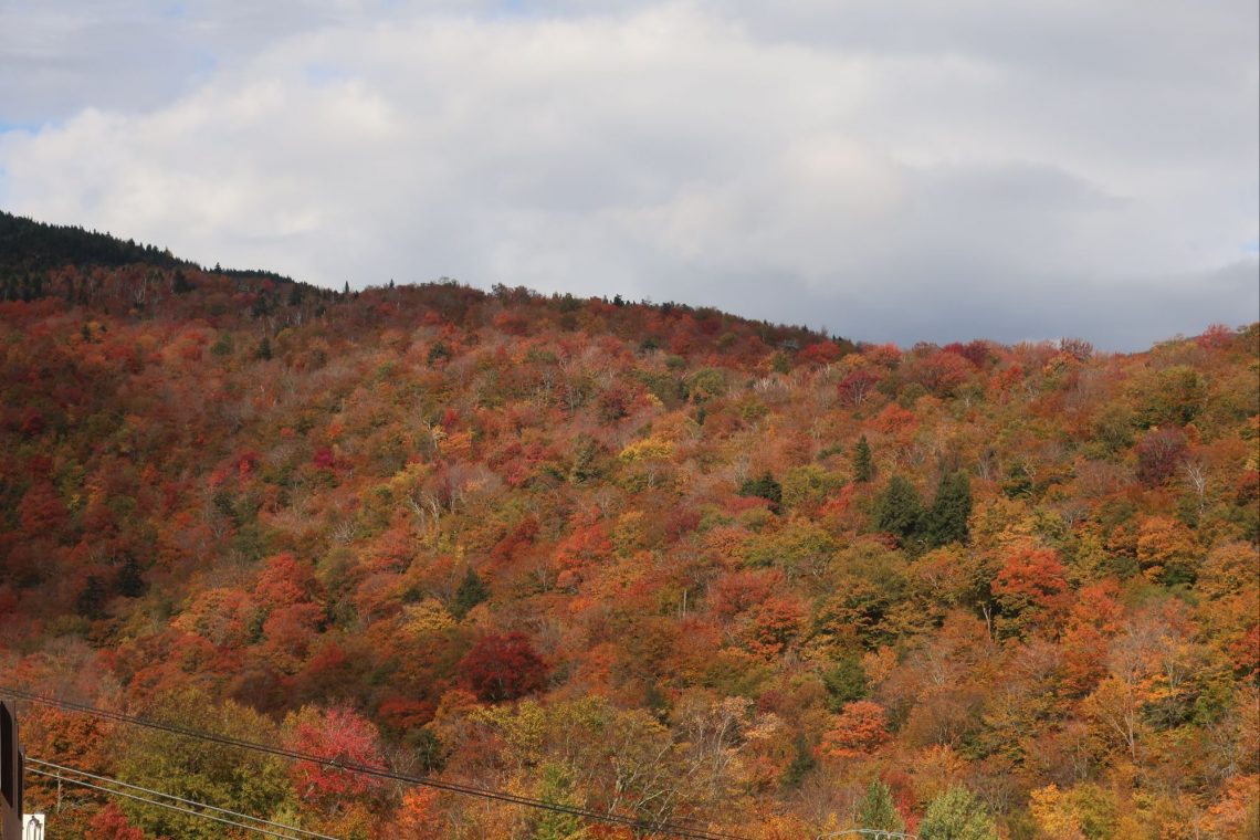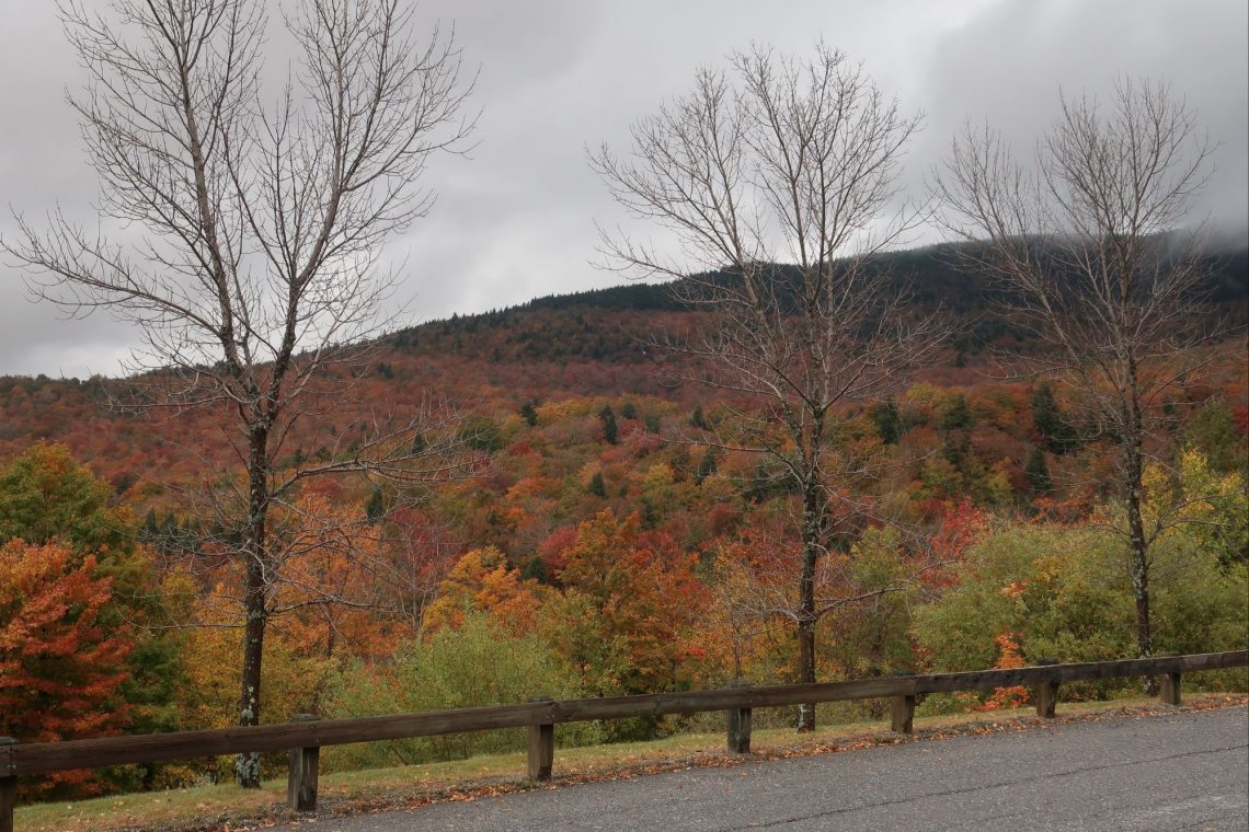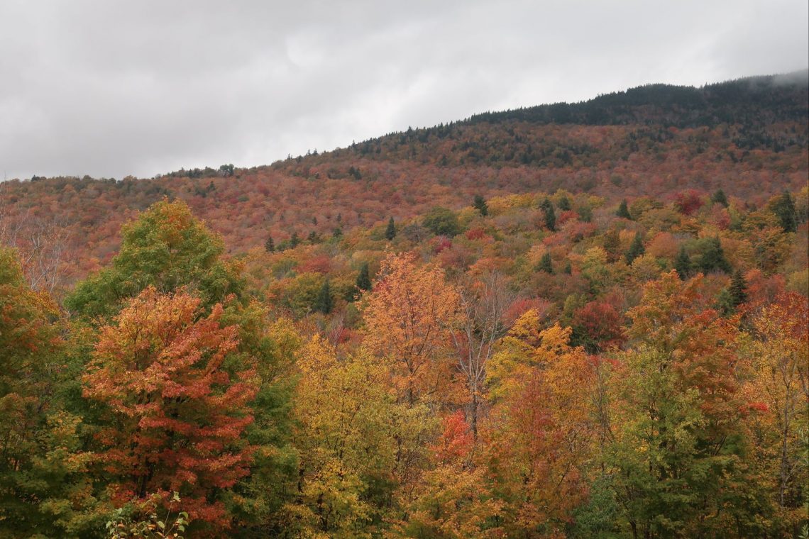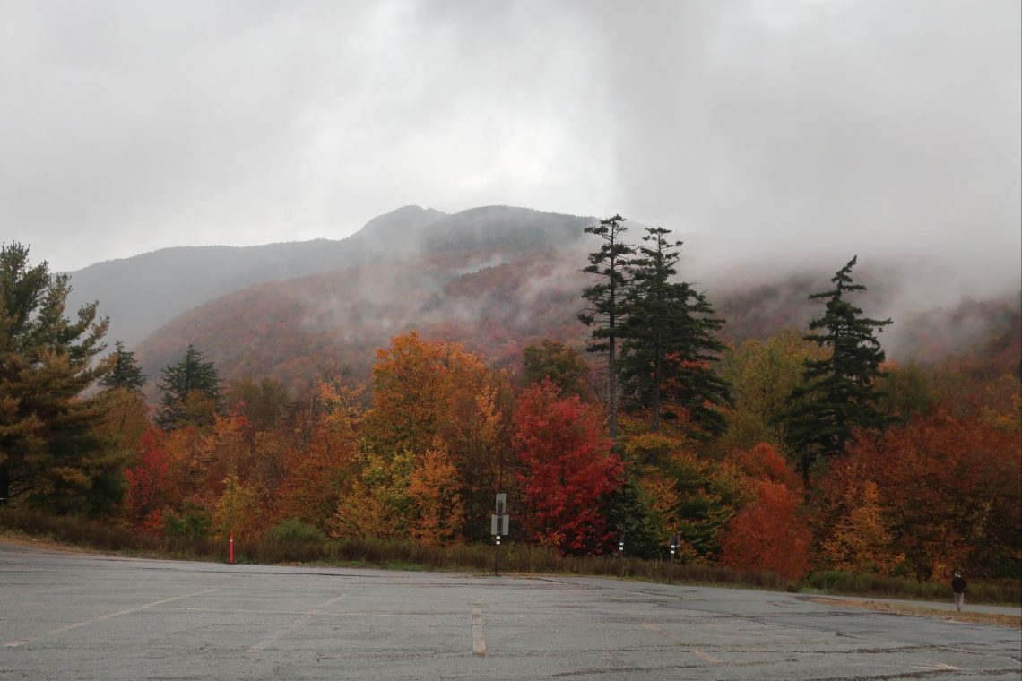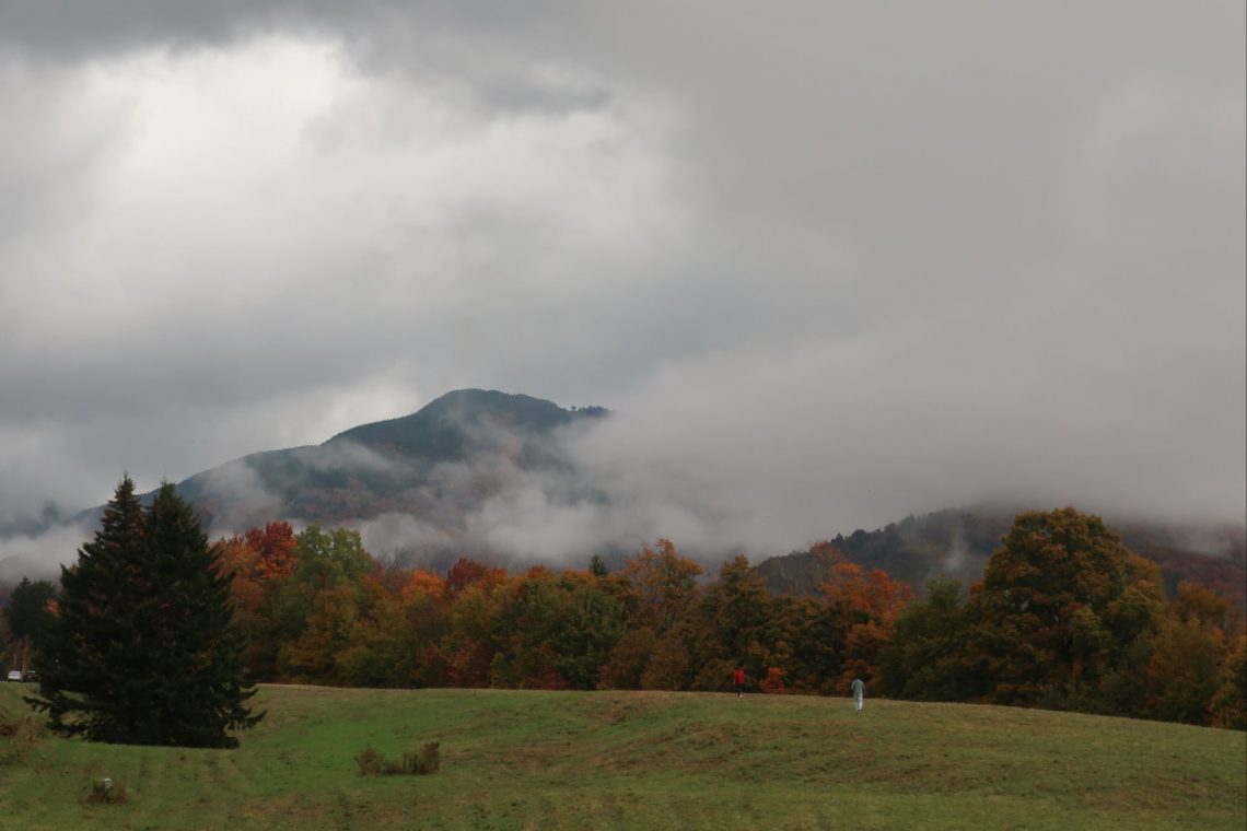 Auf dem Weg nach Smugglers Notch stehen plötzlich viele Autos am Straßenrand und Menschen in der Wiese. Alle um ein Foto zu machen – von bunten Bäumen im Nebel. Das angrenzende Anwesen hat bereits “No Trespassing” Schilder im Abstand von 2m aufgestellt…