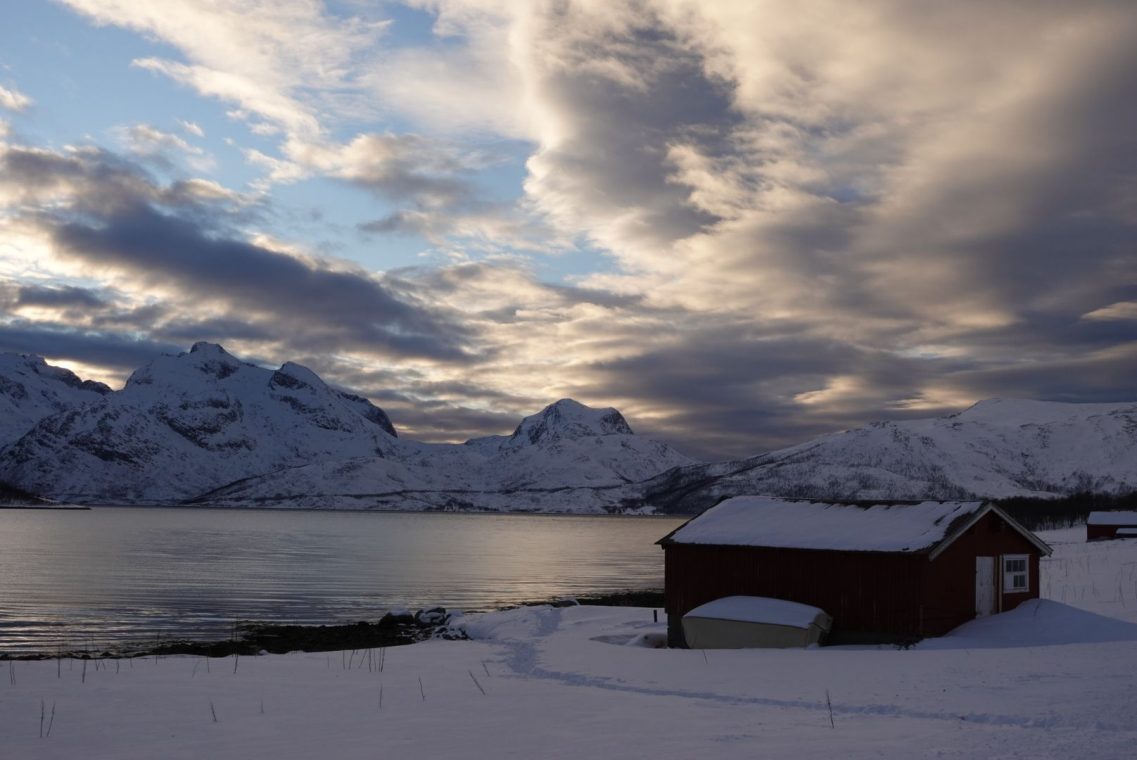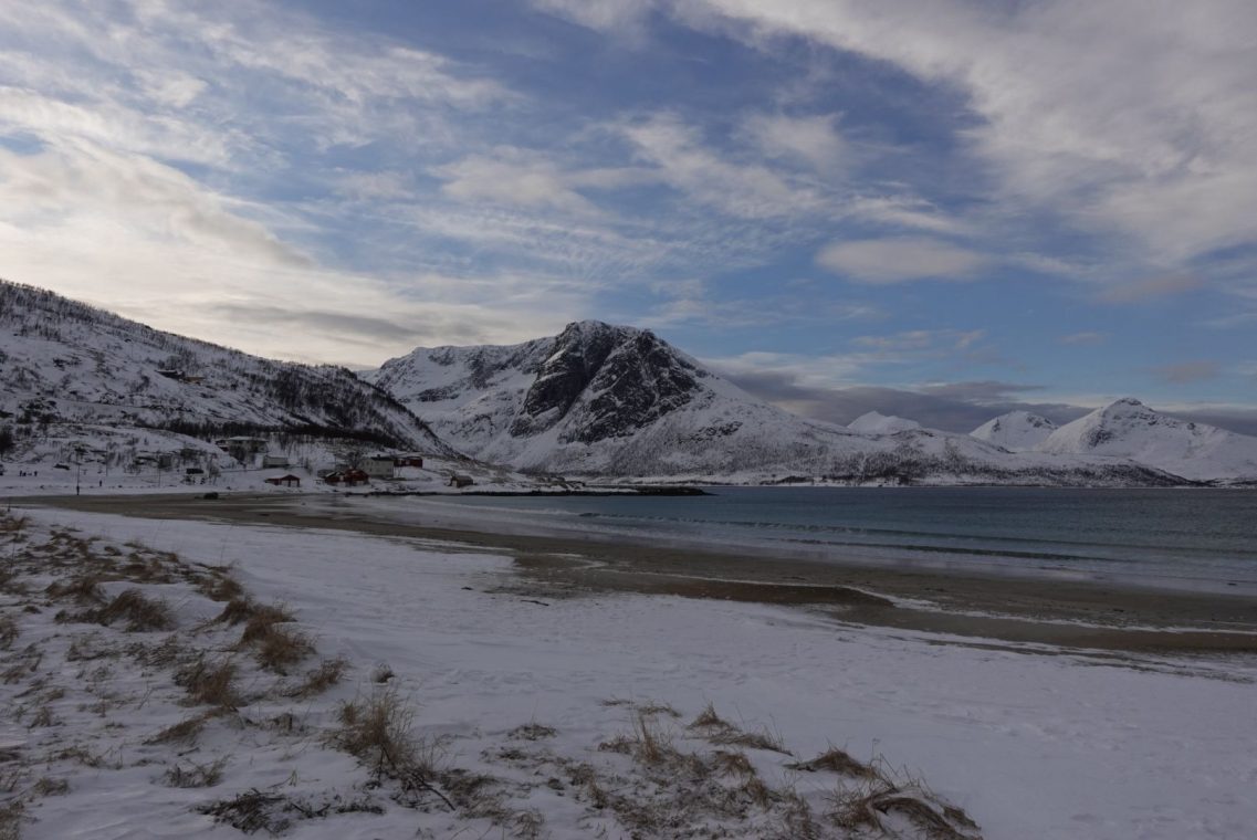 Grøtfjorden ist ein wunderschöner kleiner Ort, bunte Häuser und breitem Sandstrand.