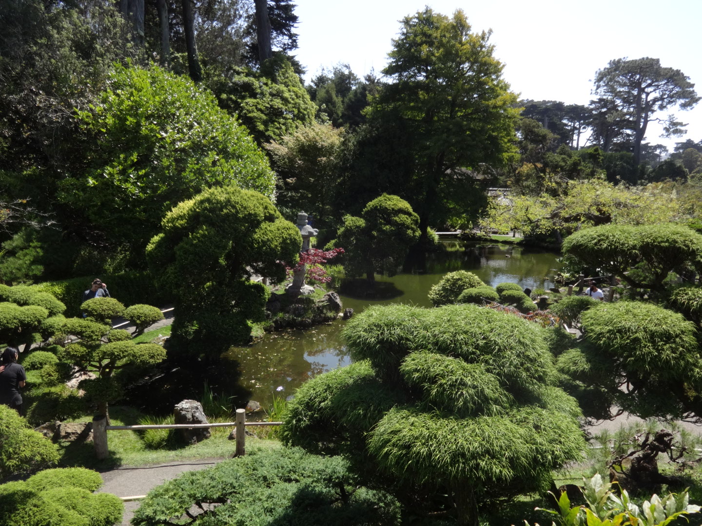 Der japanische Garten in Mitten des Golden Gate Parks ist wunderschön angelegt. Man spürt trotz vieler Menschen die Ruhe, die der Park ausstrahlt. Kugelige Bäume, Pagoden und natürlich kleine Wasserläufe und ein See mit Kois.