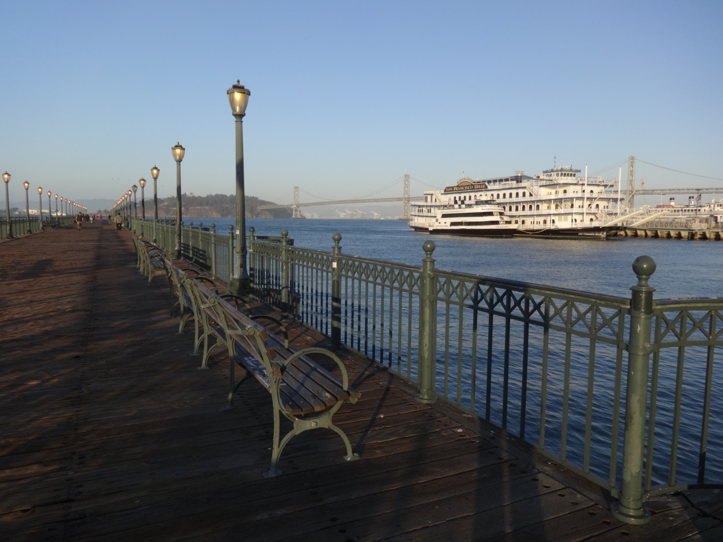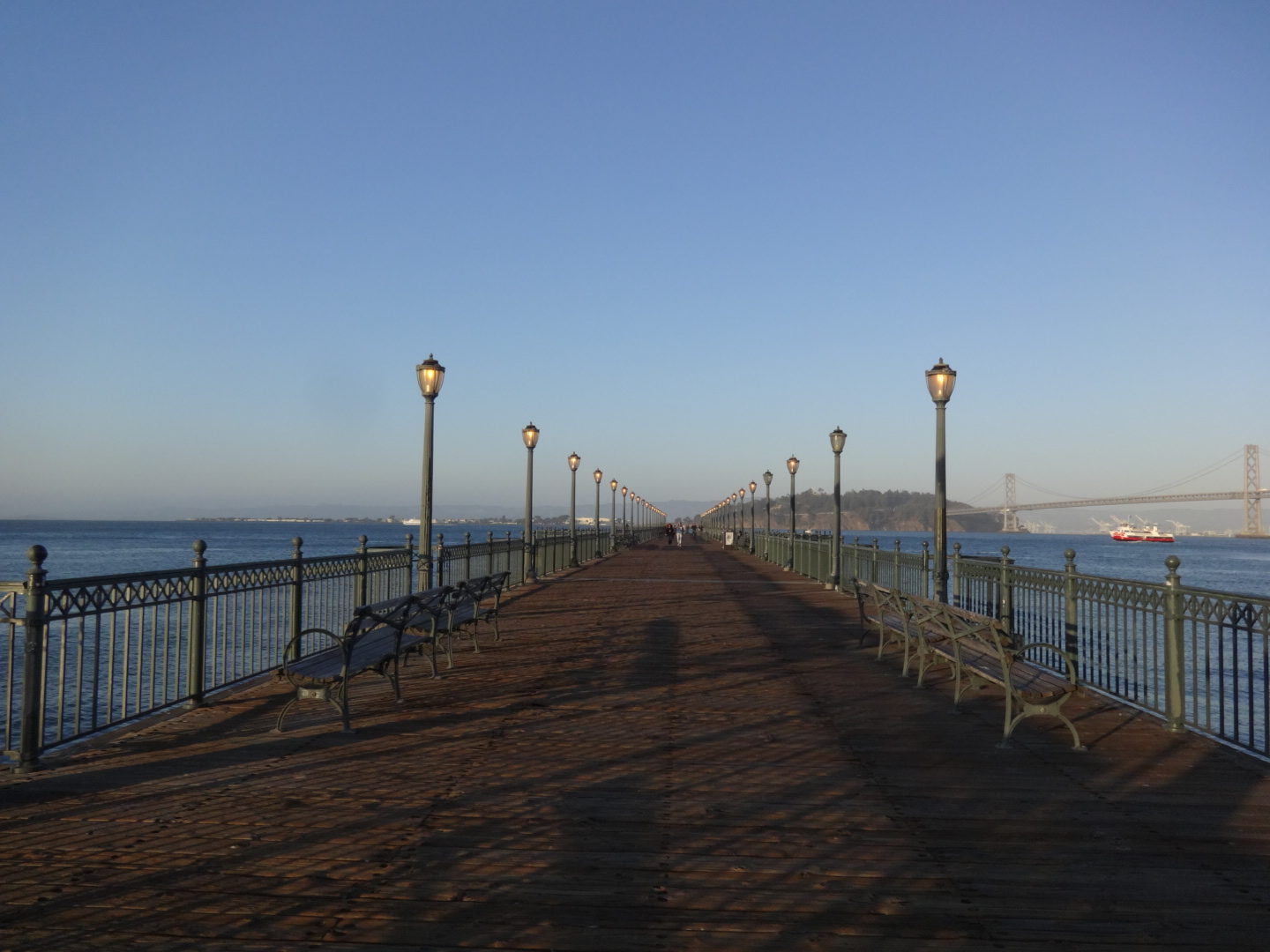 Zum Abschluß schlendern wir nochmal auf den Pier dem Sonnenuntergang entgegen. Schön wars in San Francisco. Morgen beginnt unsere Rundreise. Aber wir wollen zum Abschluss nochmal wieder in die Stadt zurückkommen.