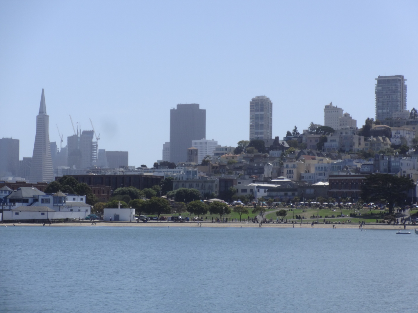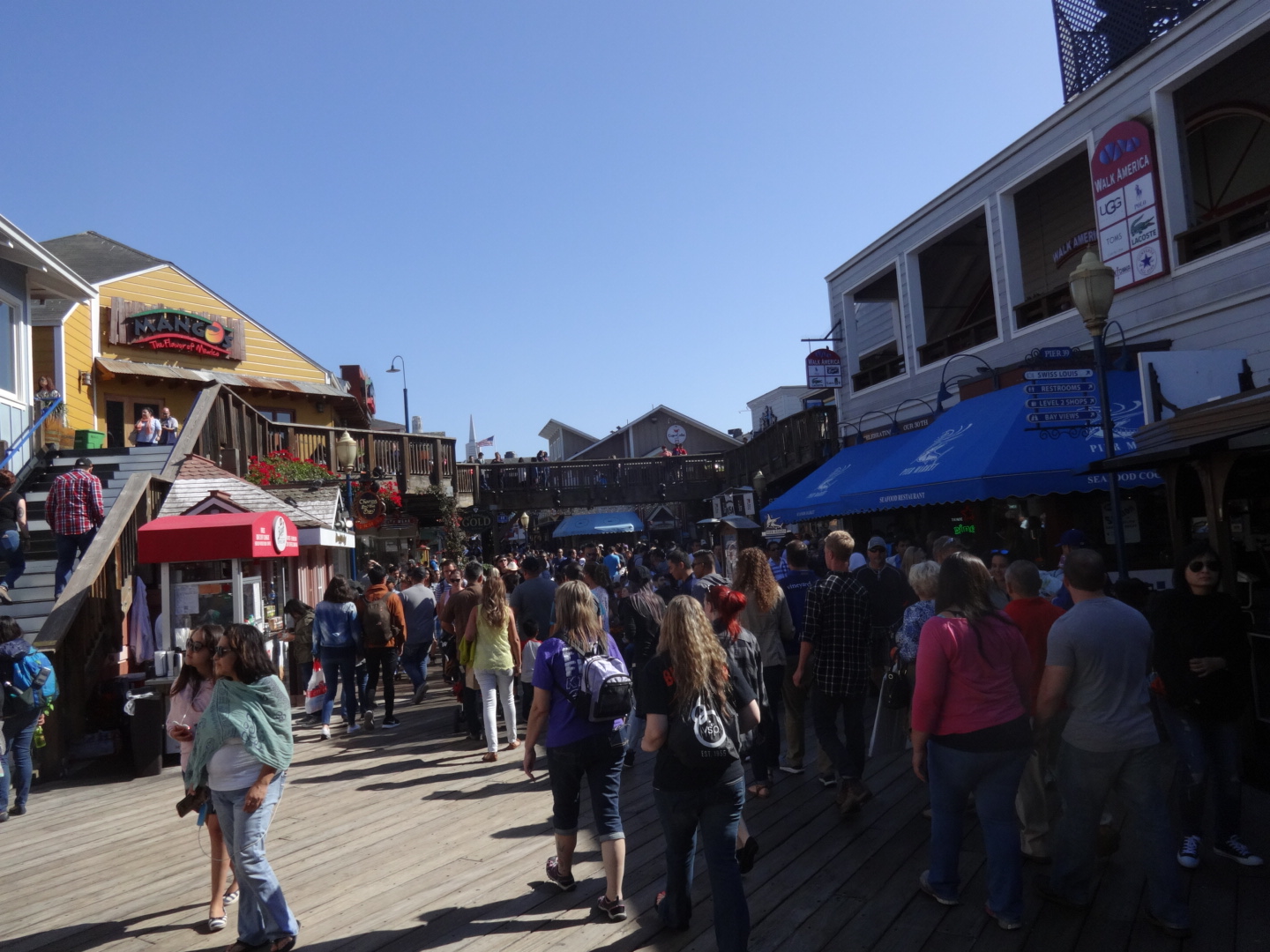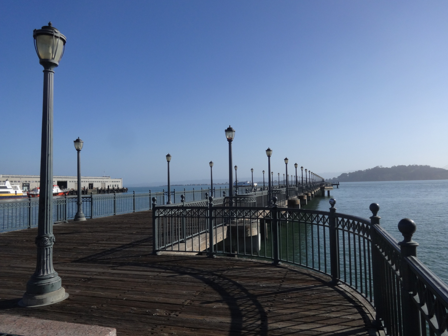 Gut gelaunt (und etwas fitter) ziehen wir los. Bei Sonnenschein, leicht bewölkt geht’s erstmal zum Ferry Building. Dann immer am Ufer entlang. Wunderschönene Ausblicke, schicke Restaurants und Bars auf den Piers.