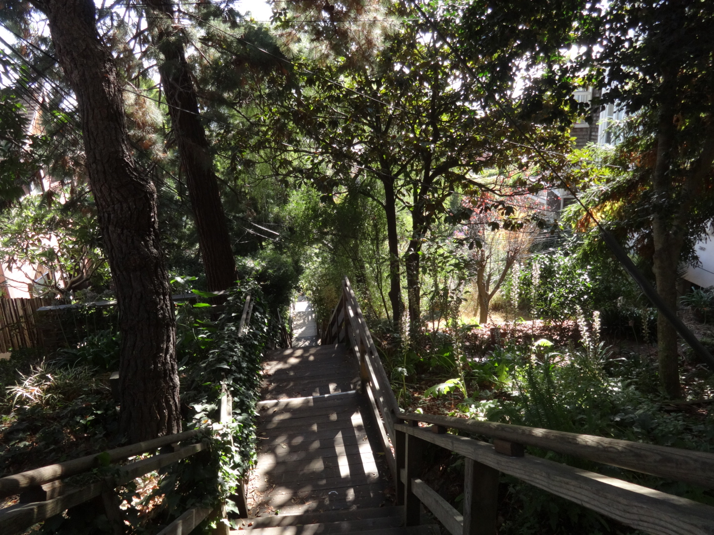 Wir nehmen die Filbert Steps hoch auf den Telegraph Hill. Der Ausblick auf die Stadt und die Golden Gate Bridge lohnt sich. Oben bietet eine kurze Aufzugsfahrt hoch auf den Coit Tower einen noch besseren Rundum-Blick.