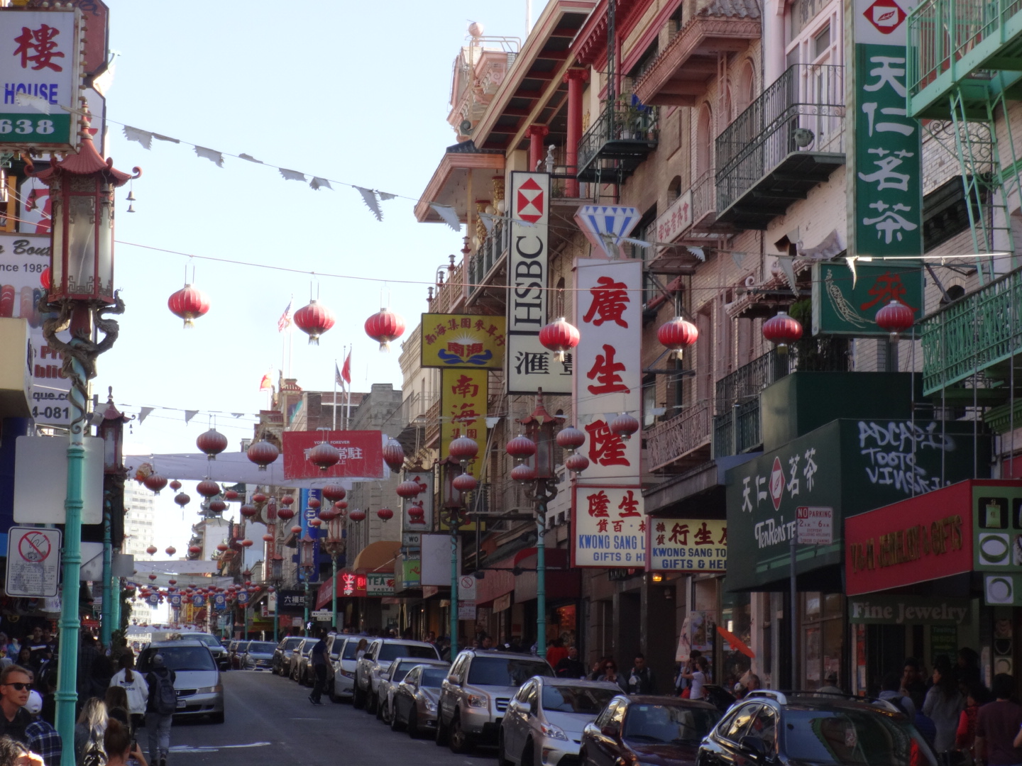 San Francisco’s ChinaTown erstreckt sich über gut drei Querstraßen. Allerdings wird schnell klar. So richtig asiatisch geht es hier auch nicht zu. Viele Läden mit asiatischen Lebensmitteln, dazwischen der unvermeidliche Souvenierladen. Aber auch ein paar Banken, die einfach mal die ein oder andere Säule vor ihre Fassade gebaut haben um ins Straßenbild zu passen. Mit den Girlanden und Lampions quer über die Straße ist es ganz nett hier. Wir sind vielleicht nicht so beeindruckt, da unsere Singapur Reise noch nicht so lang her ist.