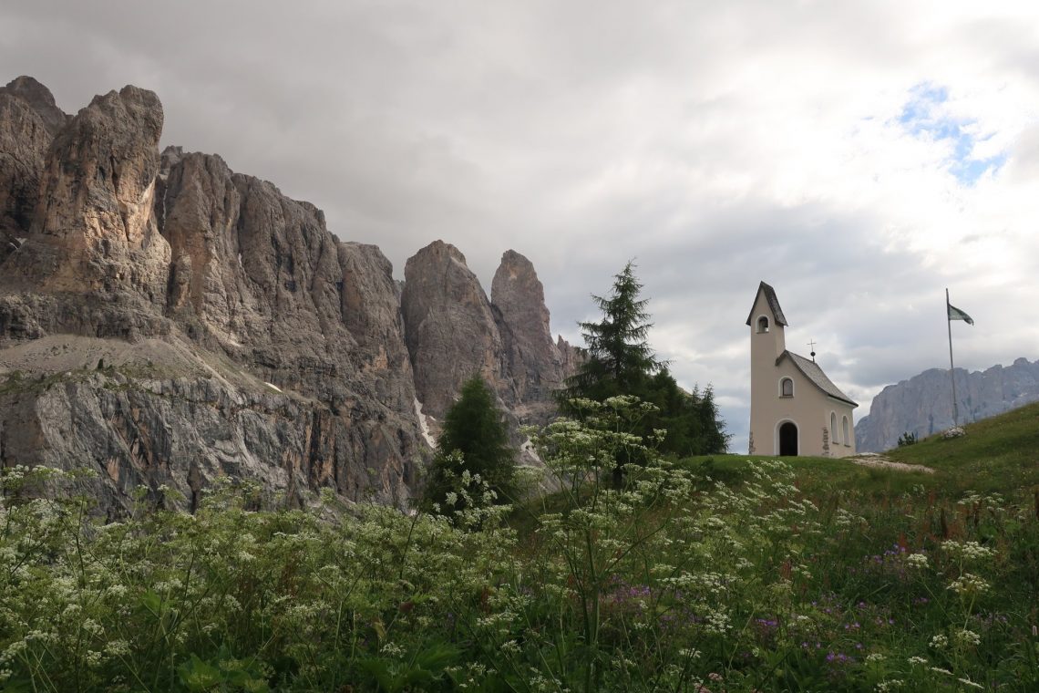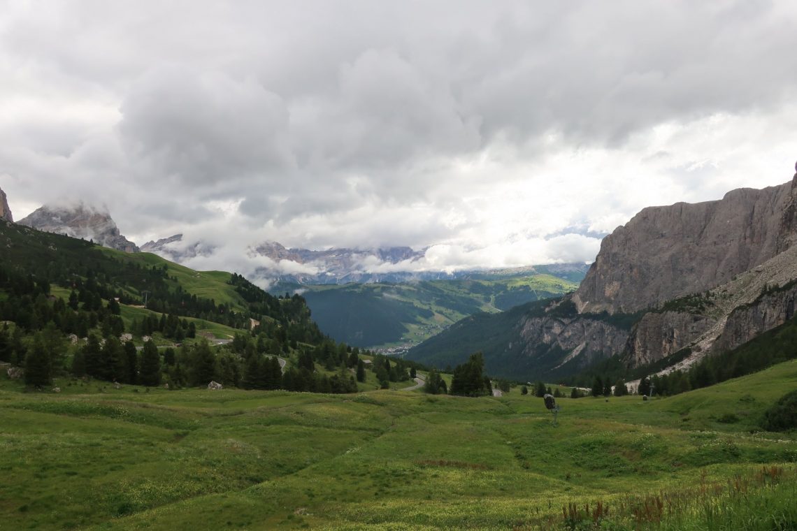 Los geht’s über den Grödner Pass in Richtung Wolkenstein. Es ist viel los auf der Straße. Eine bunte Mischung aus Rennradfahrern, Motorrädern und Autos. Vor allem auf der Passhöhe wird es eng. Hier beginnen auch einige Wanderwege. Der wohl Spannendste: hoch auf den Sella Stock. Wir fahren erst einmal weiter. Und kommen später wieder zum Wandern.