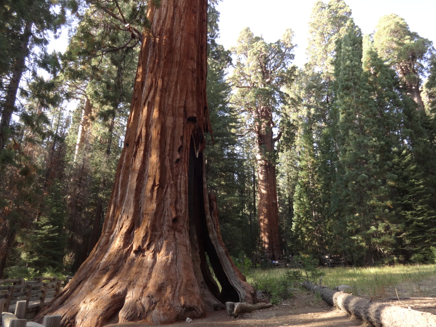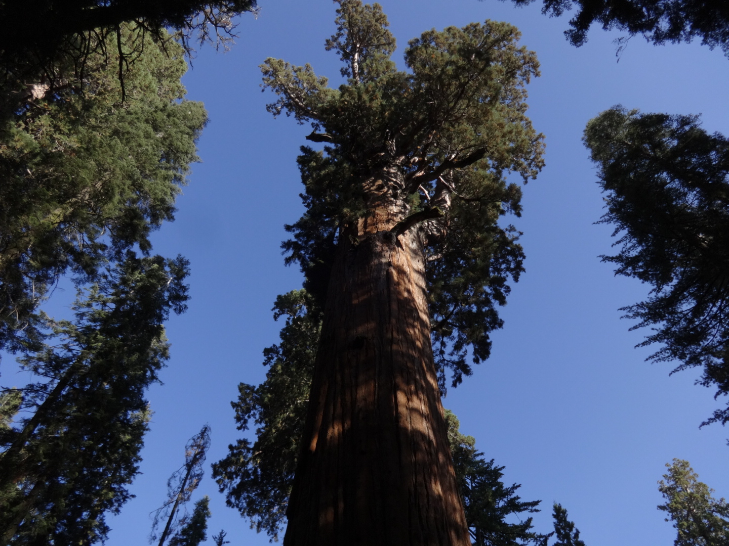 Endlich beim Parkplatz angekommen, geht’s noch zu Fuß ein paar Schritte bergabwärts zum größten Baum der Welt: dem Shermann Tree. Sein Umfang am unteren Baumstamm beträgt gut 30m. Sein dickster Ast hat 2m Durchmesser.