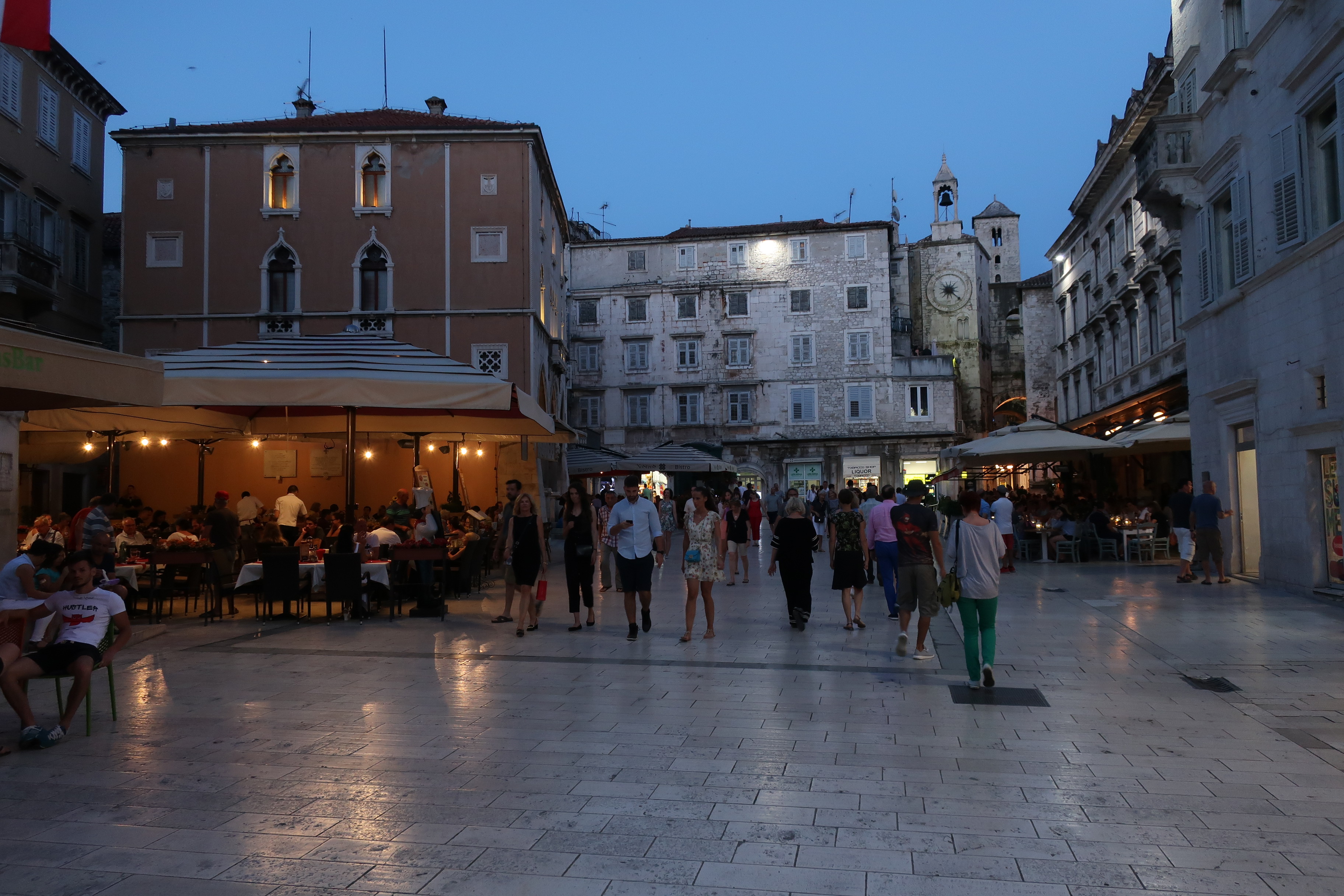 Abends füllt sich die Stadt. Überall Menschen auf den Plätzen, am Ufer und auf den Schiffen im Hafen. Eine Seniorengruppe sitzt an der Promenade und singt kroatische Volkslieder, neben an auf dem Platz eine Promotionveranstaltung mit Pop-Musik.