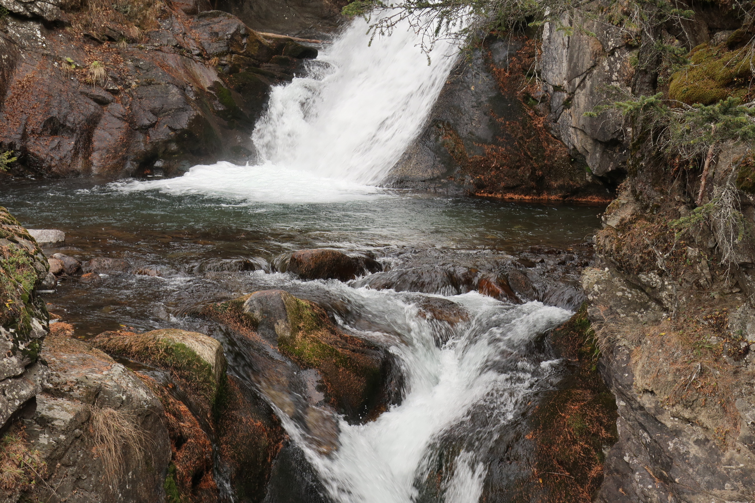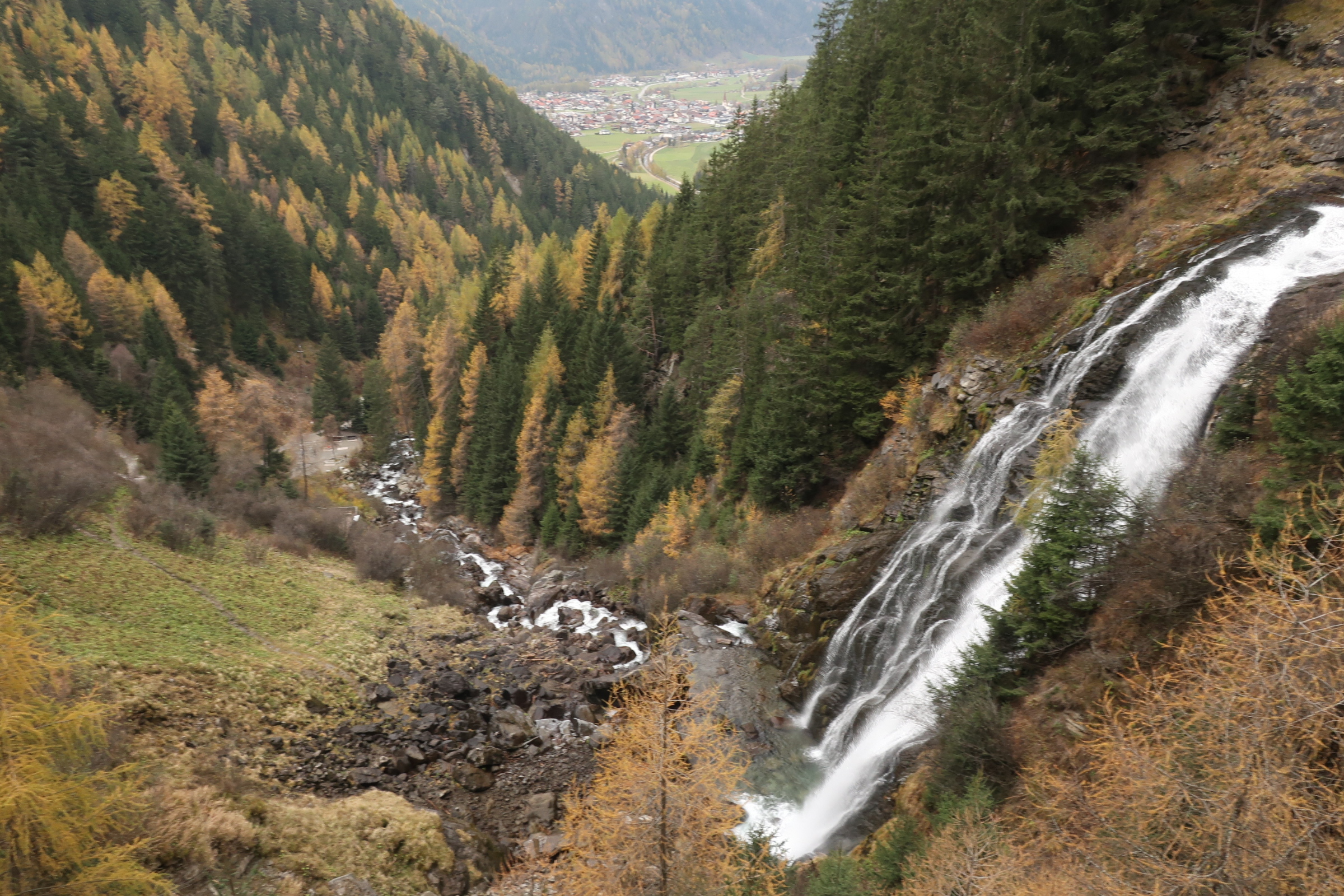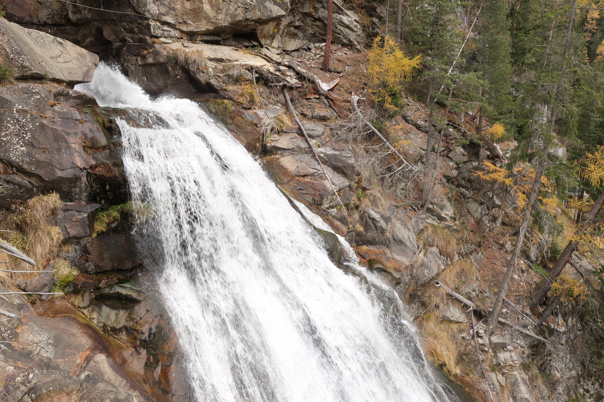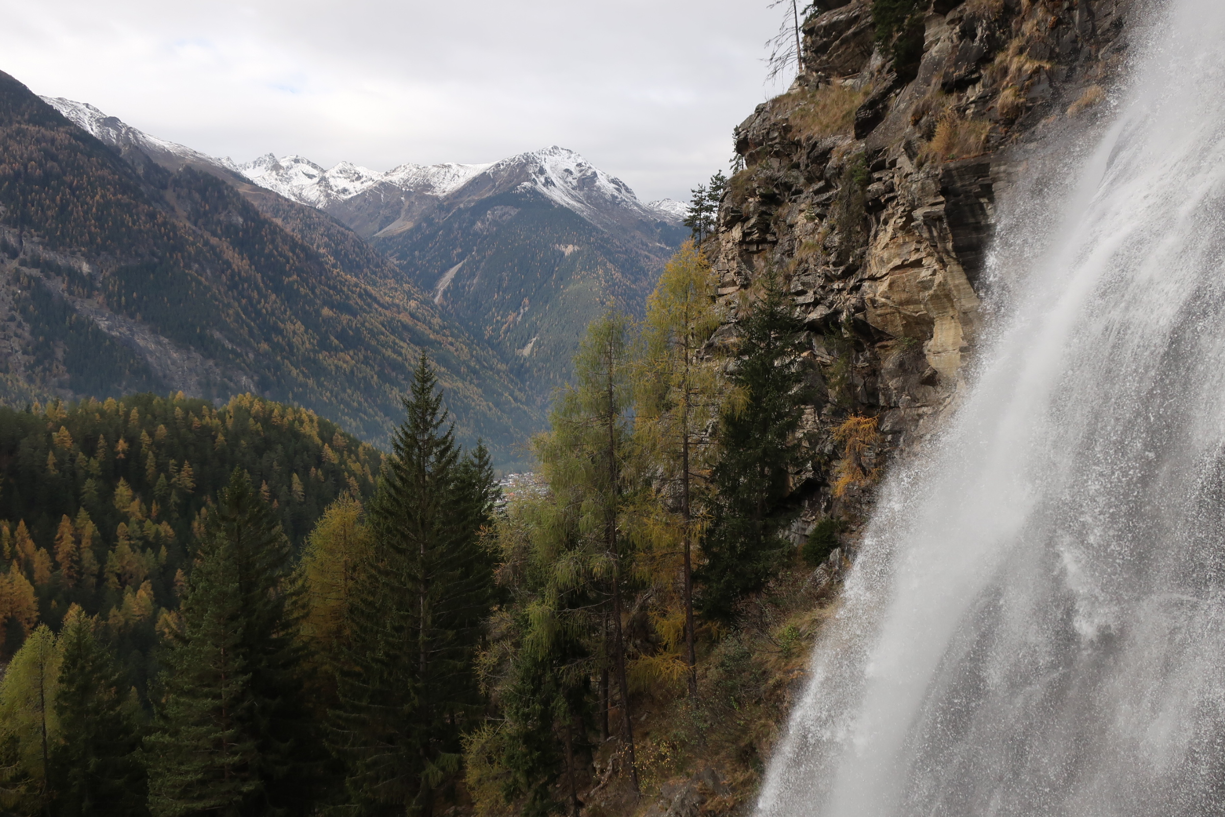 Auf die Entspannung gestern Abend folgt heute nochmal etwas Anspannung. Das Wetter ist wolkig. Keine Sonne in Sicht. Wir machen trotzdem noch einen Abstecher zum Stuibenfall. Der Wasserfall sieht von unten schon beeindruckend aus. Das ist aber nicht der Grund für die Aufregung. Vielmehr das was neben dem Wasserfall wartet. Eine Hängetreppe, die über den Wasserfall führt. Und die im Hang eingebauten Gitterstufen, die zum oberen Ende des Wasserfalls führen. Mit Höhenangst durchaus eine Herausforderung.