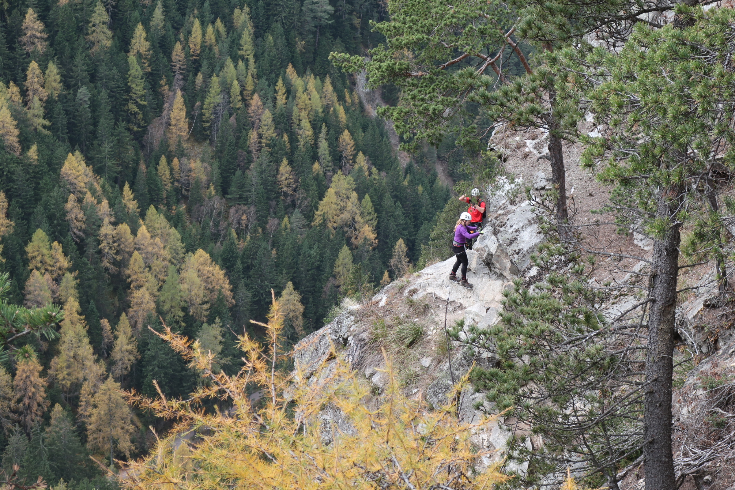 Aber oben angekommen lohnt der Ausblick auf den tosenden Stuibenfall. Stolz stehe ich auf der Aussichtsplattform. Und dann sehe ich wie unter uns Menschen über den Klettersteig hochkommen. Es geht immer noch eine Stufe spannender.