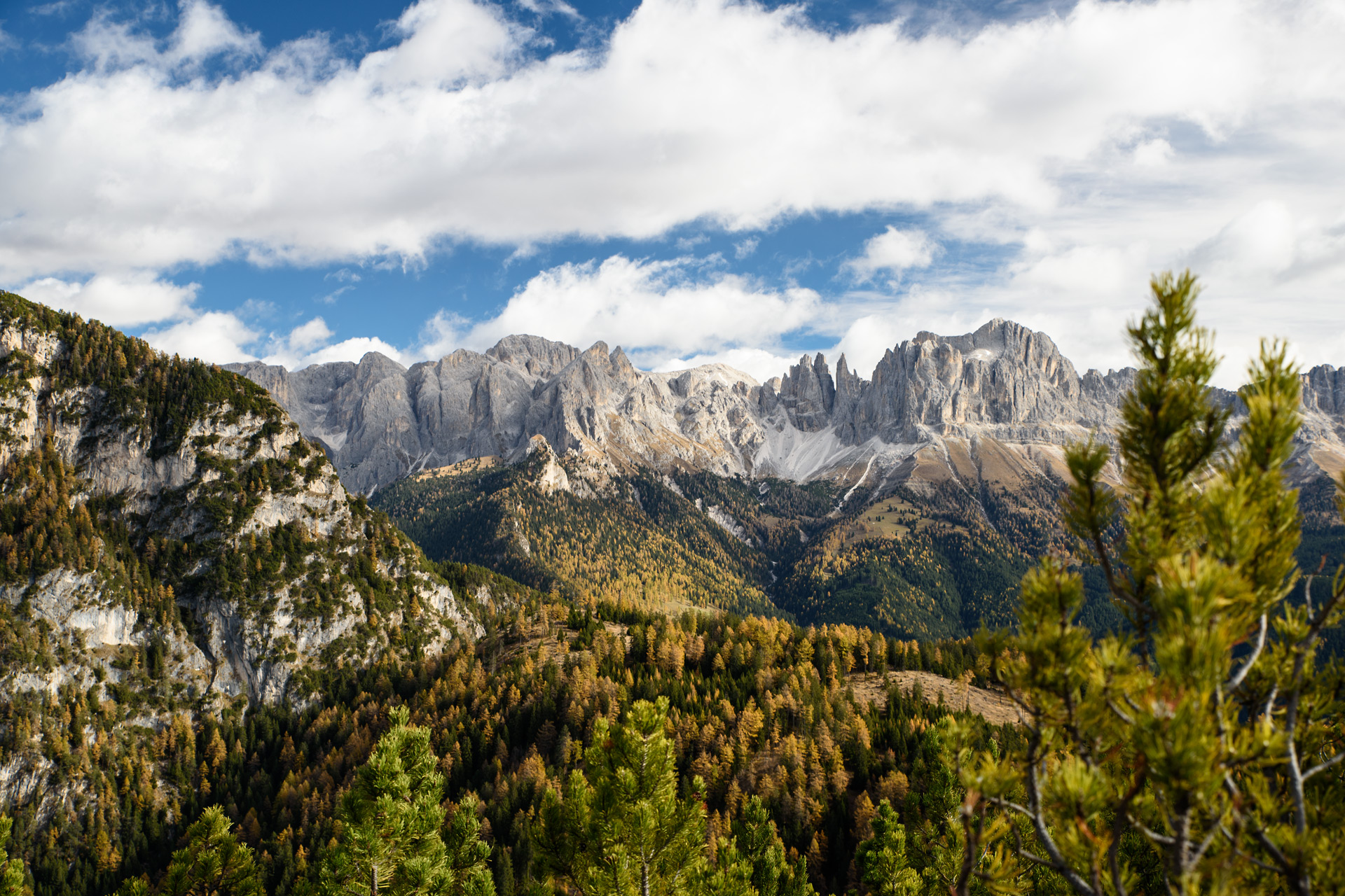 Für heute haben wir uns eine Panorama Tour ausgesucht. Also schnell hoch auf den Berg, Aussicht genießen und lecker einkehren. Von Weißlahnbad aus führt der Weg zunächst über einen Fahrweg ziemlich steil bergauf. Hier kommen auch nur Allradfahrzeuge hoch. Später biegen wir auf einen schönen Wanderweg abseits der Straße. Noch hängen die Wolken tief und es ist etwas diesig. Aber der Wetterbericht hat für mittags Sonne versprochen. Nach eineinhalb Stunden erreichen wir die Tschafon Hütte. Mitten auf einer hügeligen Wiese gelegen, mit traumhaftem Blick auf das Rosengarten Massiv. Aber das war noch nicht ganz unser Ziel. Nach etwa 20 Minuten . . .