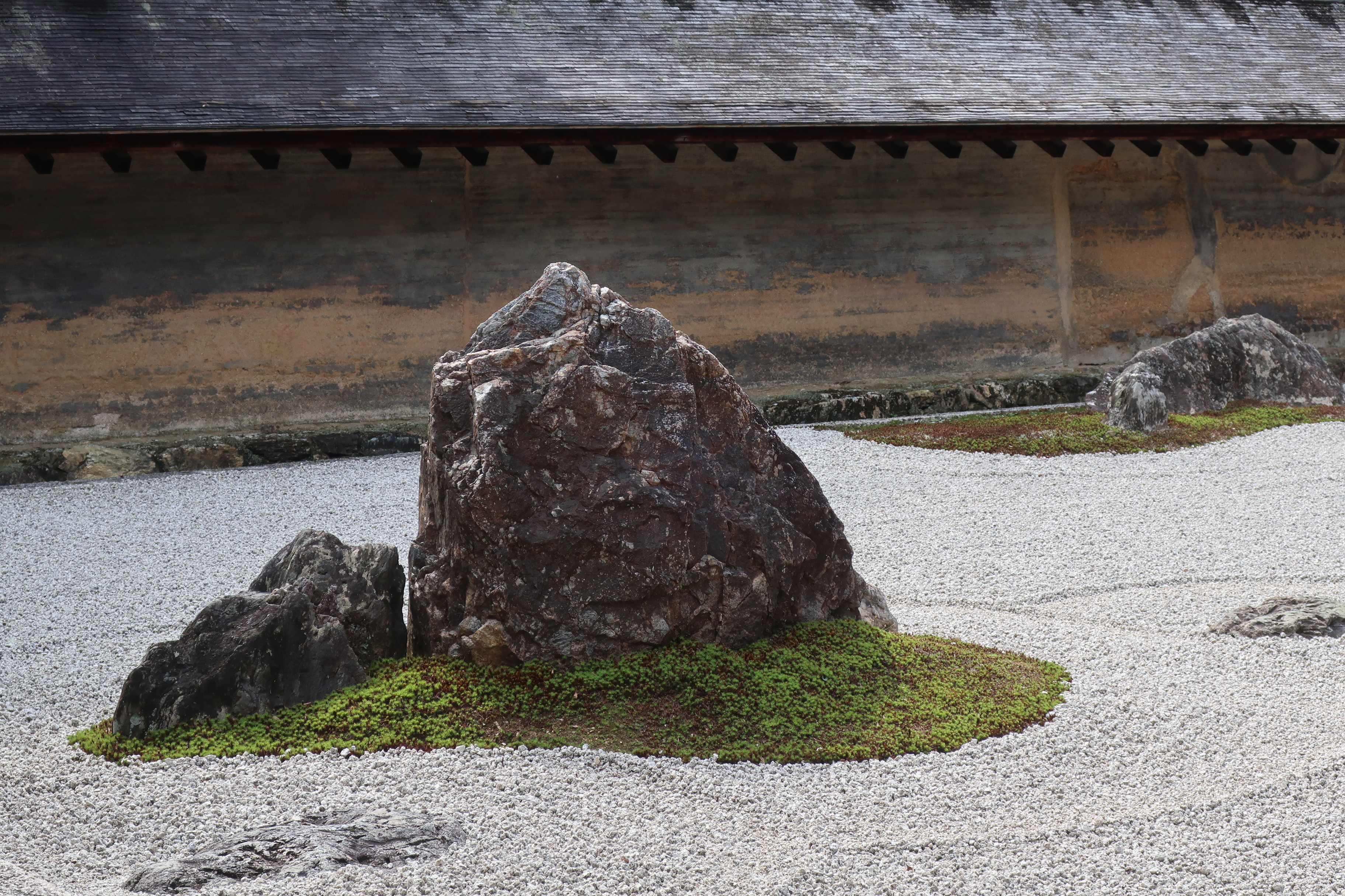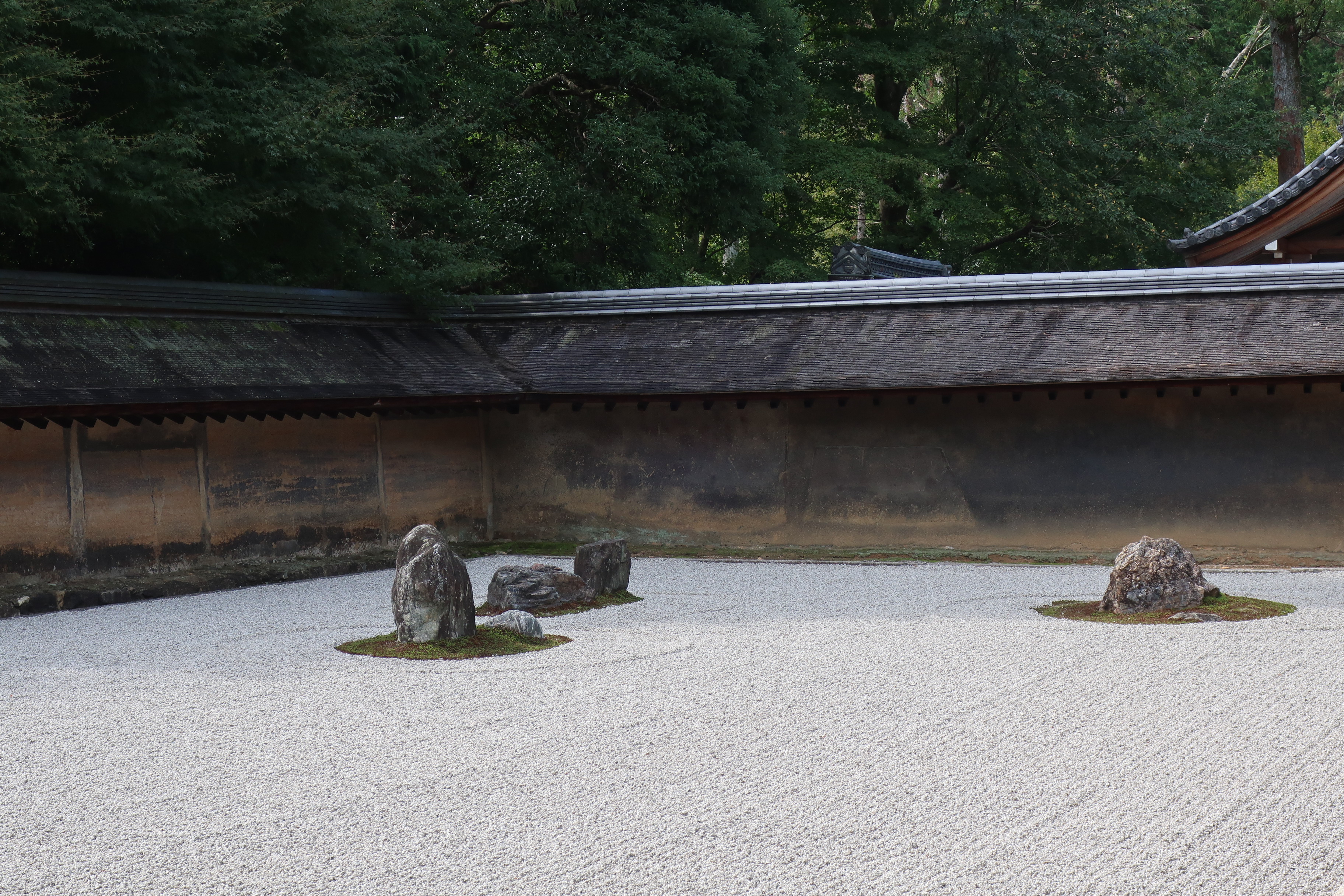 Der Tempel Ryoan-ji (Buslinie 12 oder 59) ist bekannt für seinen Zen-Steingarten. 15 Steine in einem Kiesbett. Das Kies schön in geraden Linien gerecht. Wir sitzen auf den Stufen am Rand des Steingartens und lassen ihn auf uns wirken. Und versuchen alle 15 Steine auf einen Blick zu sehen. Rund um den Tempel ist ein schöner Garten mit See.