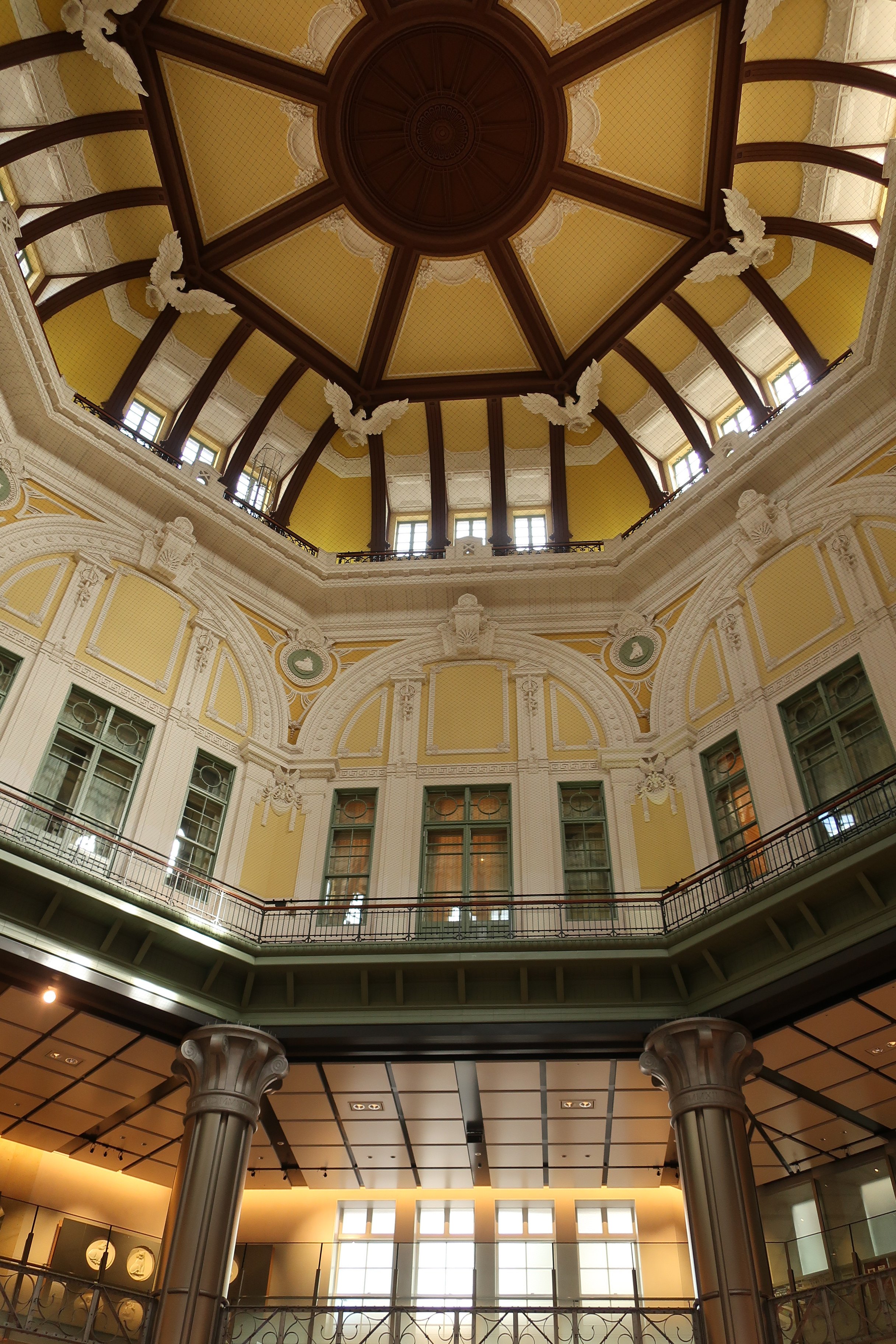 Aber vom Park aus sieht man schon die ersten Hochhäuser des Bankenviertels rund um den Bahnhof. Das Bahnhofsgebäude selbst ist zwar neu renoviert, aber ein traditionelles Gebäude. Die roten Backsteine geben dem Bahnhof ein gemütliches Flair. Um den Bahnhof herum stehen moderne Bürogebäude, ein schöner Kontrast.