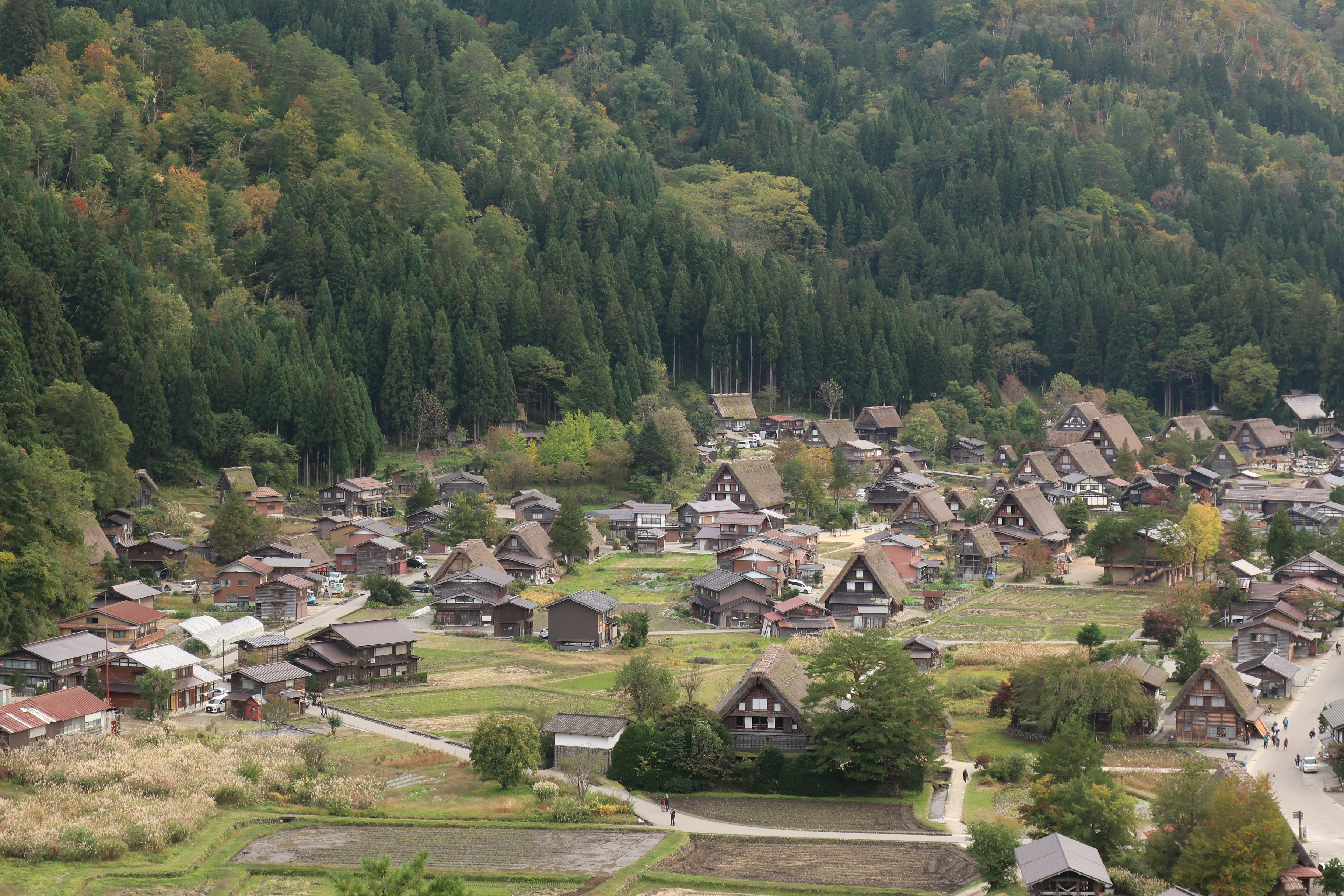 Unser nächster Stopp ist Shirakawago. Die Dörfer Ogimatchi und Ainokura gehören zum UNESCO Welterbe. Die Dächer sind steil, dick eingedeckt mit Stroh. Um die großen Schneelasten im Winter tragen zu können. Die Häuser sind in einem schönen Tal gelegen und sind im Gassho-style gebaut – der etwas variiert je nach Region, je nach Schneehöhe.