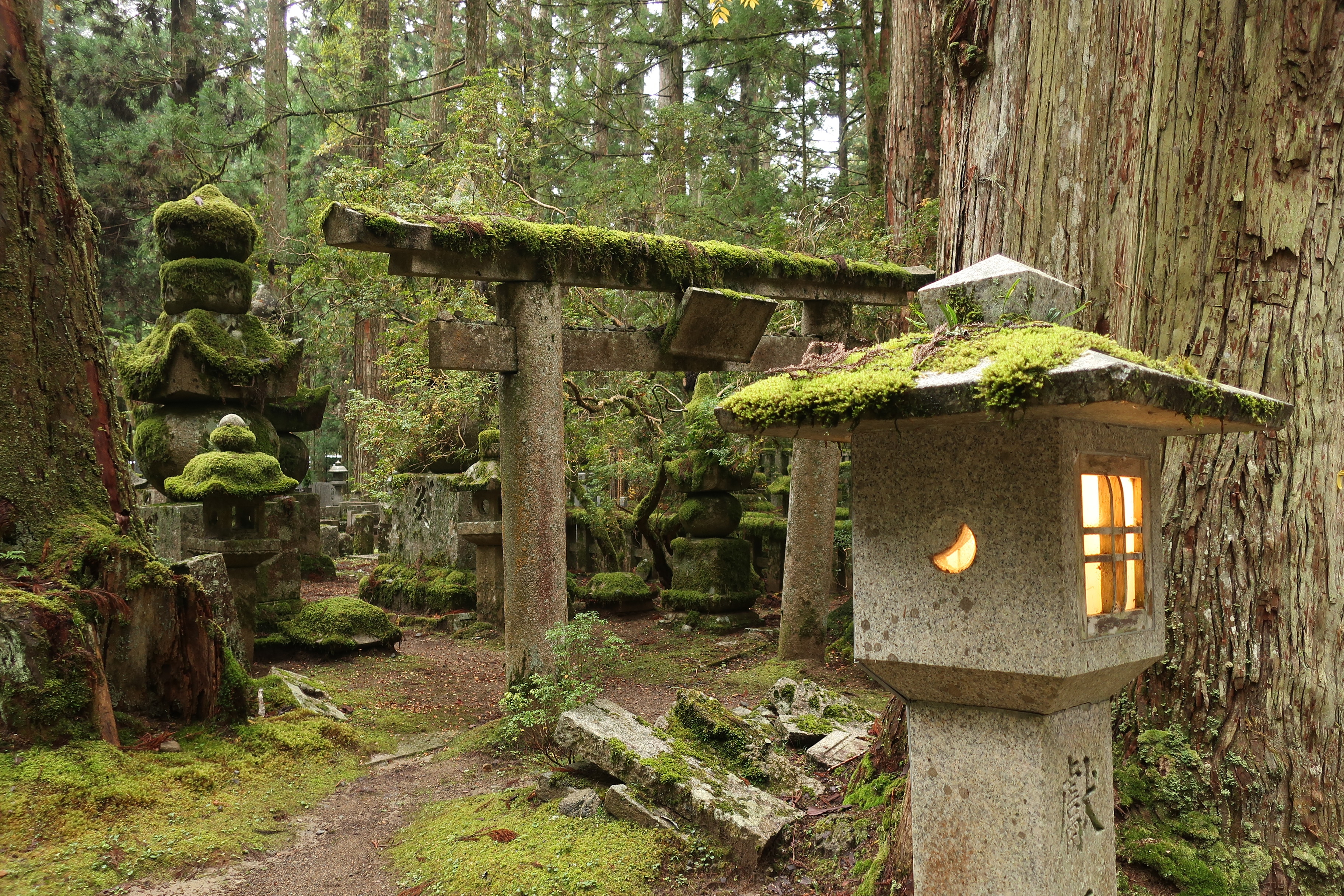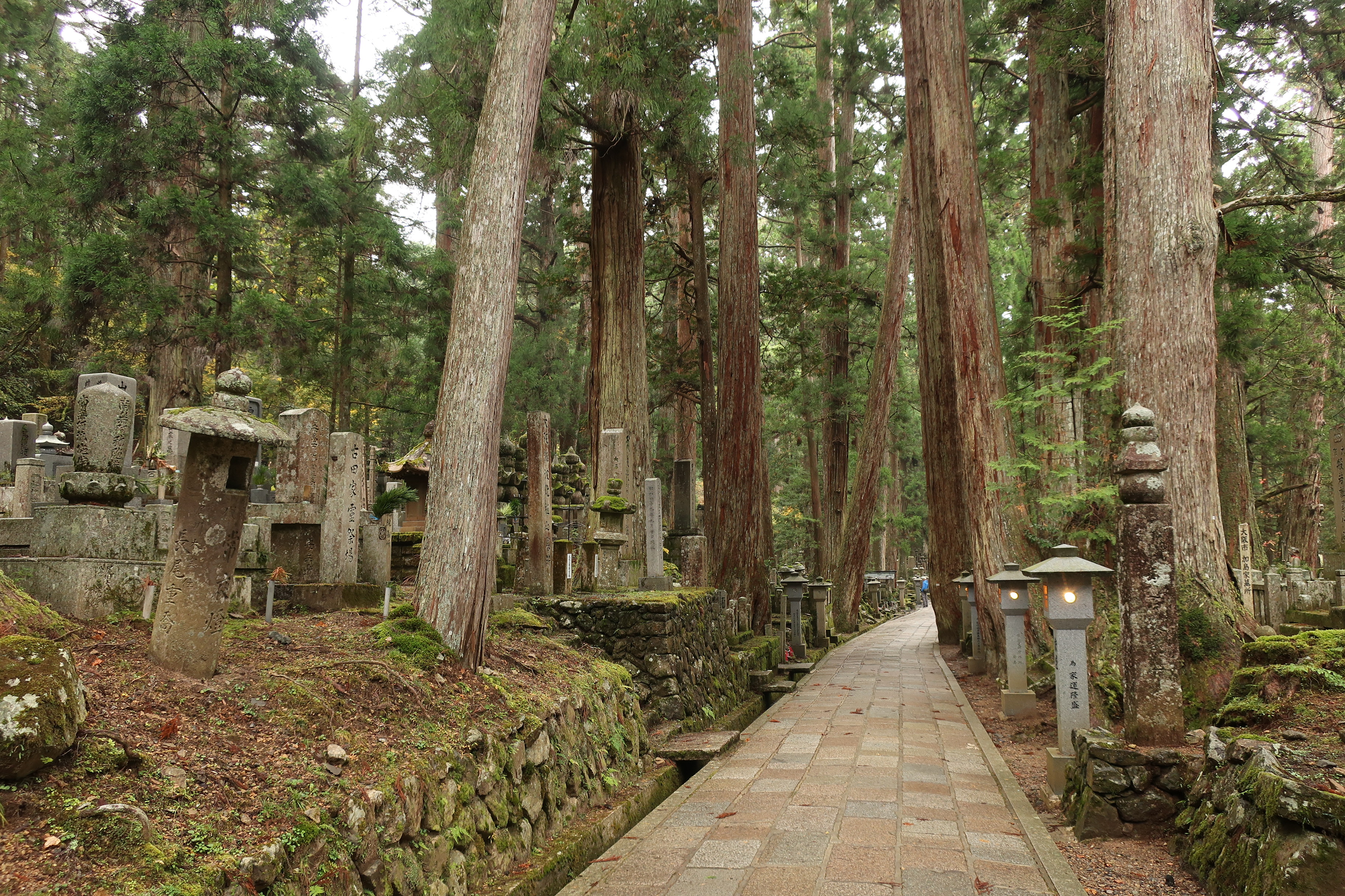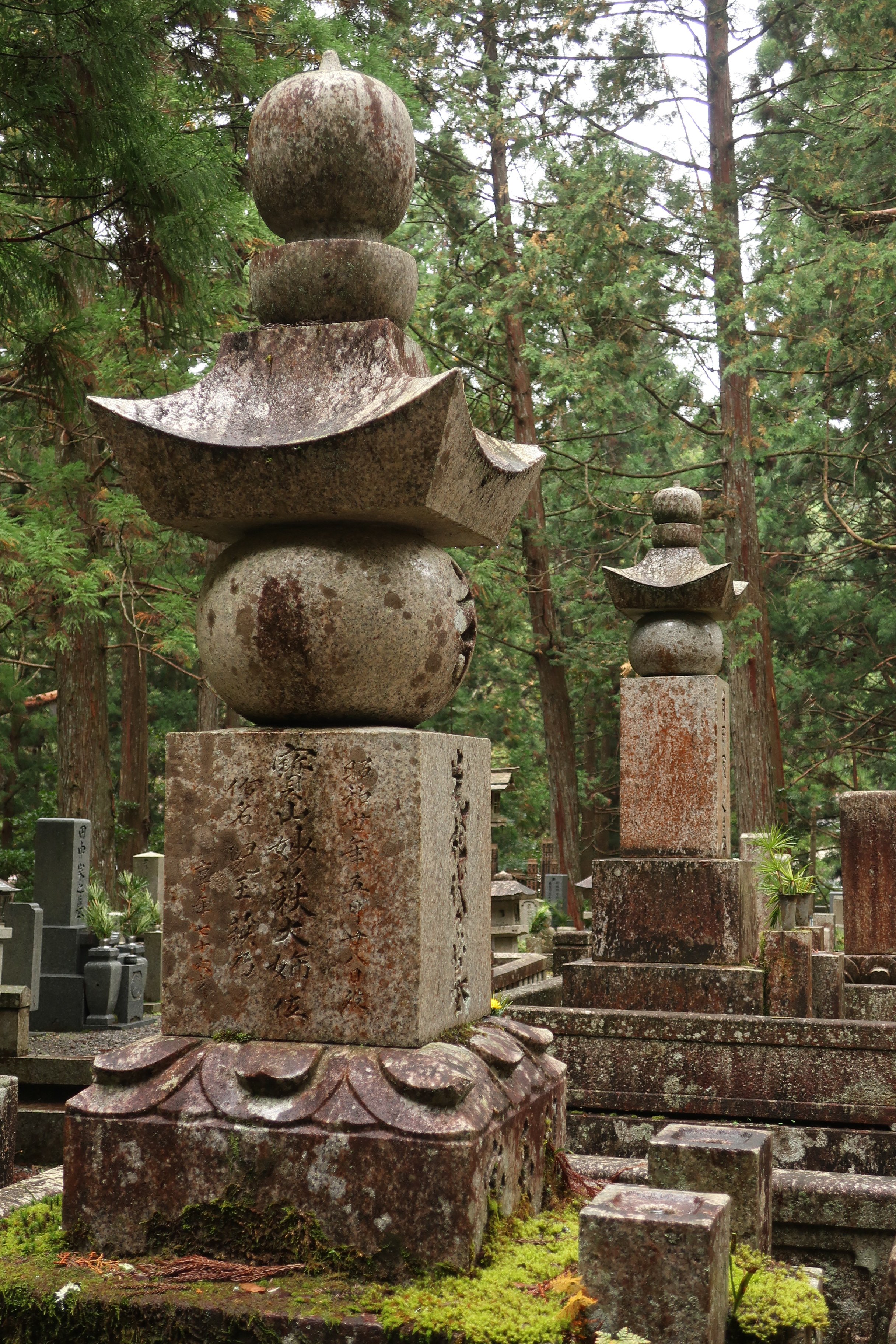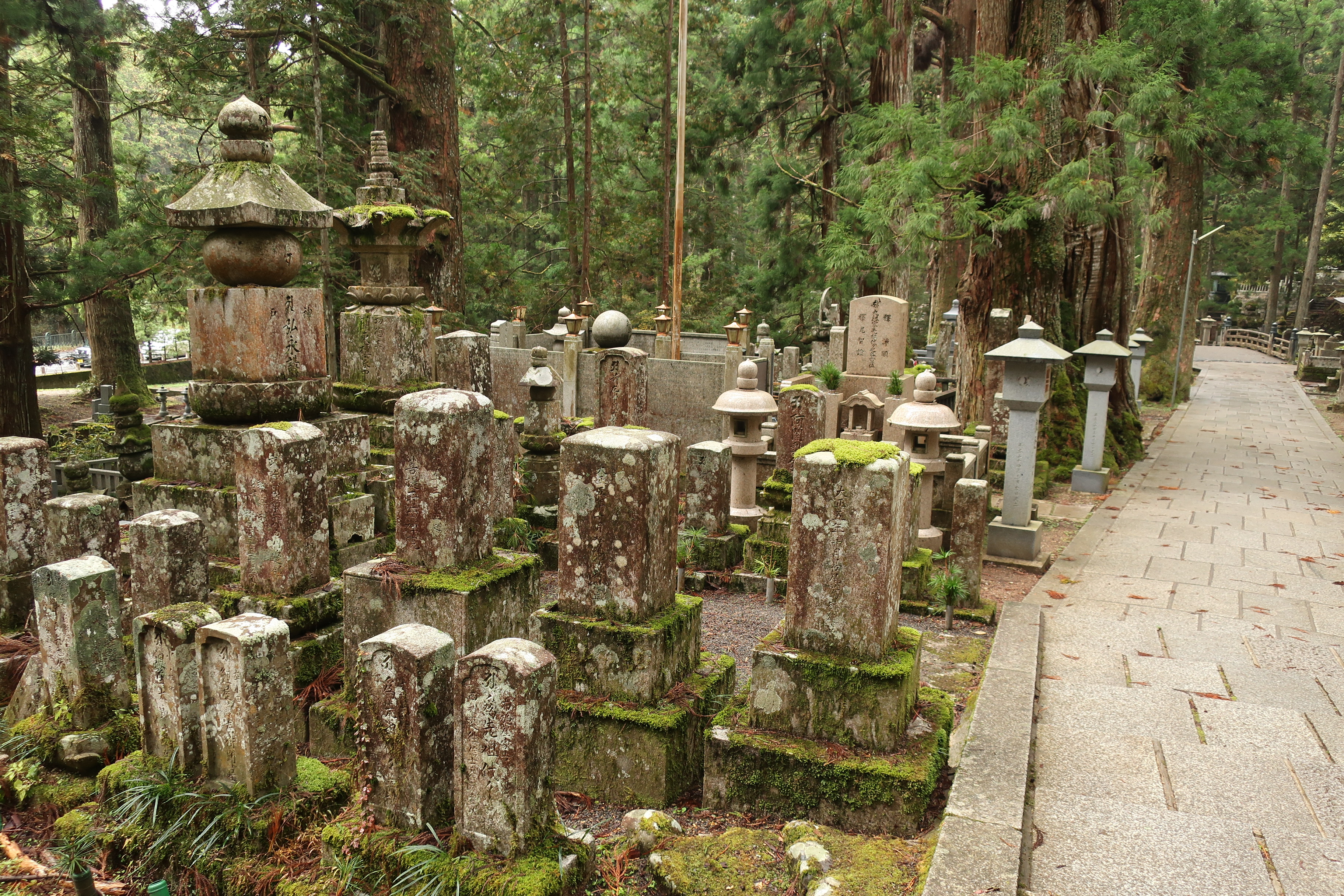 In der Nacht hat es geregnet. Der Himmel ist noch dicht mit Wolken verhangen. Genau die richtige Stimmung, um den Okonuin Friedhof nochmal zu besuchen. Jedes Grab sieht anders aus. Viele schon sehr alt. Mit Moos überwachsen. Der Friedhof ist buddhistisch, aber jeder der möchte kann hier ein Grab bekommen.