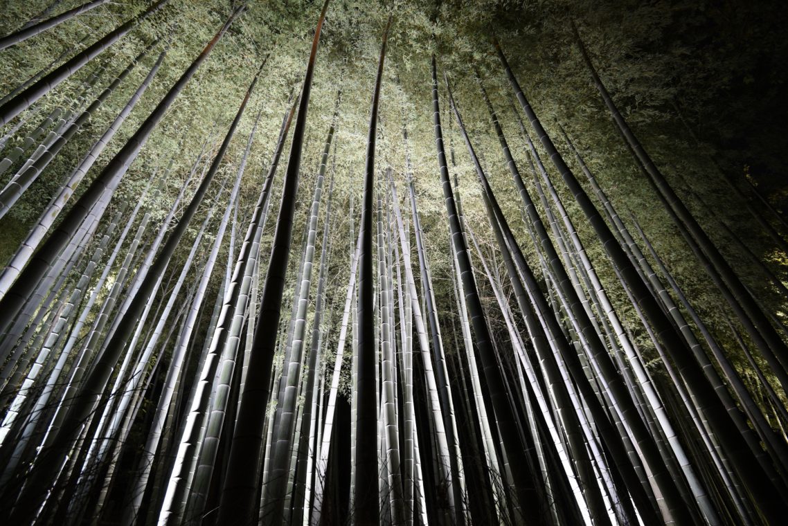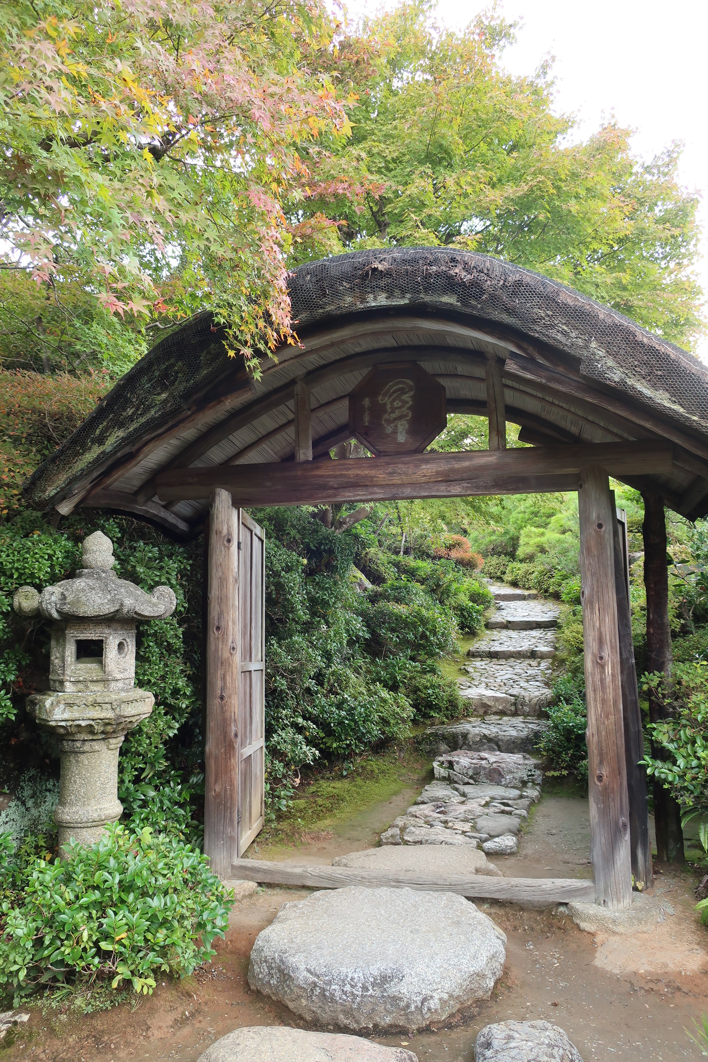 Zuerst laufen wir durch den Bamboo Grove. Der Teil des Parks ist übervoll mit Selfie Freunden in traditioneller japanischer Kleidung. Auch bei Reisegruppen ist der Bamboo Grove beliebt. Am Ende des Wegs – wir wollten schon umdrehen – entdecken wir ein kleines Schild, dass auf einen privaten Garten hinweist: Okochi sanso.
