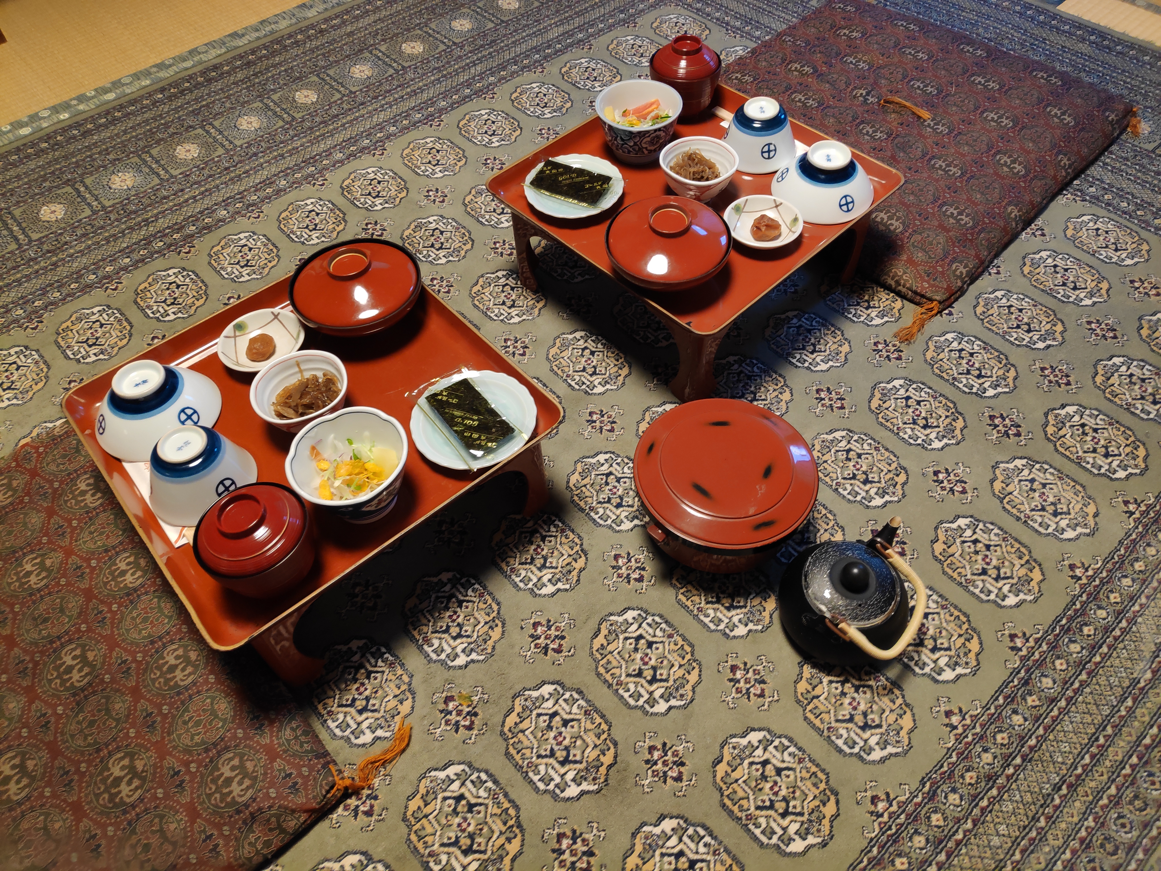 Wir haben wunderbar geschlafen. Der mit Tatami-Matten ausgelegte Boden ist sehr angenehm und die Futons waren weicher als viele Hotelbetten zuvor. Fast schade, das wir heute schon weiter reisen.