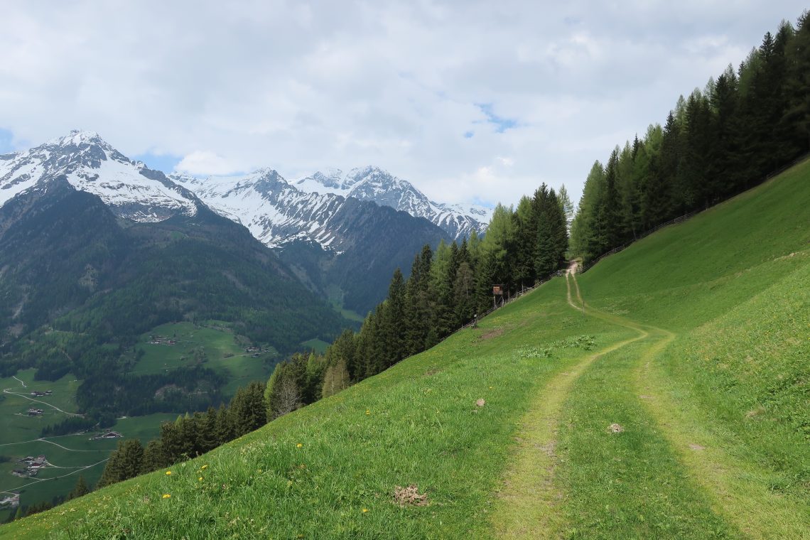 Zum Abschluss unseres Ausflugs ins Ahrntal wandern wir noch eine kleine Route im Nachbartal, dem Gsiersertal. Auf einem Fahrweg geht es gemütlich zur Hütte Taistner Vorderalm (die allerdings noch nicht geöffnet hat), aber im Sommer sicher toll ist. Die Aussicht auf die umliegenden Berge lohnt den Weg. Ein schöner Ausklang.