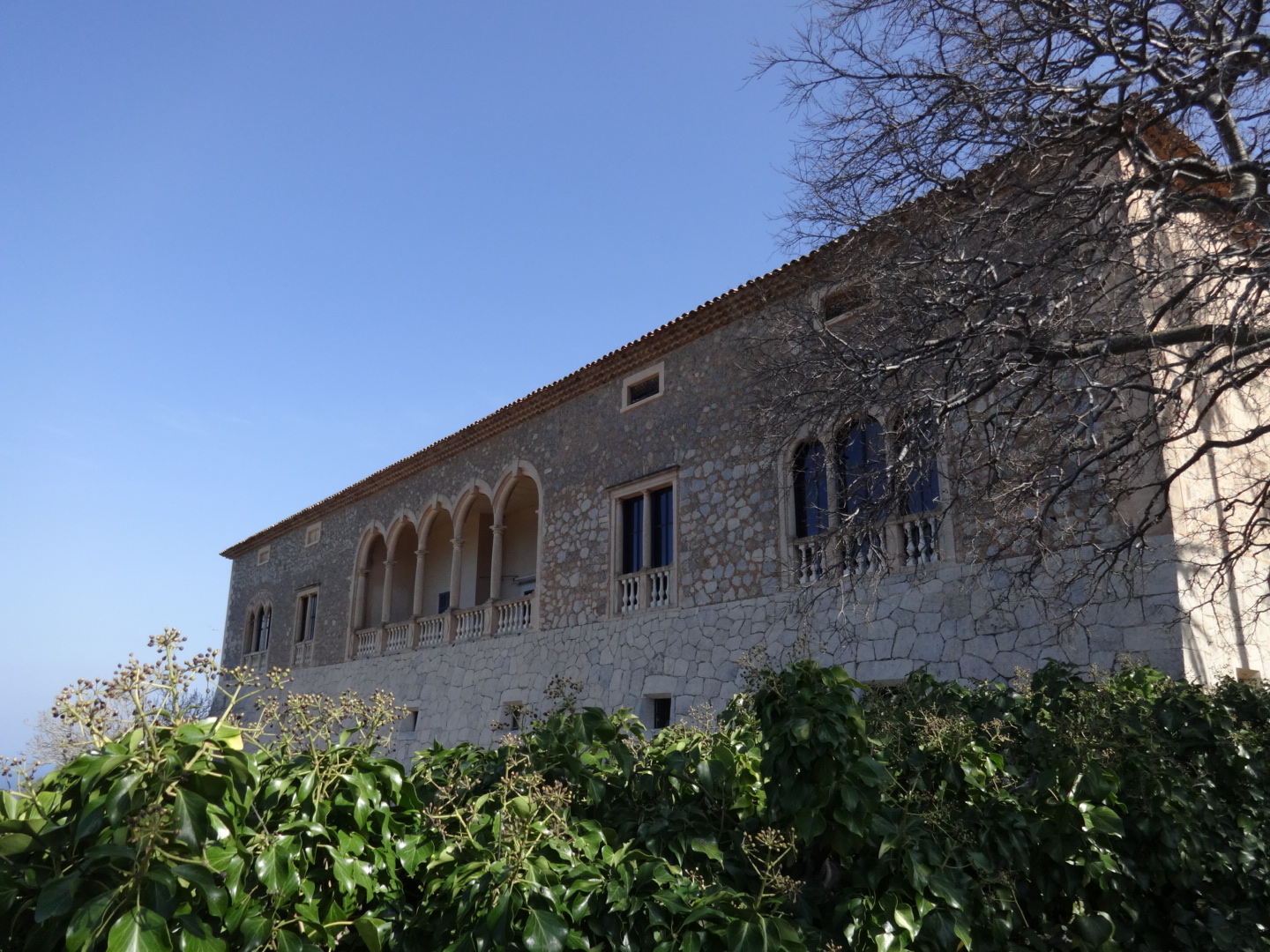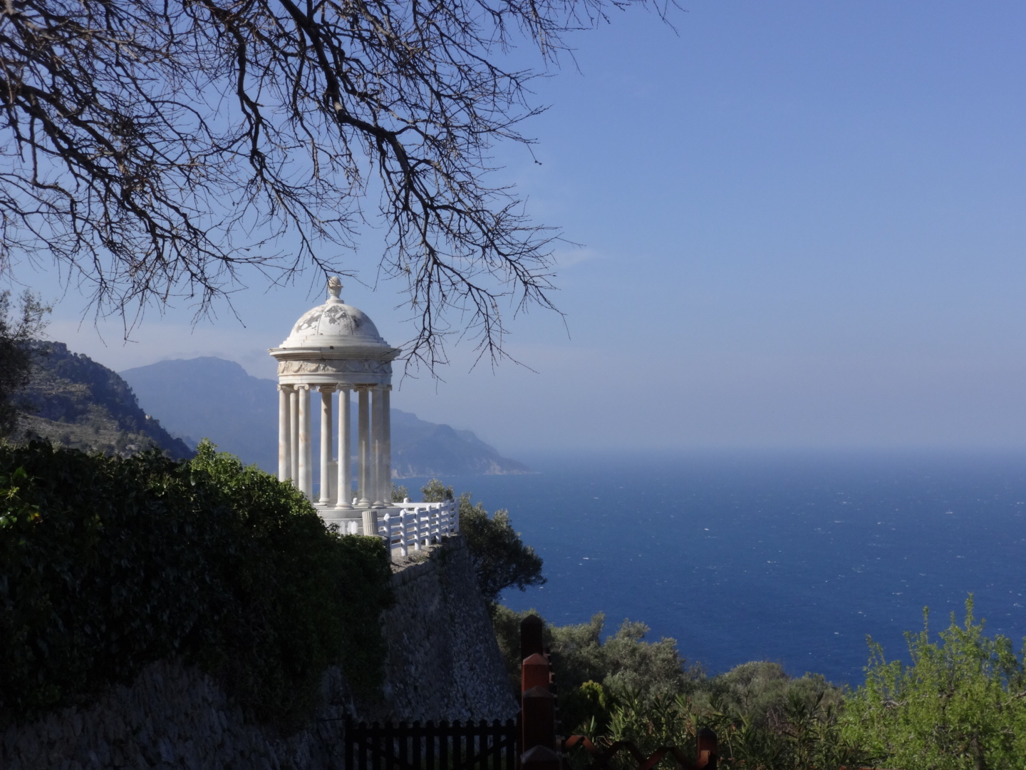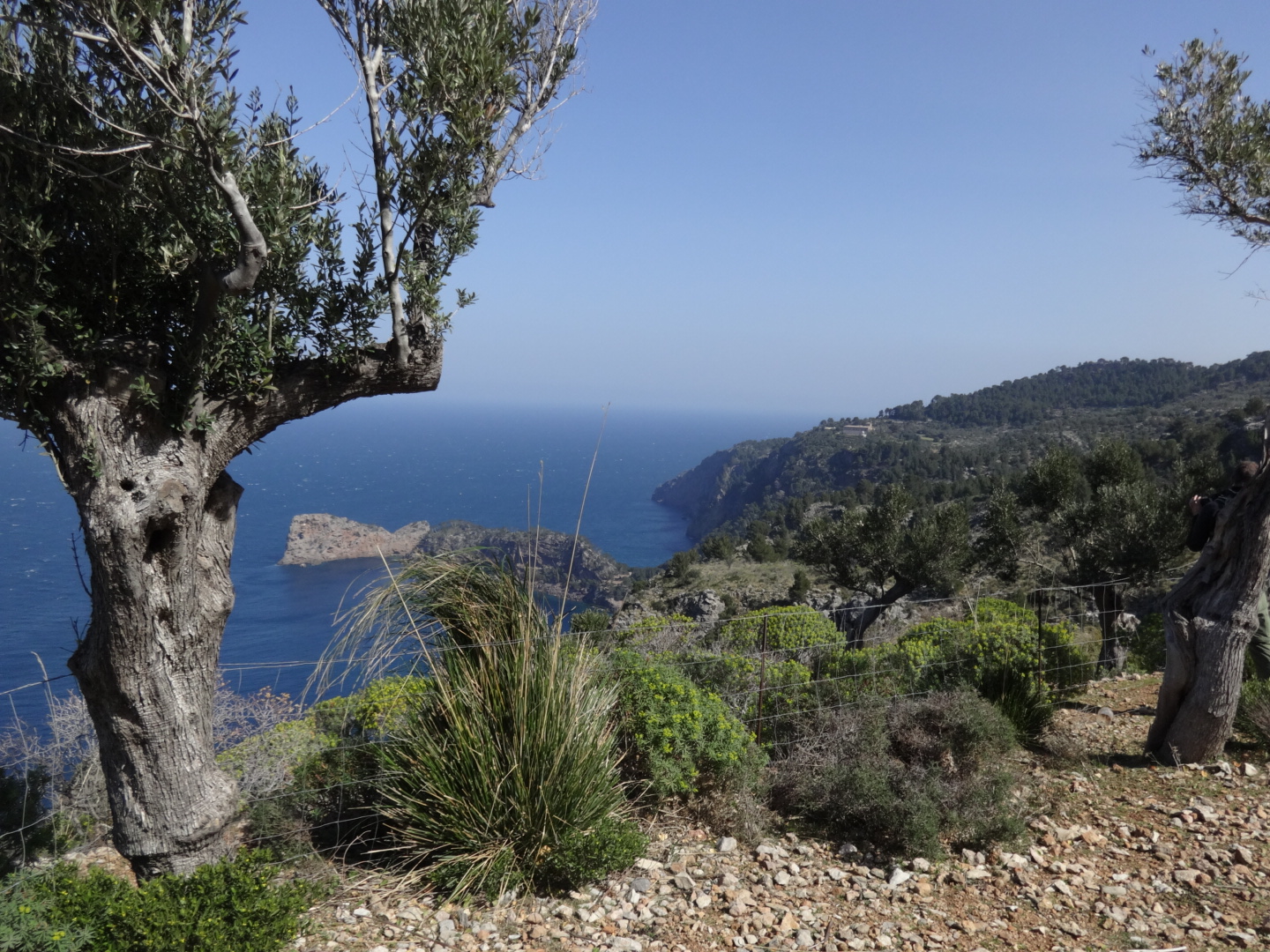 Sonne. Der gestrige Regentag scheint eine Ausnahme gewesen zu sein. Wir fahren westlich von Soller die Küste entlang. Vorbei an Deia, einem kleinen Künstlerdorf, geht es weiter nach Son Maroig. Der Landsitz bietet ein Museum und eine Austellung im Haus. Aber vielmehr der Garten lockt die Besucher. Einige Minuten weiter halten wir noch am Monestair del Miramar. Von dem großen Olivengarten sieht man schön die felsige Küstenlinie entlang.
