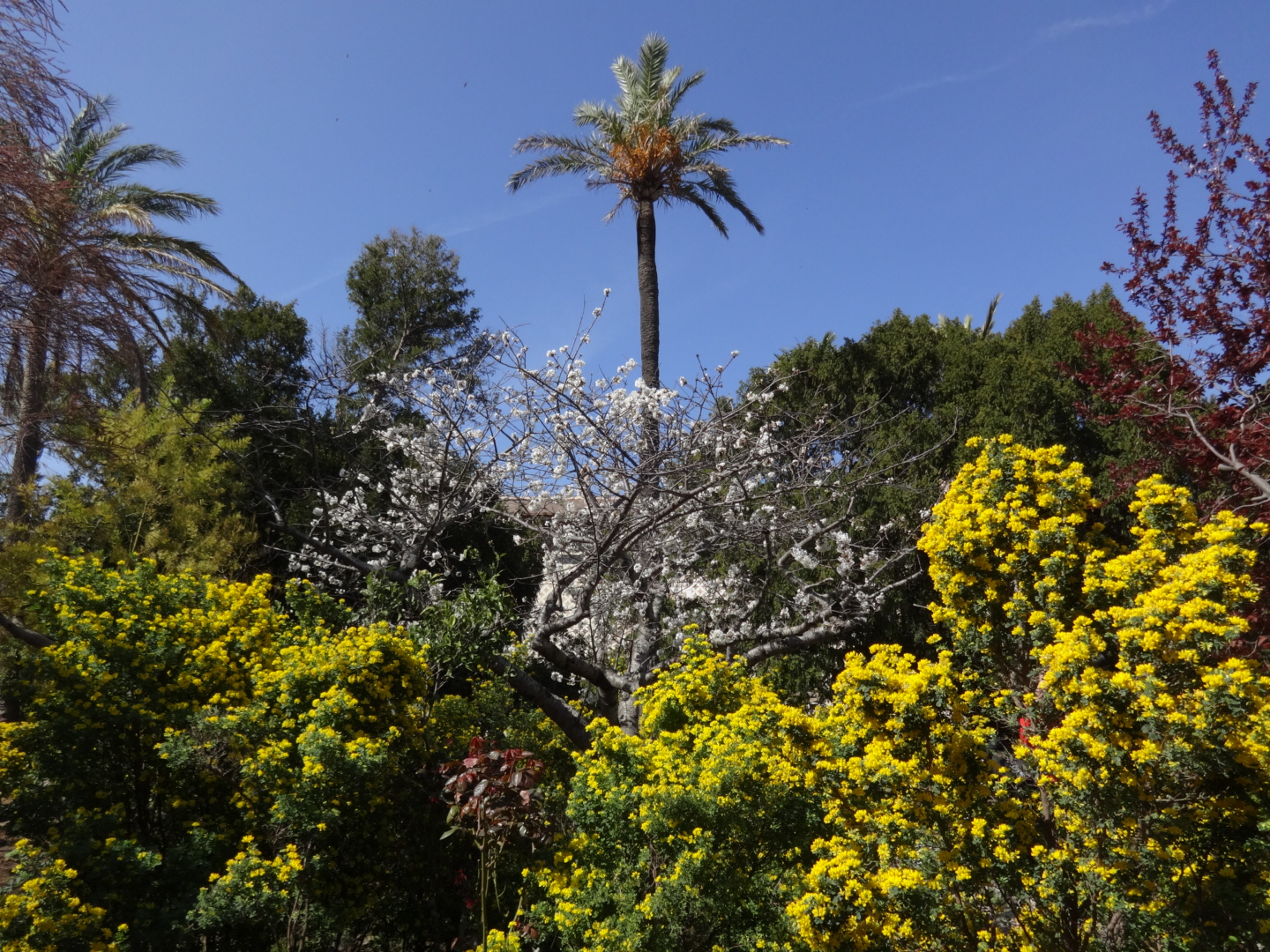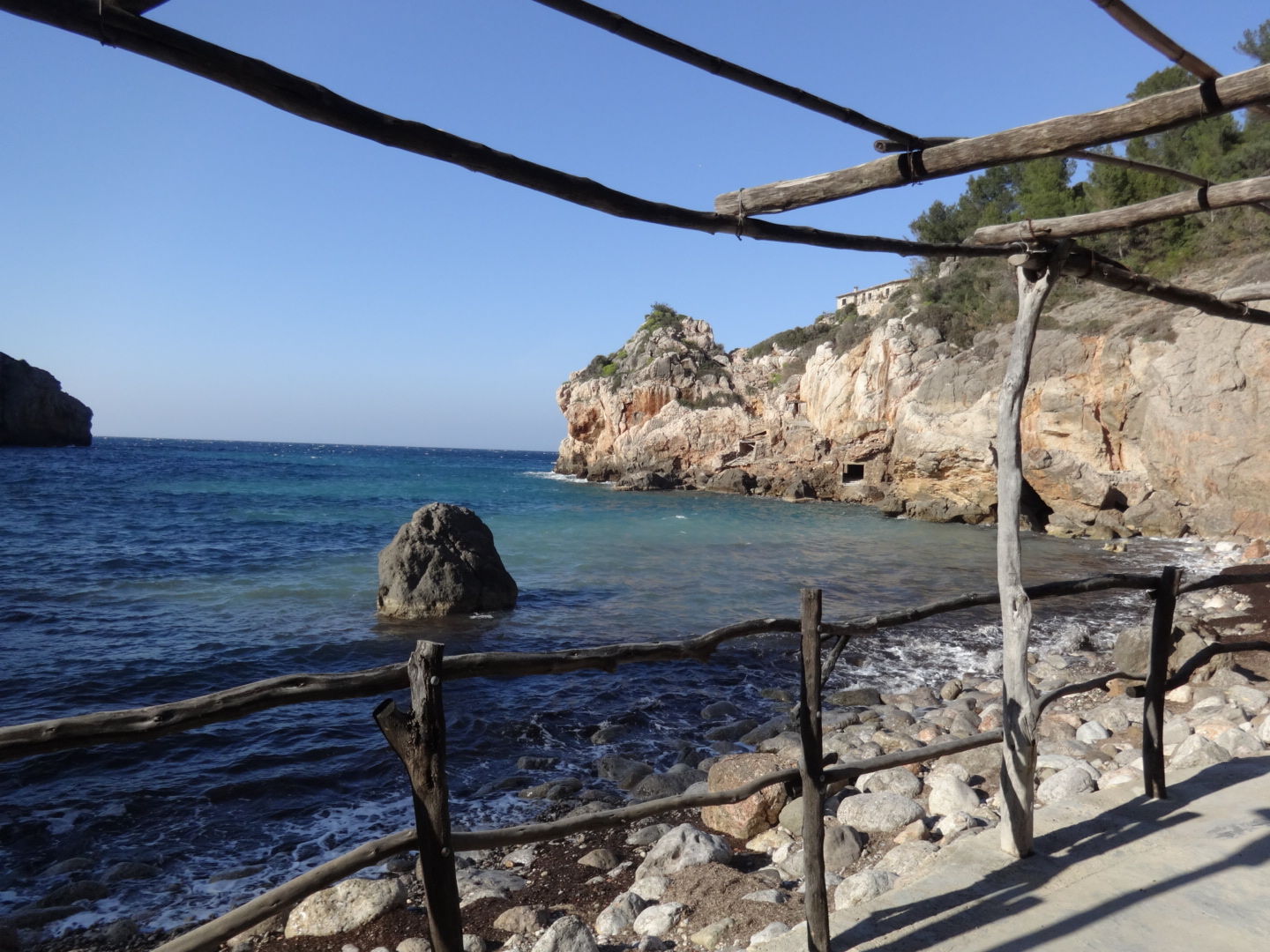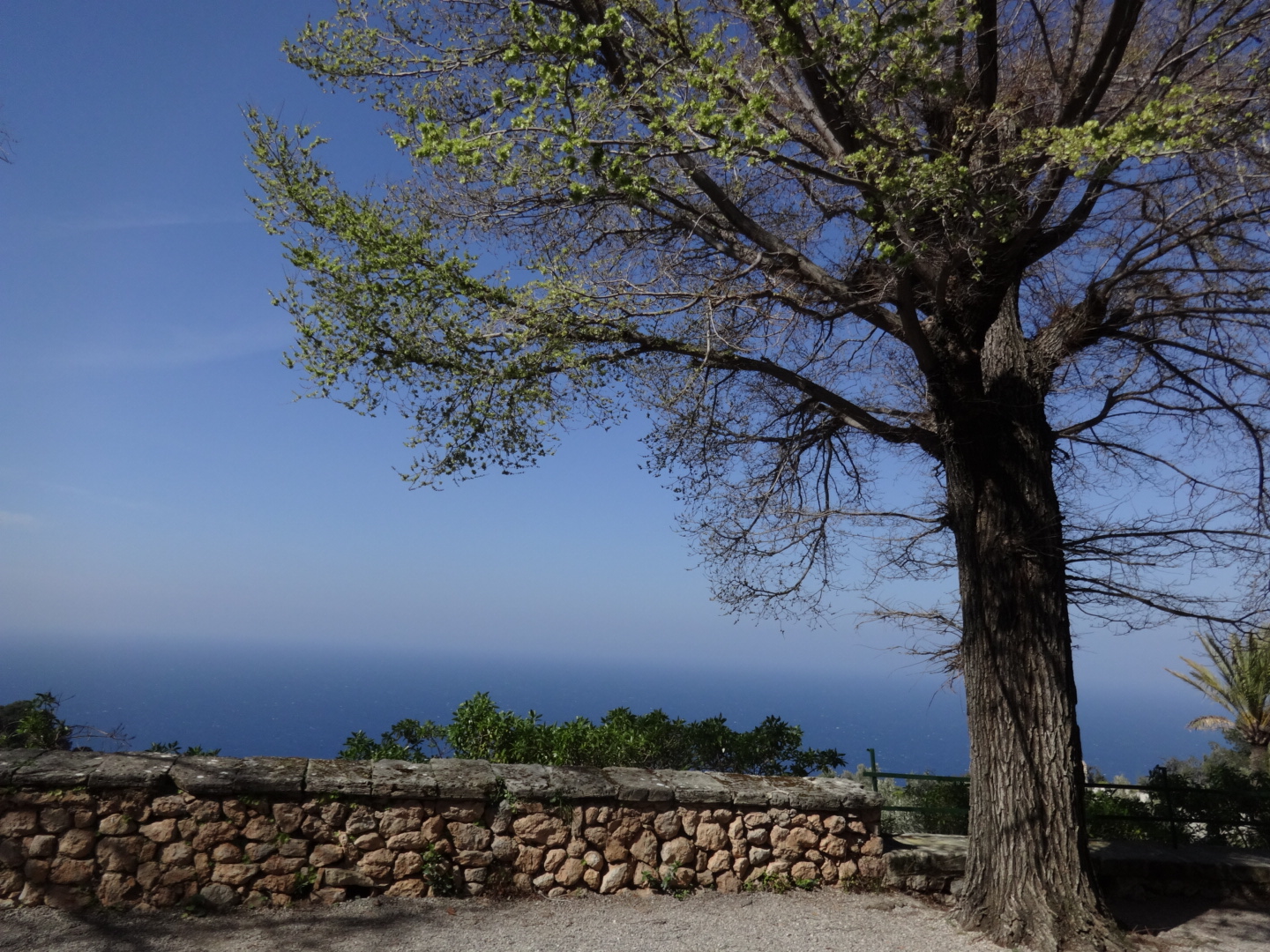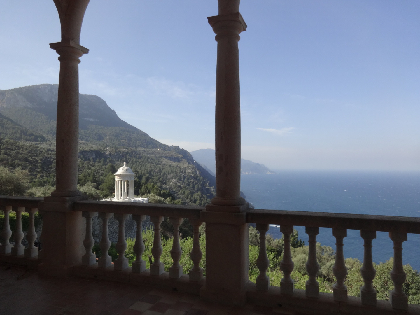 Sonne. Der gestrige Regentag scheint eine Ausnahme gewesen zu sein. Wir fahren westlich von Soller die Küste entlang. Vorbei an Deia, einem kleinen Künstlerdorf, geht es weiter nach Son Maroig. Der Landsitz bietet ein Museum und eine Austellung im Haus. Aber vielmehr der Garten lockt die Besucher. Einige Minuten weiter halten wir noch am Monestair del Miramar. Von dem großen Olivengarten sieht man schön die felsige Küstenlinie entlang.