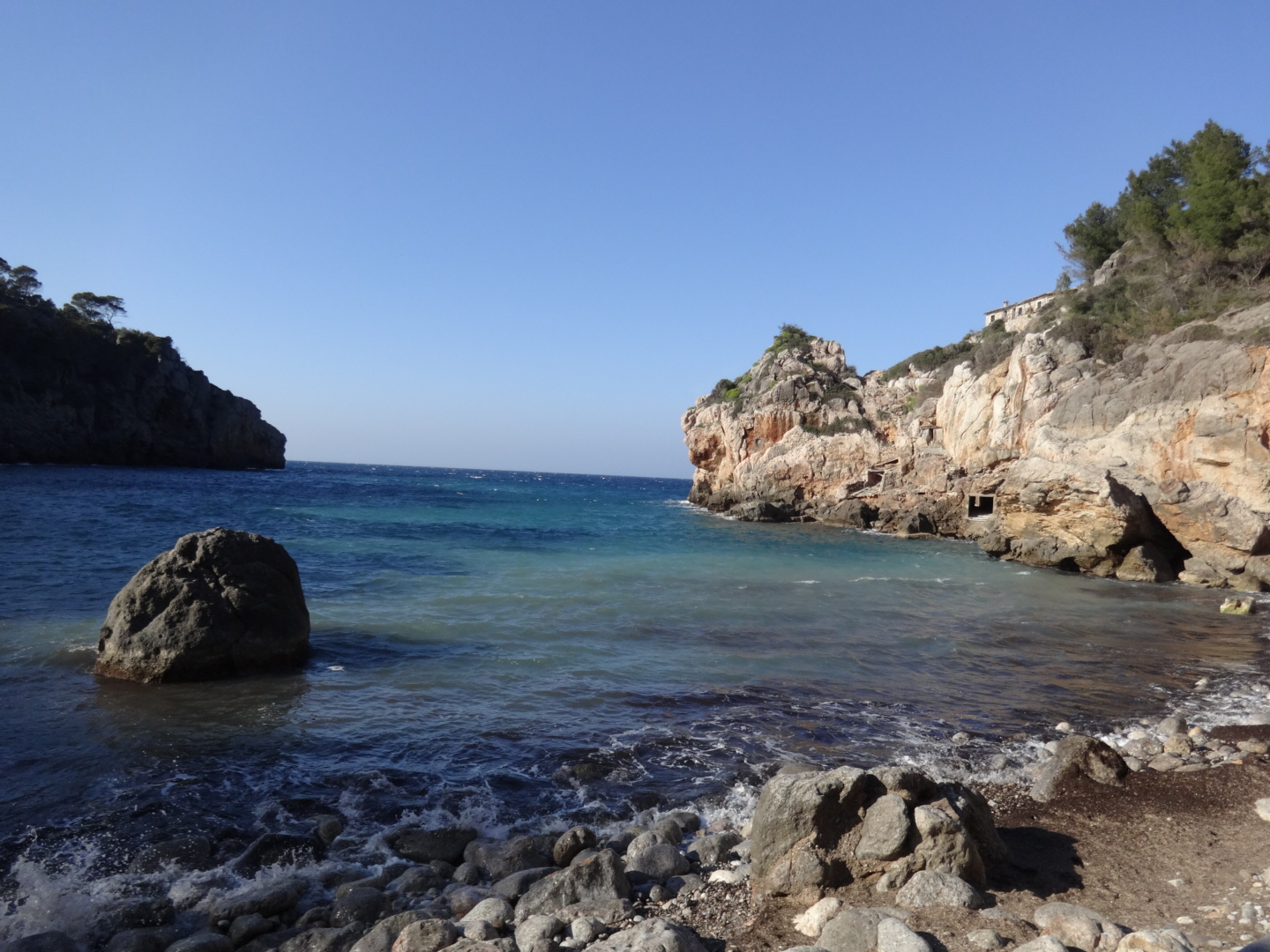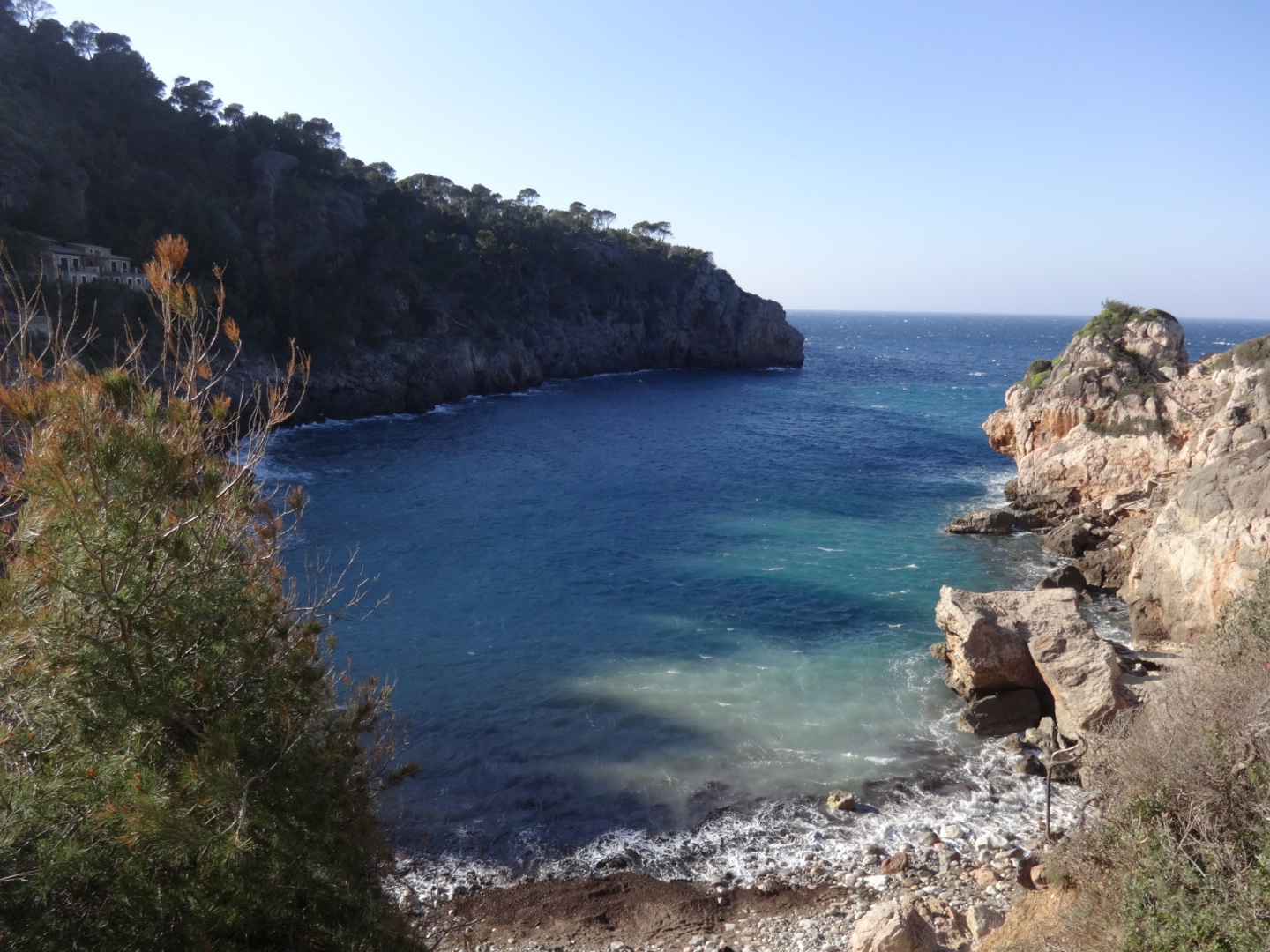 Nach einer Siesta am Hotelpool beginnen wir unseren Nachmittag mit einem Ausflug zur Bucht von Deia. Über eine schmale Straße erreichen wir die kleine Bucht. Das Wasser funkelt in der untergehenden Sonne. Wir genießen die Ruhe und Einsamkeit. Der Größe des Parkplatz nach zu urteilen ist das wohl nicht immer so.