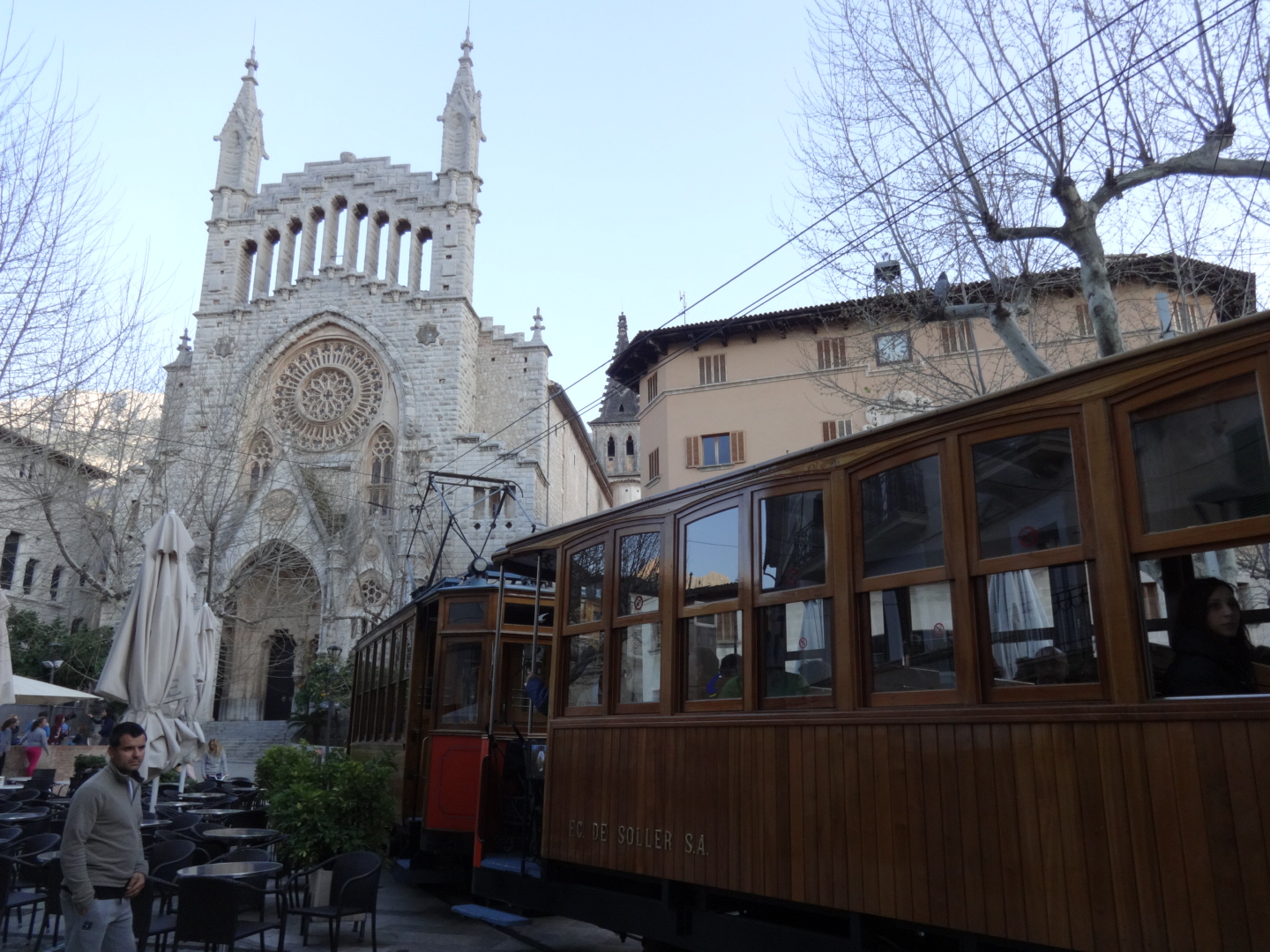 Am Rückweg halten wir zu einem kurzen Abendspaziergang in Soller. Der Marktplatz ist belebt, Kinder spielen, die Cafés sind gut besucht. Menschen unterhalten sich. Man kennt sich. Es geht gemütlich zu. Pünktlich um 18 Uhr fährt noch die Straßenbahn vorbei.