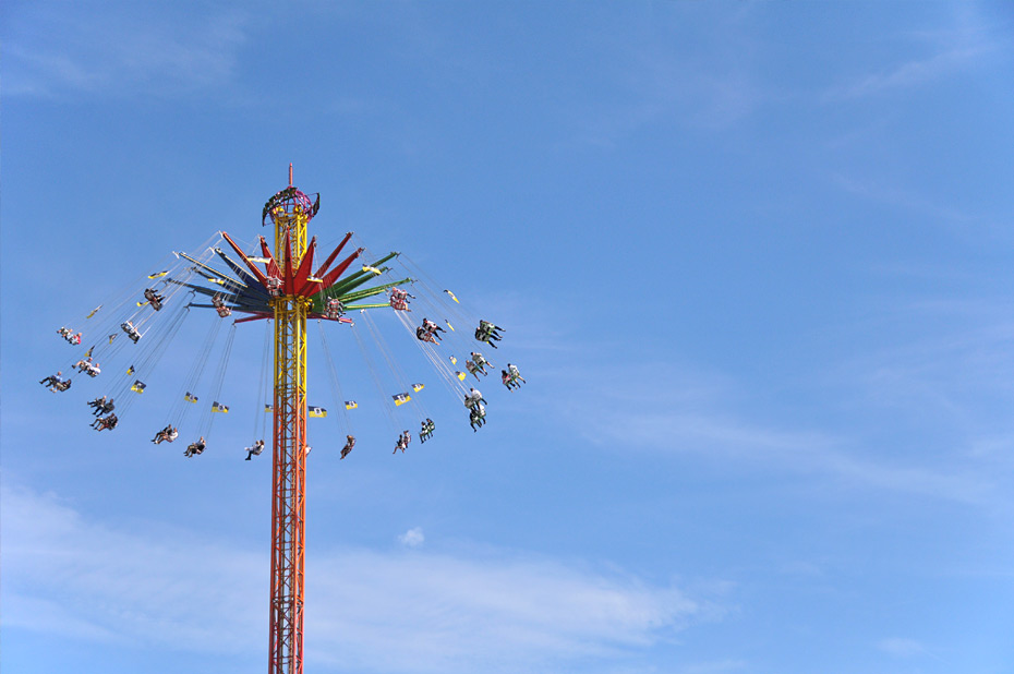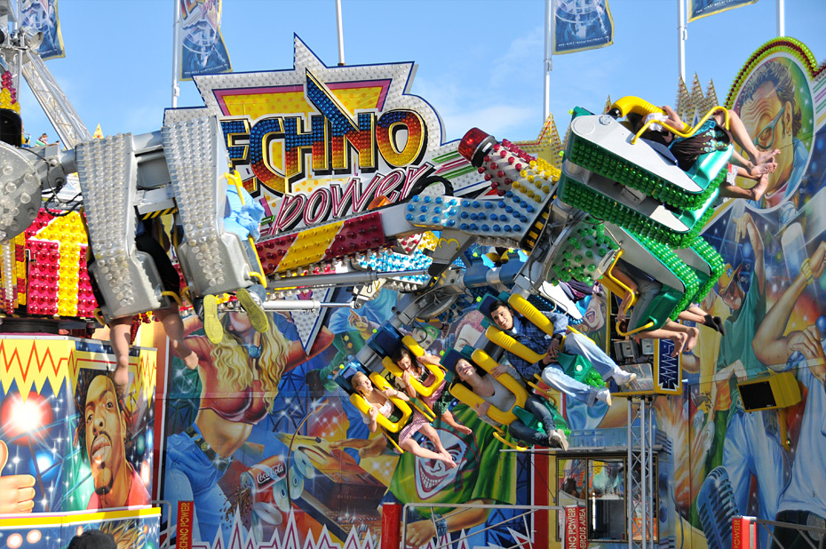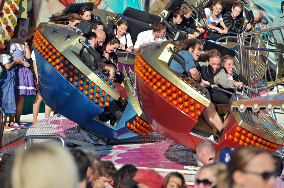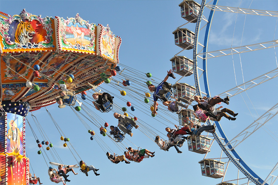 Zum Spaß gehören neben der Party in den Zelten natürlich auch die Kettenkarussells, die Achterbahnen, die Teufelsräder und was es sonst noch so alles an mehr oder weniger abenteuerlichen Fahrgeschäften auszuprobieren gibt.