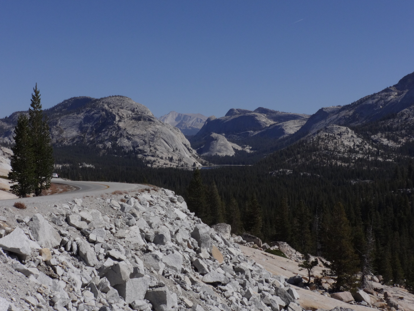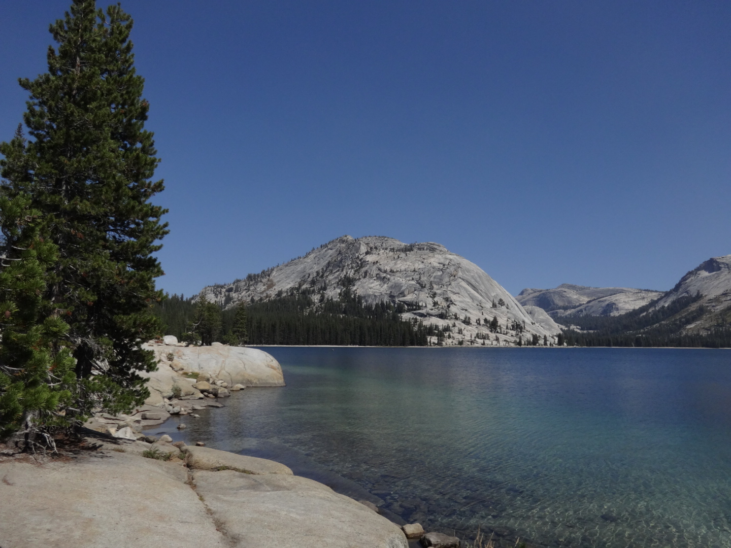 Am Tenaya Lake machen wir länger halt. Der Bergsee schimmert in einem wunderbaren Blau. Eingerahmt von hellgrauen Felsen und grünen Bäumen, ein Bild zum Festhalten. Die Licht- und Landschaftstimmung erinnern ein wenig an Norwegen. Das Wasser ist gar nicht kalt. Einige baden im See. Jedenfalls ein beliebter Picknick- und Grillplatz. Ein Ort zum Verweilen.