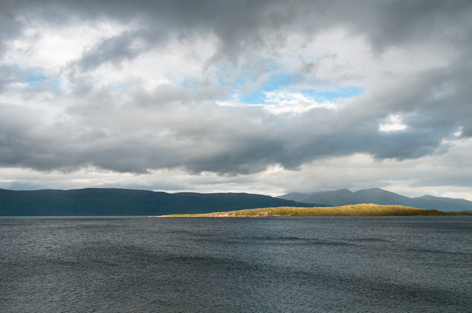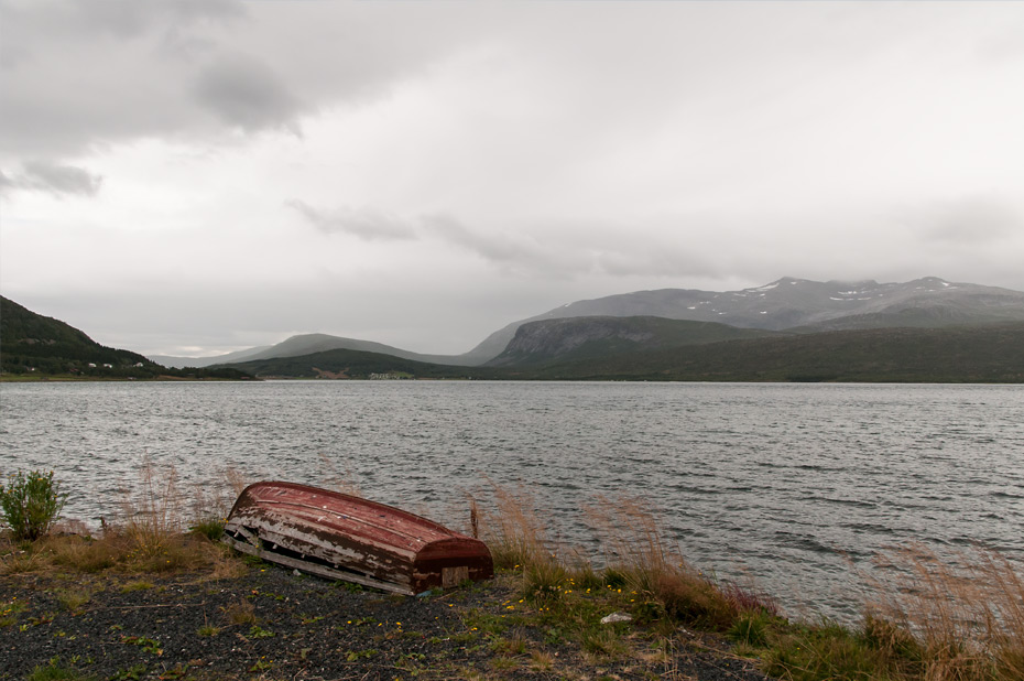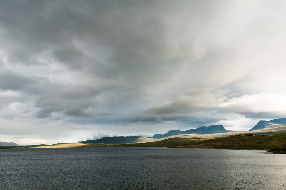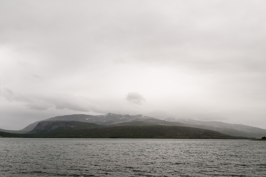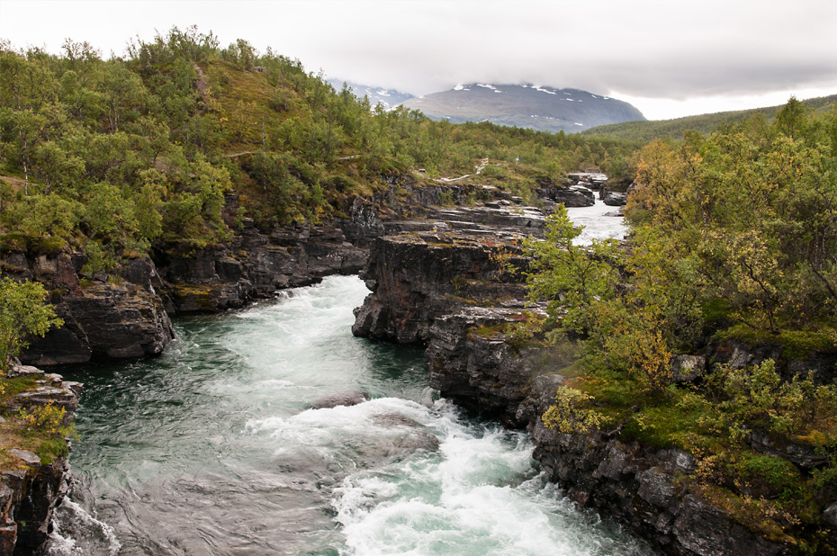Kurz vor Narvik biegen wir von der Küste ins Hochland ab. Hier geht’s über die Grenze nach Schweden. Bei Abisko halten wir nochmal und gehen rund um das Touristenzentrum die Wege entlang. Erst am Fluss, der einer Klamm ähnelt, dann vor zum See, von wo wir das Panorama genießen. Das Wetter ist uns wohlgesonnen. Nach 4 Stunden Autofahrt im Regen lockert es für unseren Spaziergang auf.
